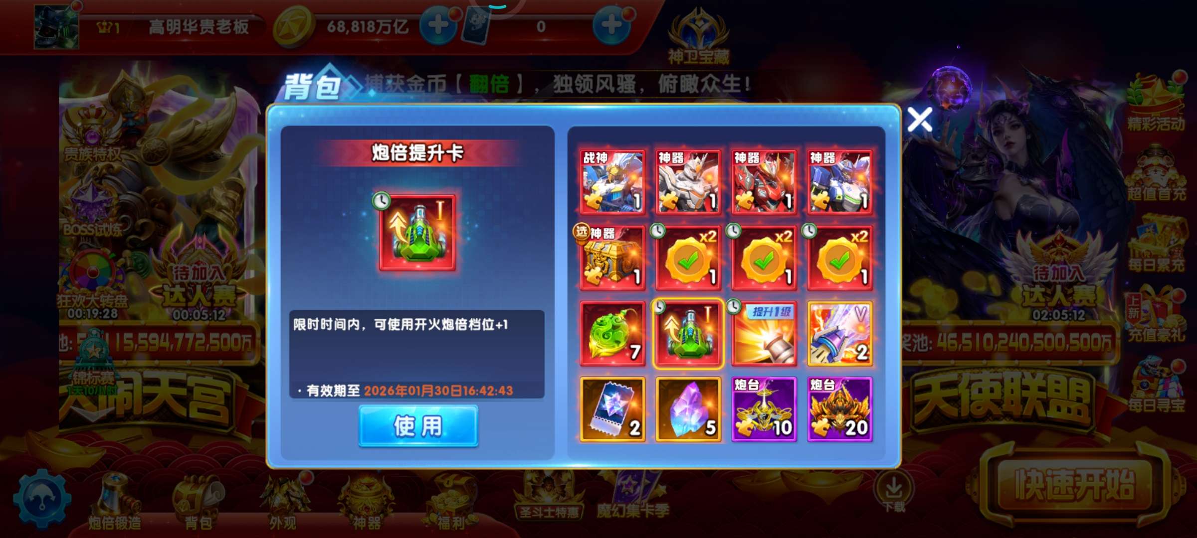 带号出 688万亿 实60炮 虚70炮3天 吕布2天 超能2天 巅峰13级 5级狂2天 狂暴3565