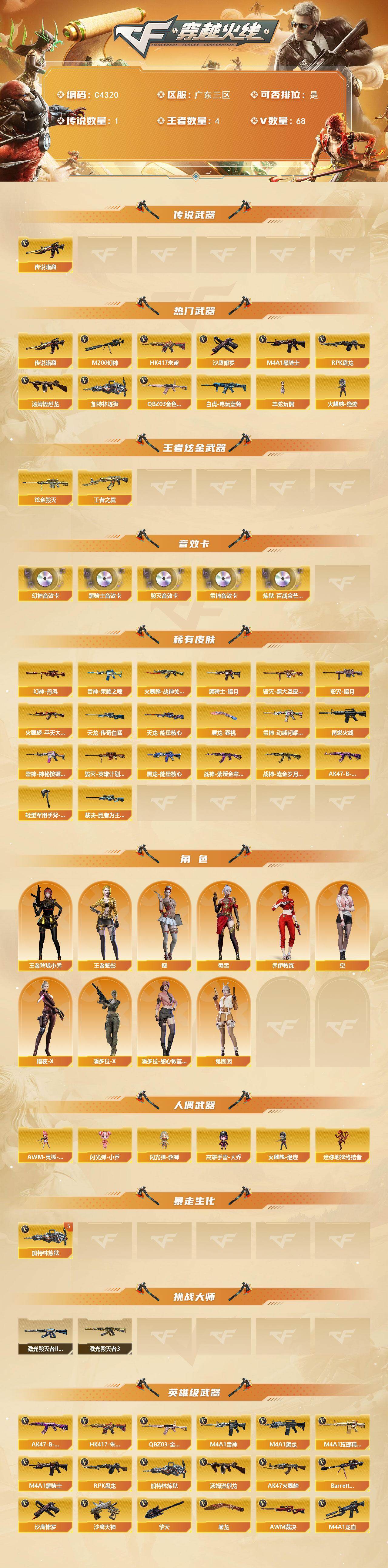 【C4320】广东三区-68V-4王者-1炫金