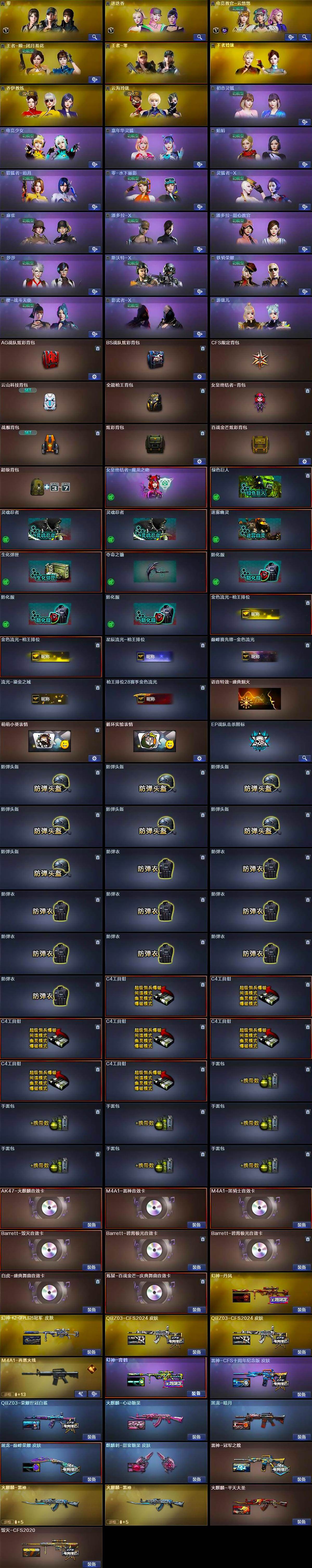 【音效卡】:AK47-火麒麟音效卡,M4A1-雷神音效卡,M4A1-黑骑士音效卡,Barrett-毁灭音效卡,Barrett-碧霄极光音效卡*2,白虎-盛典舞曲音效卡,炼狱-百战金芒-庆典舞曲音效卡