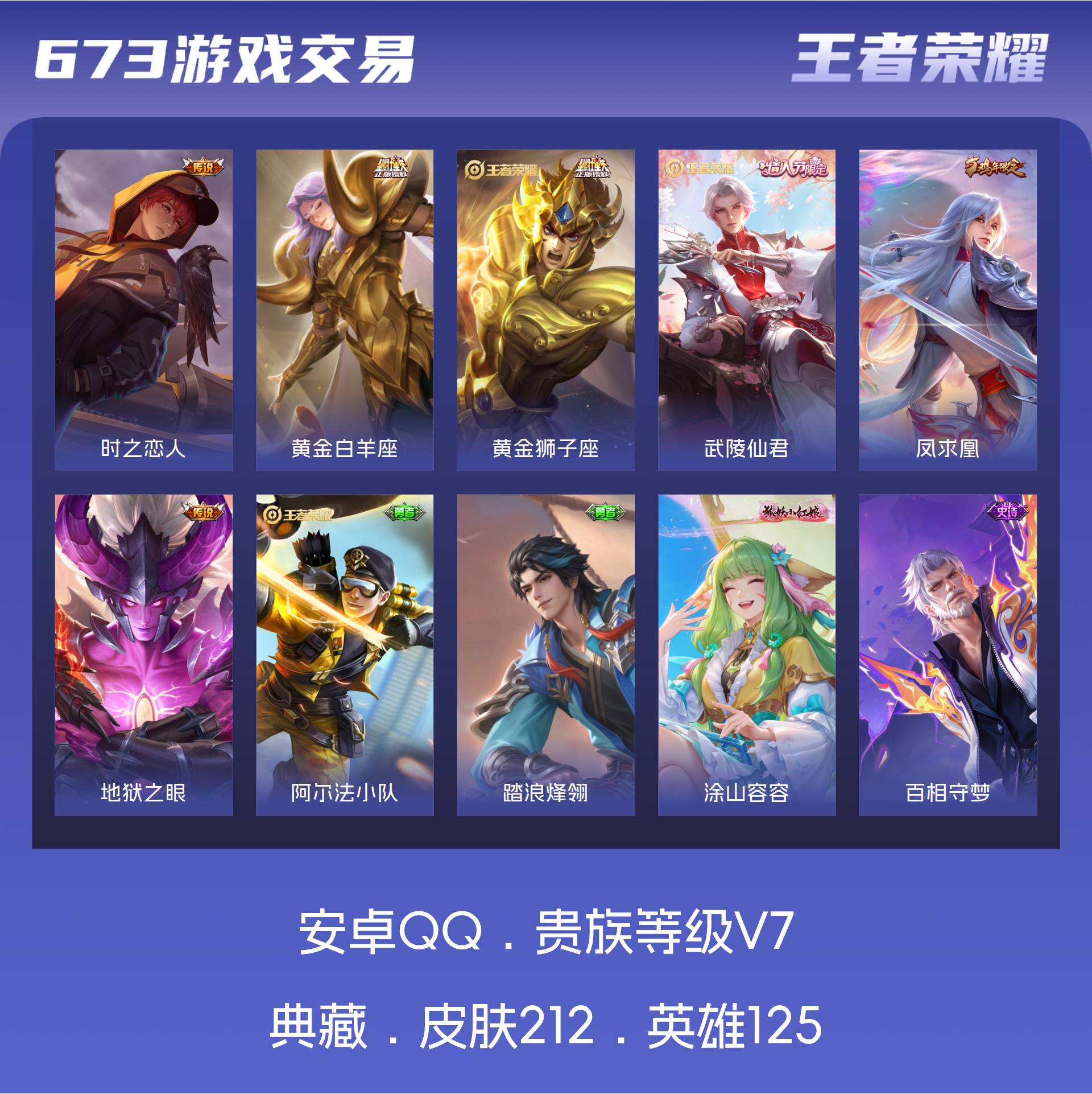 V7 皮肤212 英雄125 永恒钻石 传说6 其他皮肤212