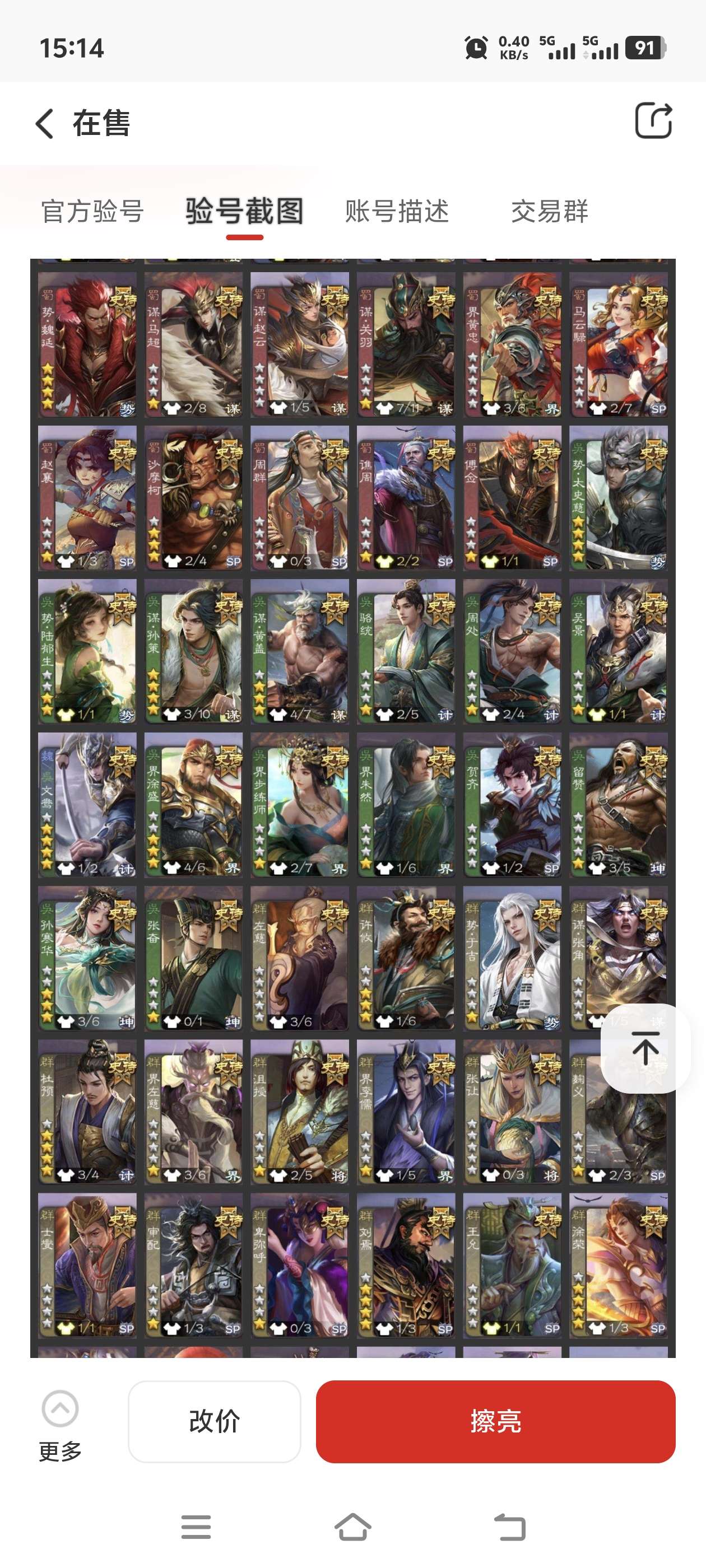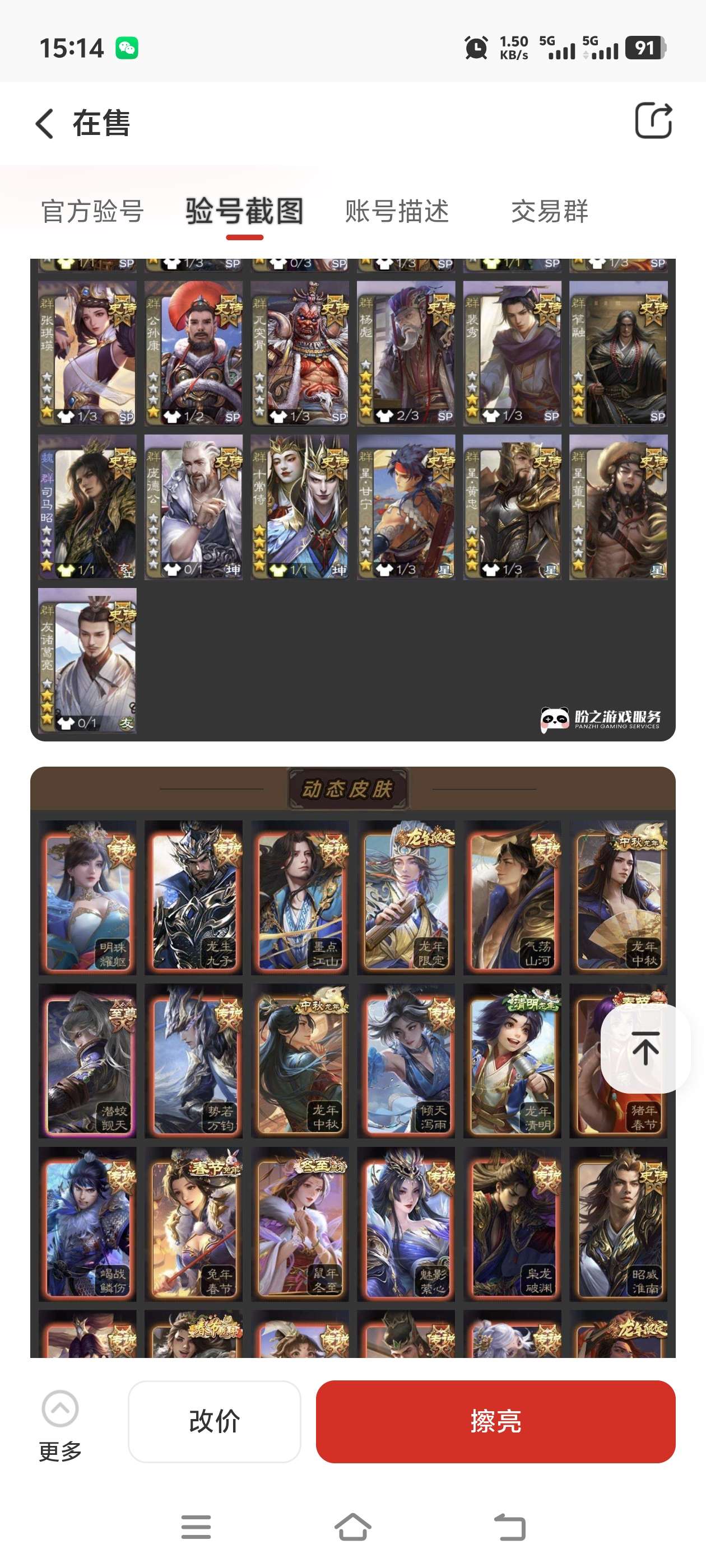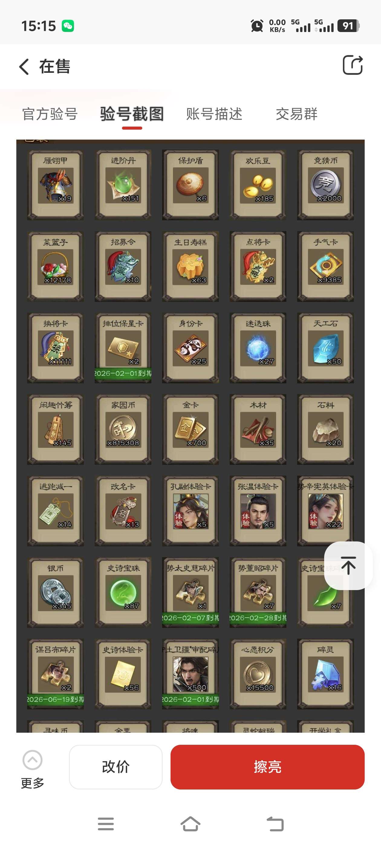 通过App,与卖家商议价格及保险,并向卖家索要账号最新截图,确认后下单购买。