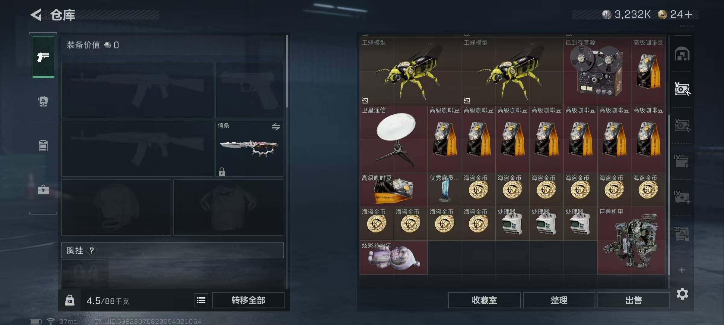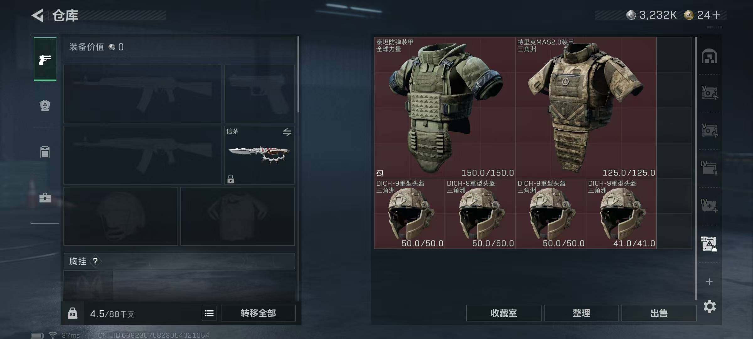 总资产(M):235M/哈夫币(K):3232K/哈夫币(K):3232K/传说枪皮数:12/全面战