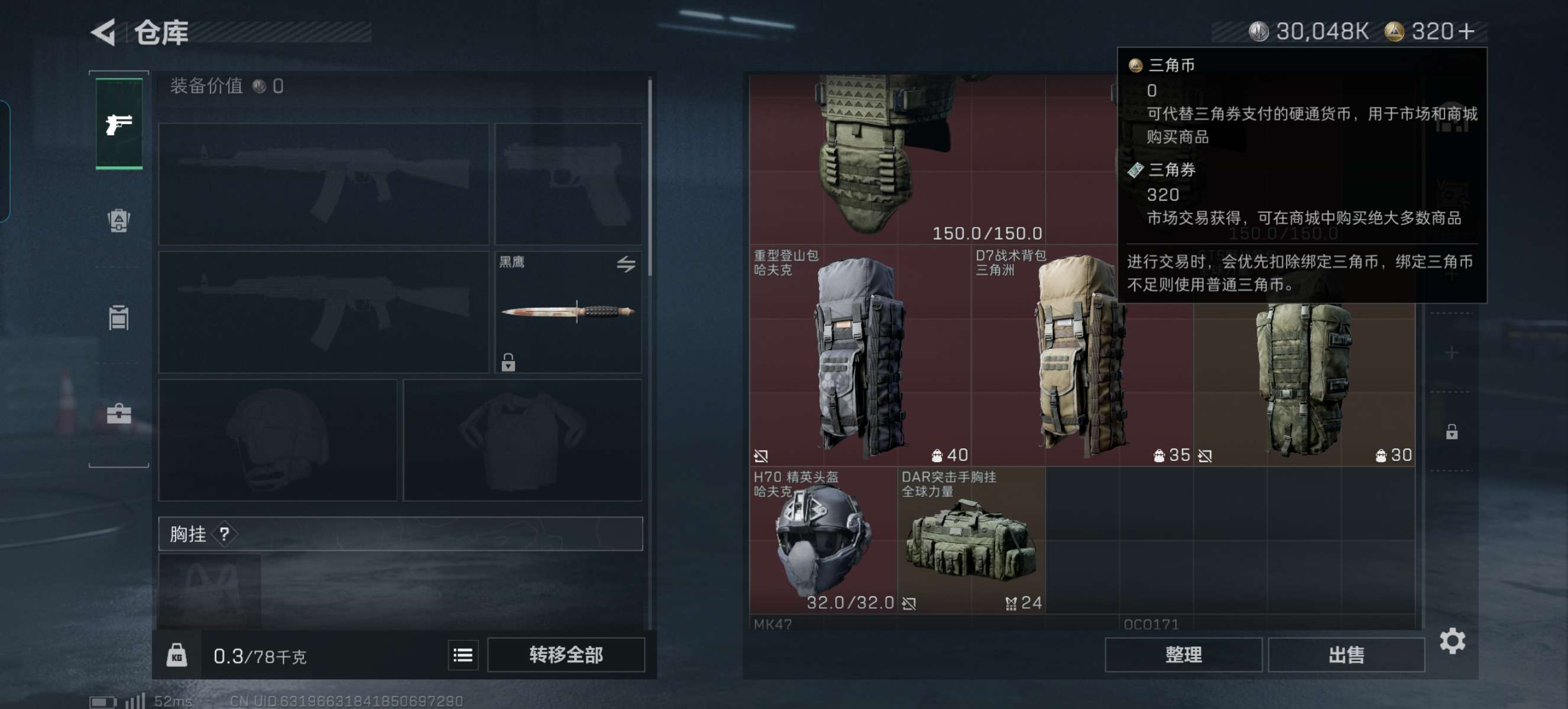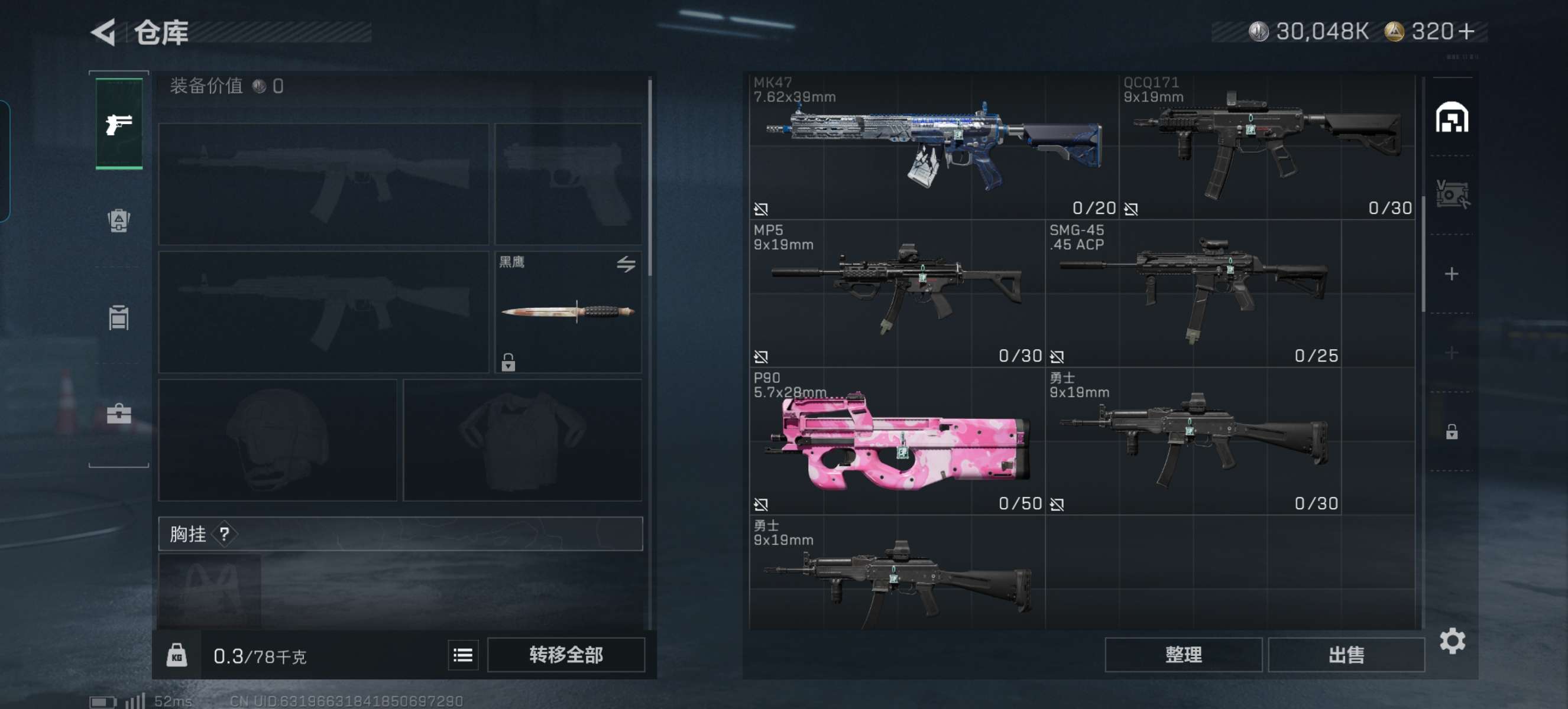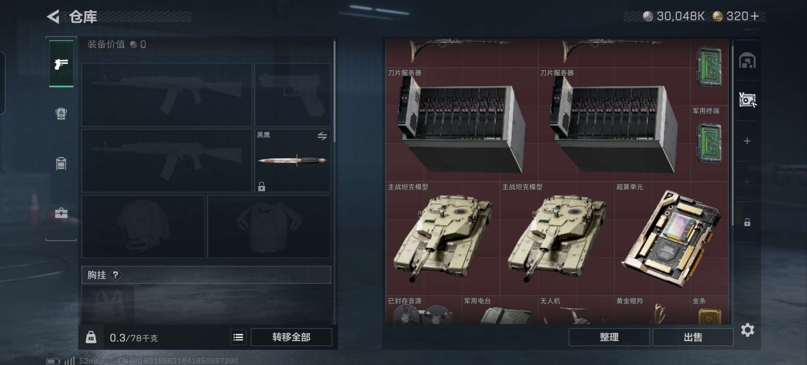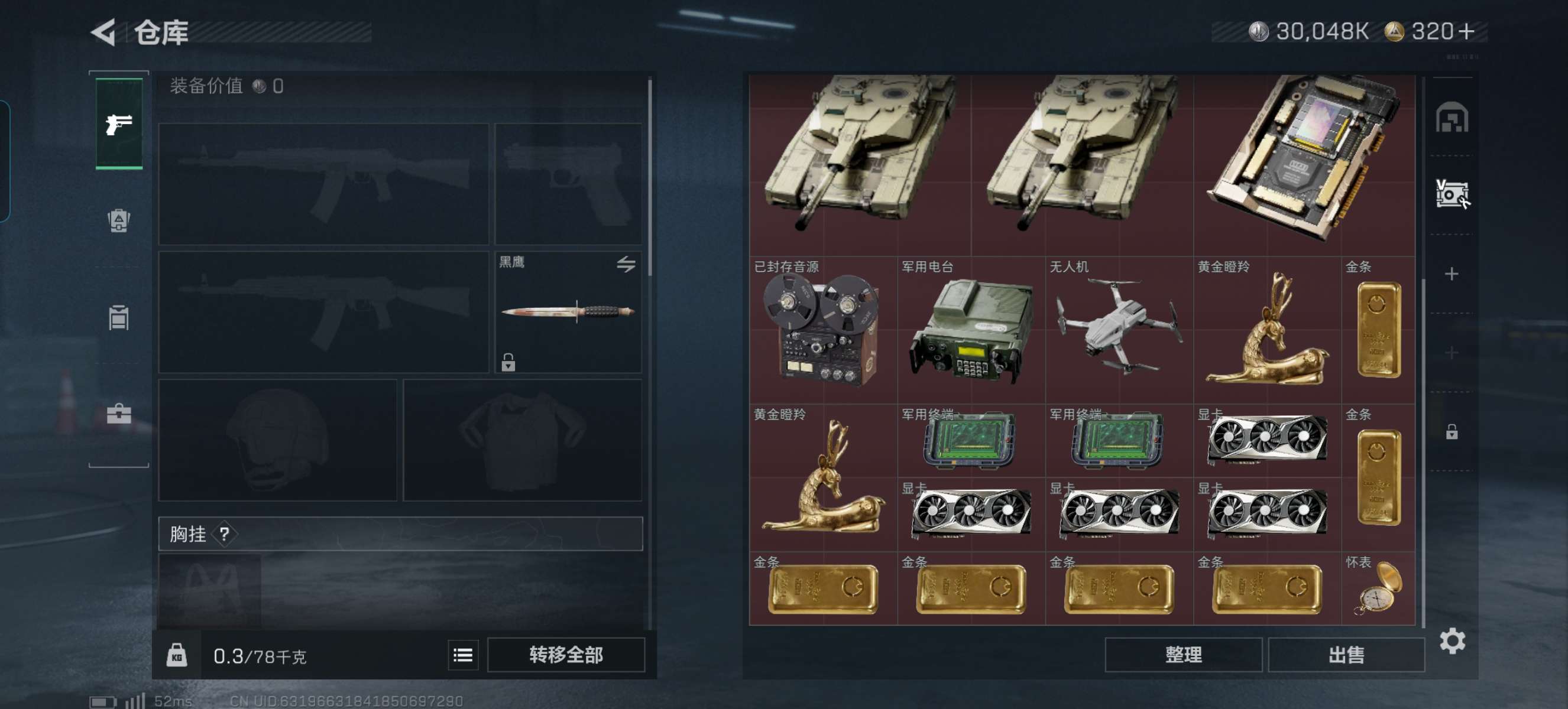 烽火段位白银2 战场段位暂无段位 总资产79M 哈夫币3004W 干员2 挂饰8 近战1 枪械11