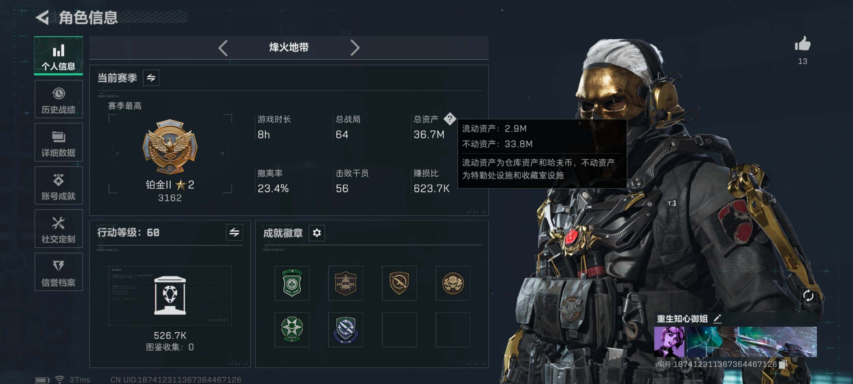 LJ1953总资产36.7M哈弗币237K近战武器-北极星,近战武器-黑鹰红狼蚀金玫瑰,蛊能天使午夜邮差,深蓝不破誓约,蜂医送葬人无题密令无无AW子弹0发三角币186仓库LV.7进阶安全箱靶场LV.7训练中心LV.7无,红狼-蚀金玫瑰,蛊-能天使午夜邮差,深蓝-不破誓约,蜂医-送葬人·无题密令,近战-北极星,近战-黑鹰