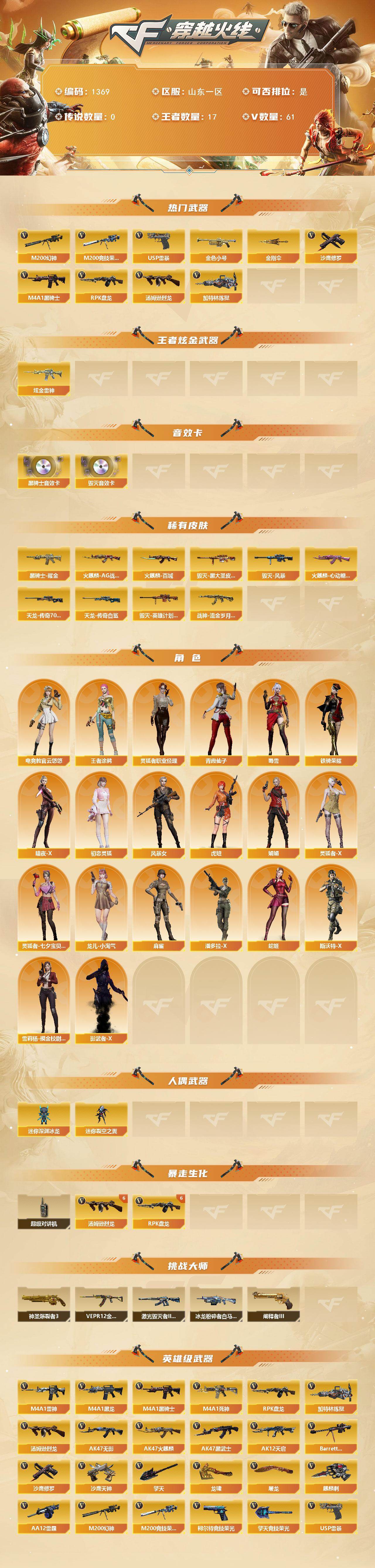 山东一区-61V-17王者-1炫金【热门武器】:M200-幻神,M200-竞