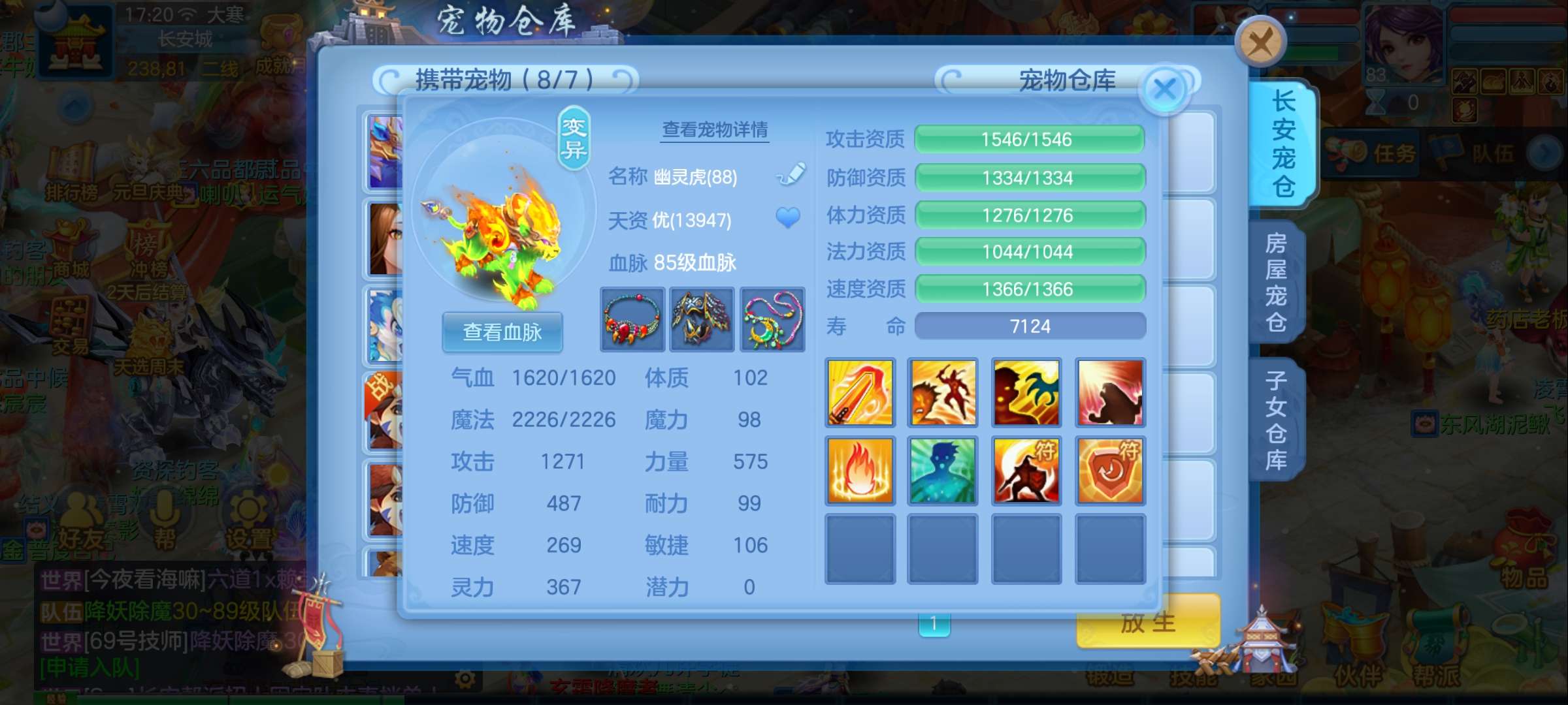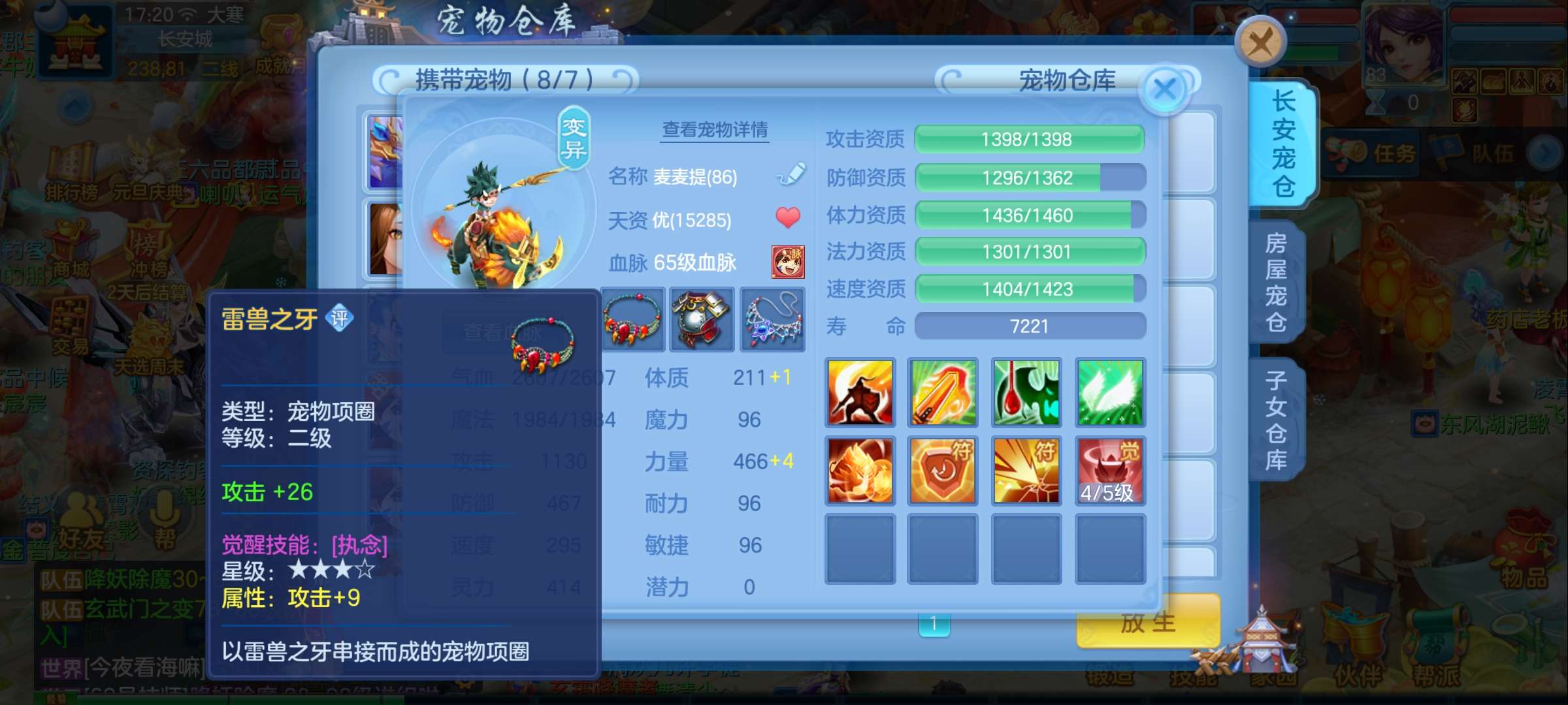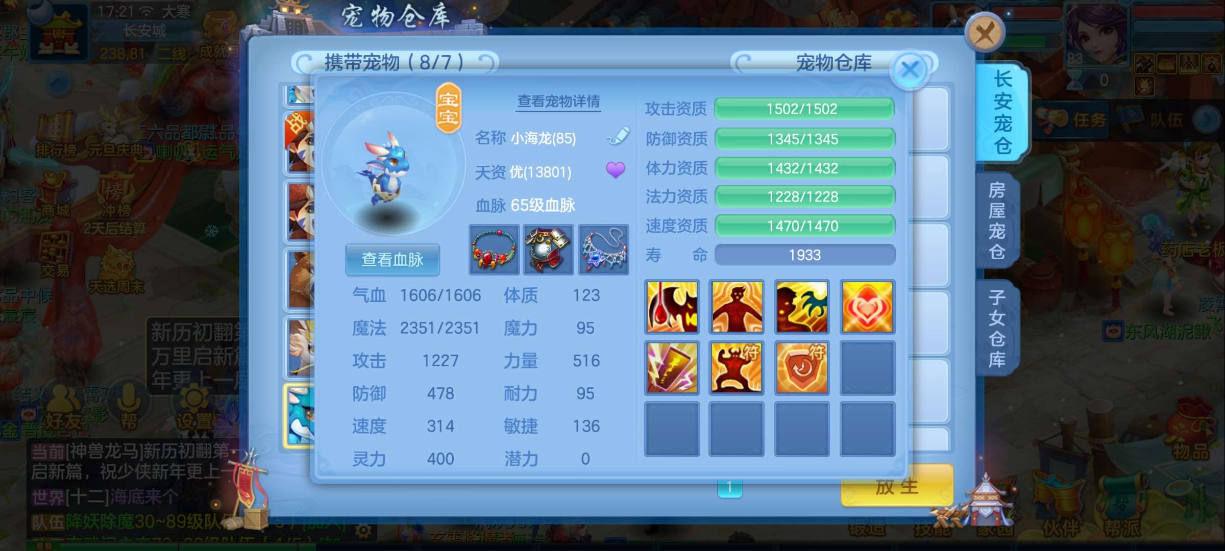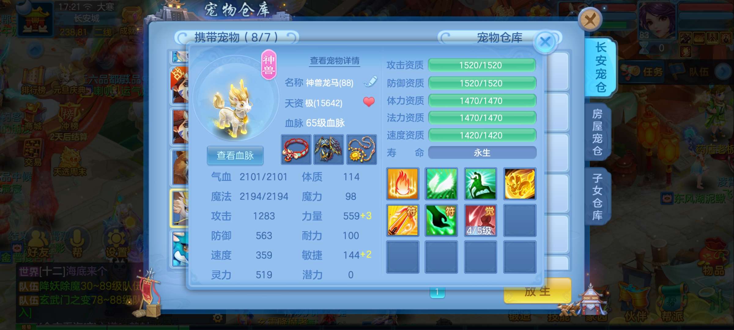 跟等级83级魔王,可以高级一条,法爆武器,,神兽龙马,26神兽丹,27内丹碎片,血脉5技能猪