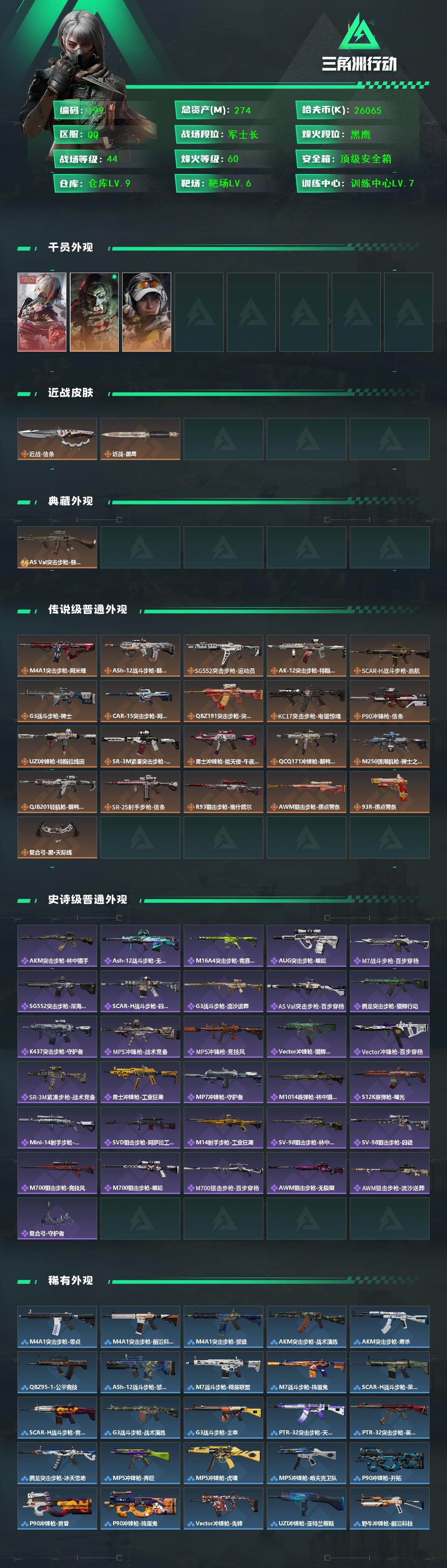 274m总资产-26065k哈伏币-60烽火等级-黑鹰-44战场等级-军士长 ws0012