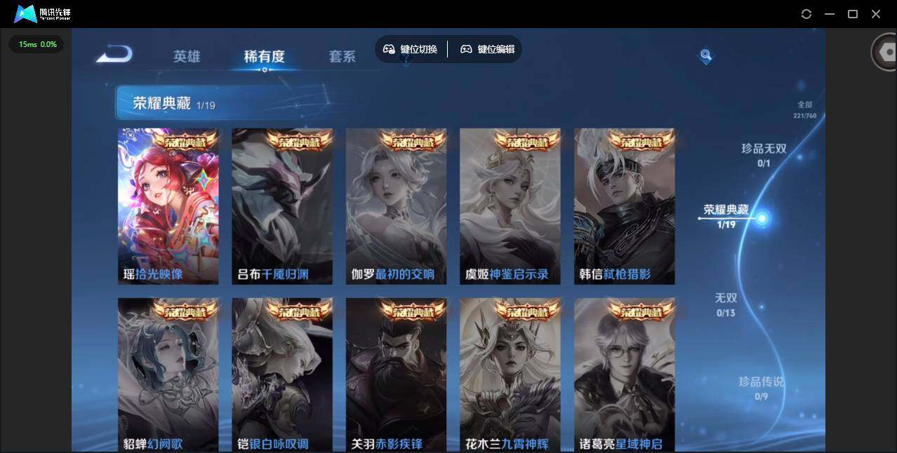 实名: 可修改 贵族等级: V6 英雄数: 127 皮肤数: 221 荣耀水晶