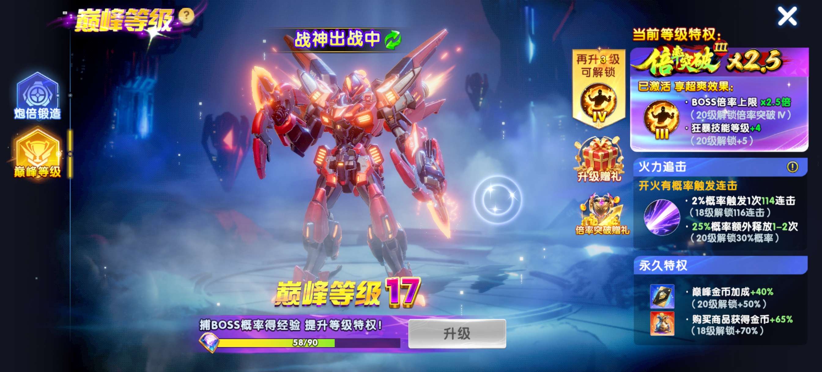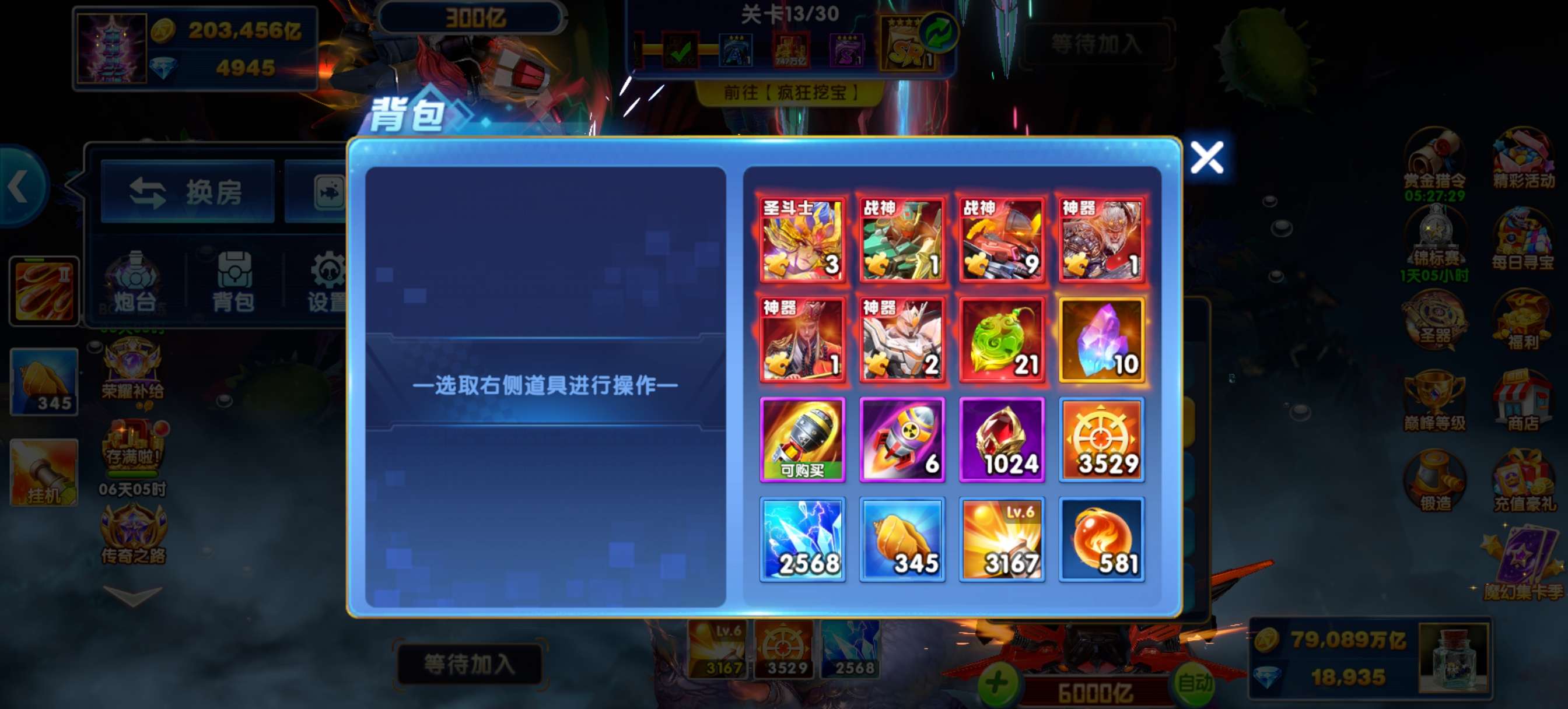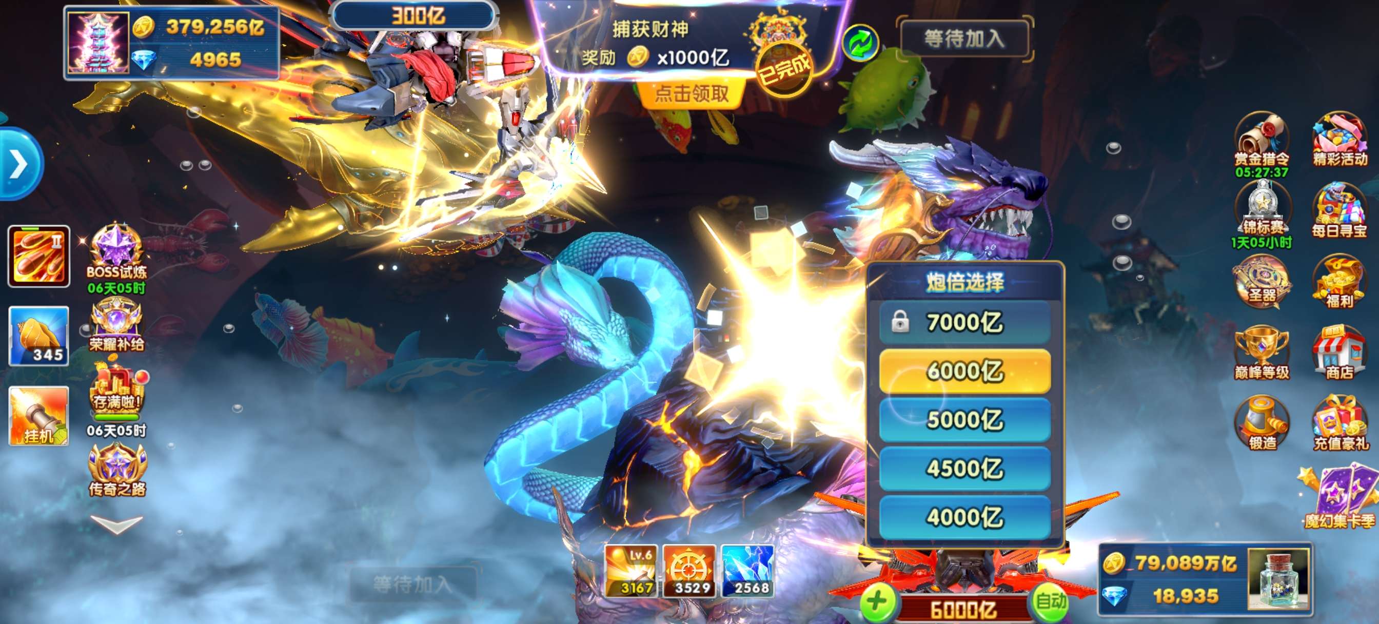 捕鱼大作战小米版本,原60亿炮,金币7.9兆,巅峰17级,战神刀手1级姜维,破产回20,低价出售。