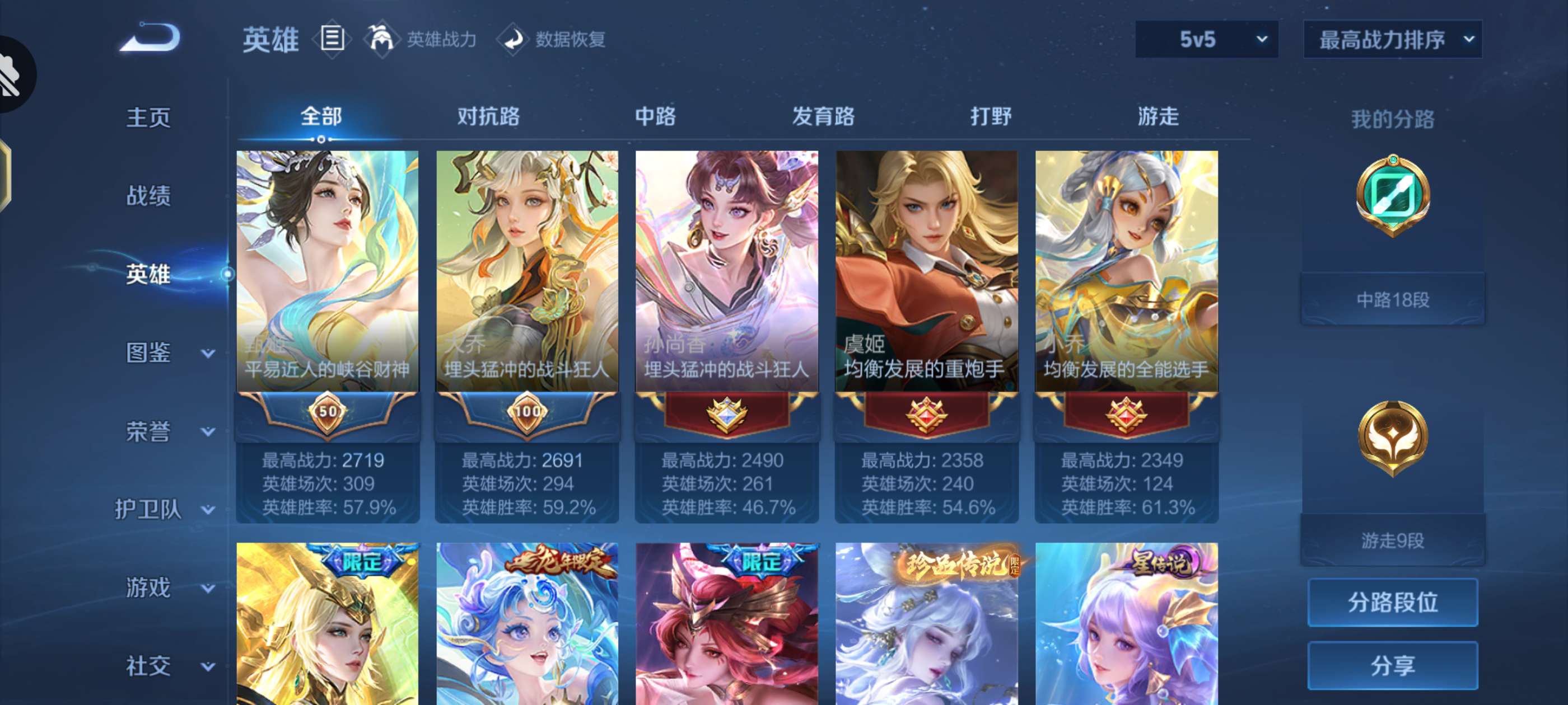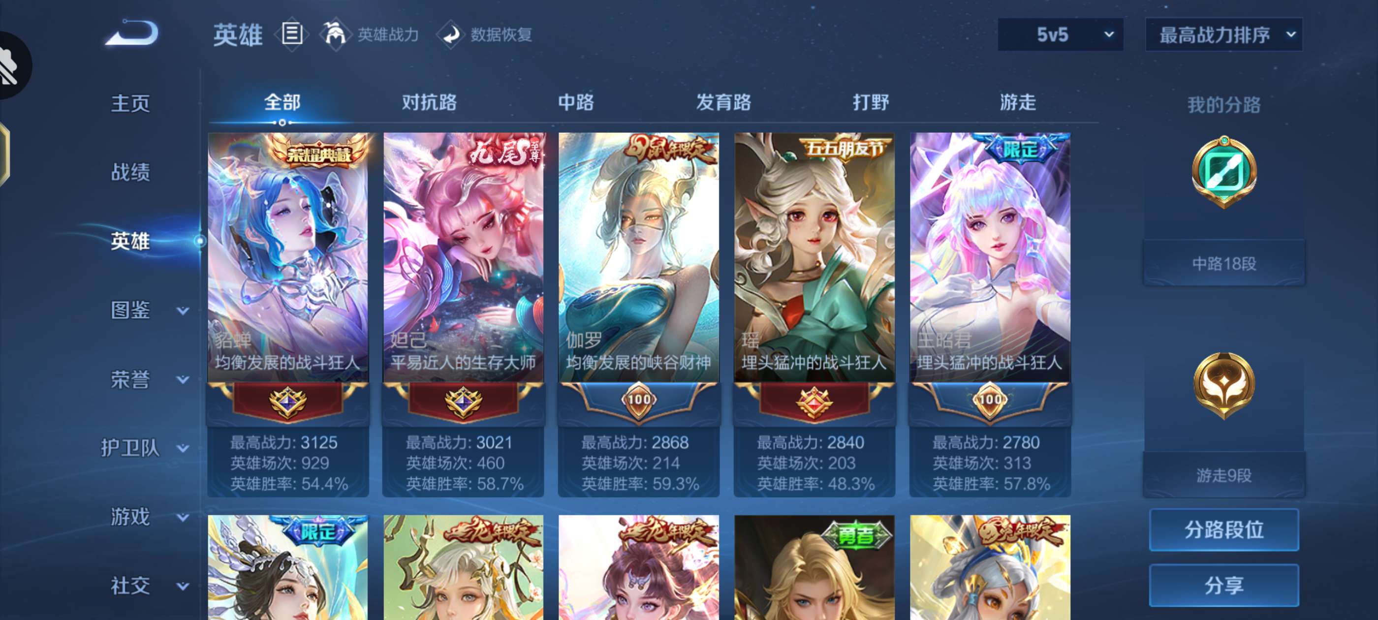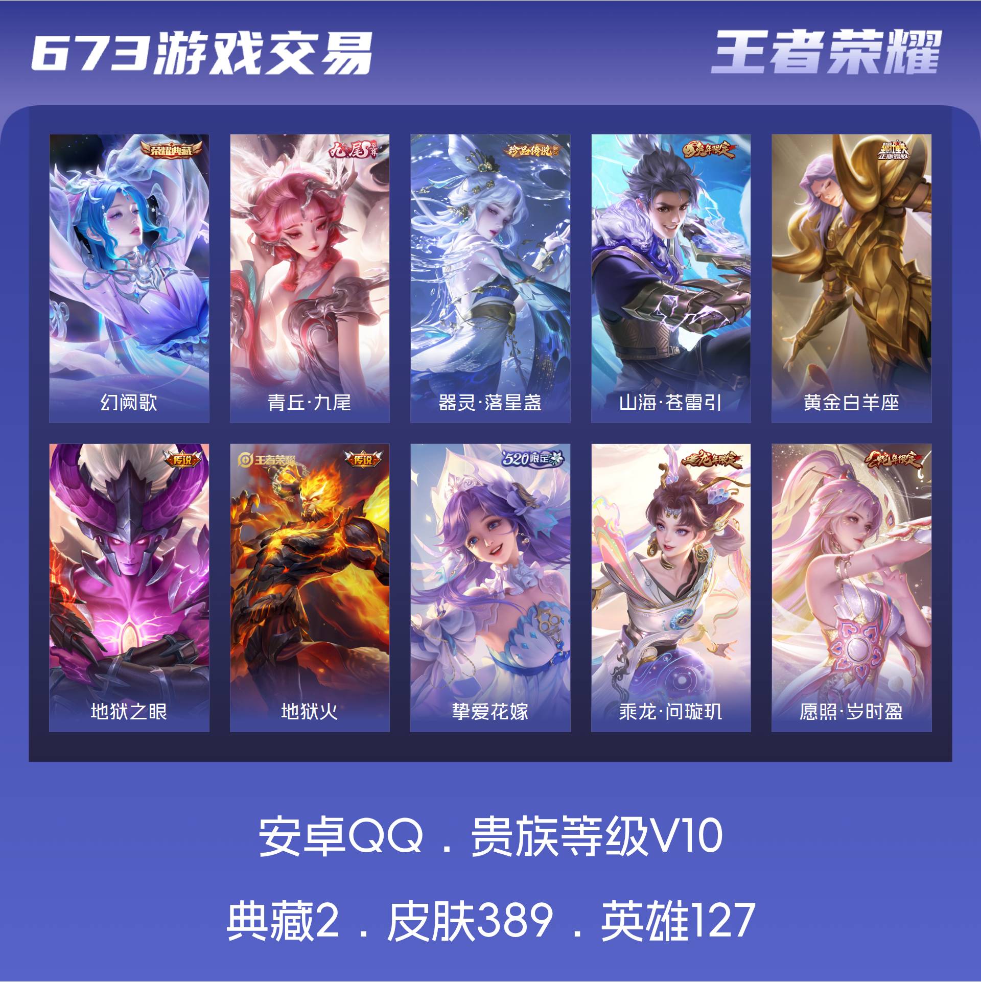 V10 皮肤389 英雄127 永恒钻石 荣耀典藏2 无双皮肤1 珍品传说1 星传说2 传说50 其他皮肤340