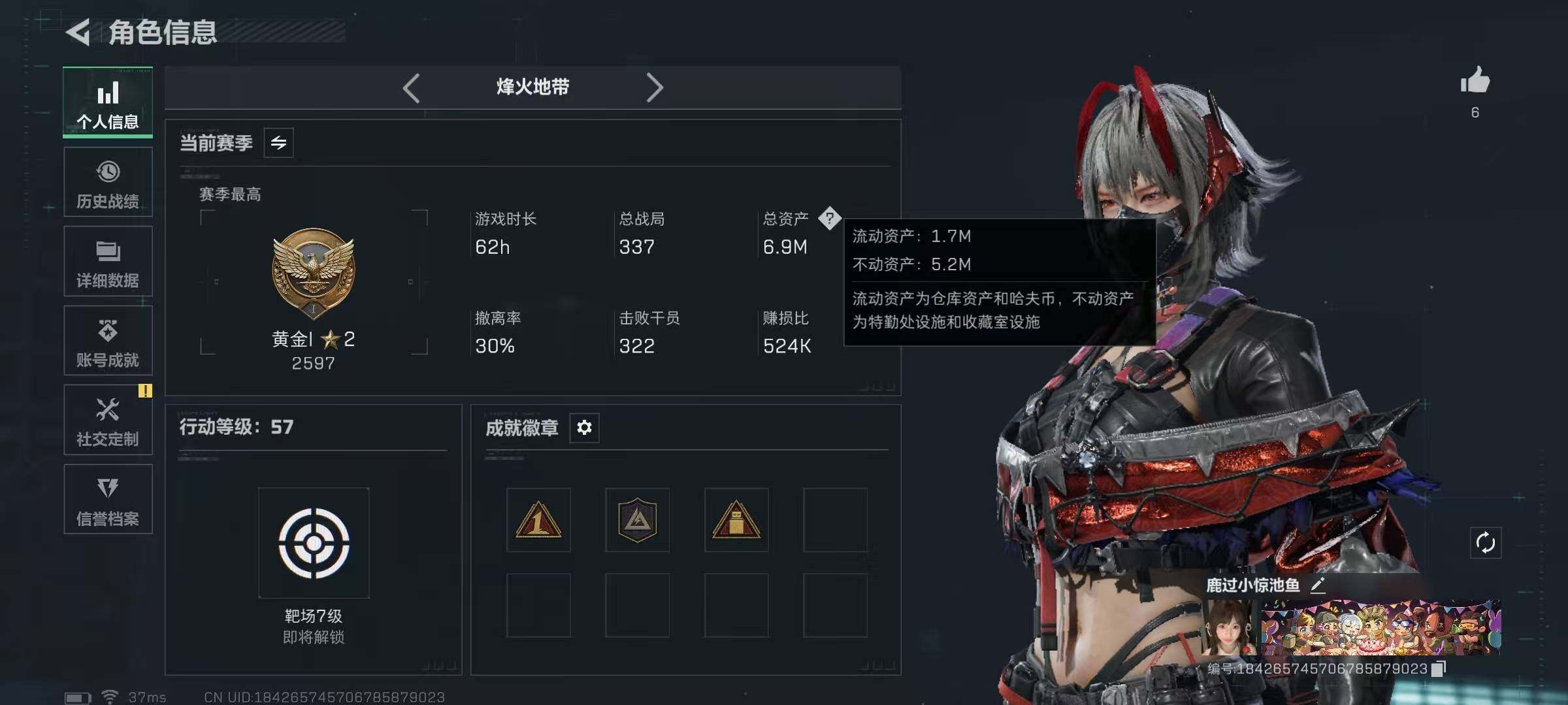 总资产(M):6M/哈夫币(K):272K