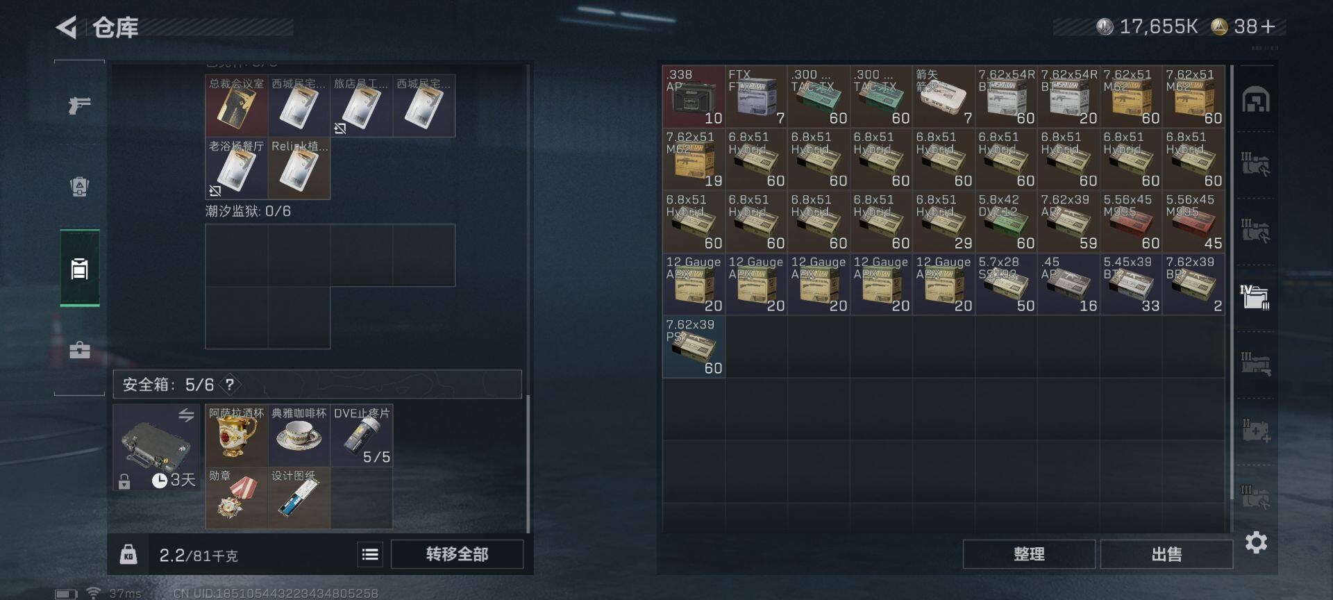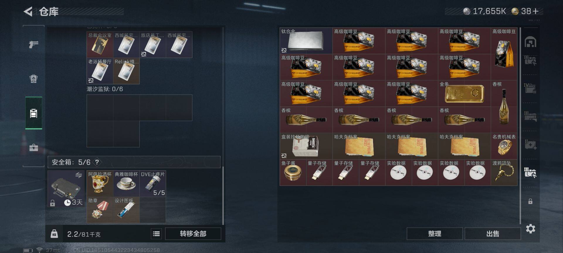 总资产(M):93M/哈夫币(K):17655K