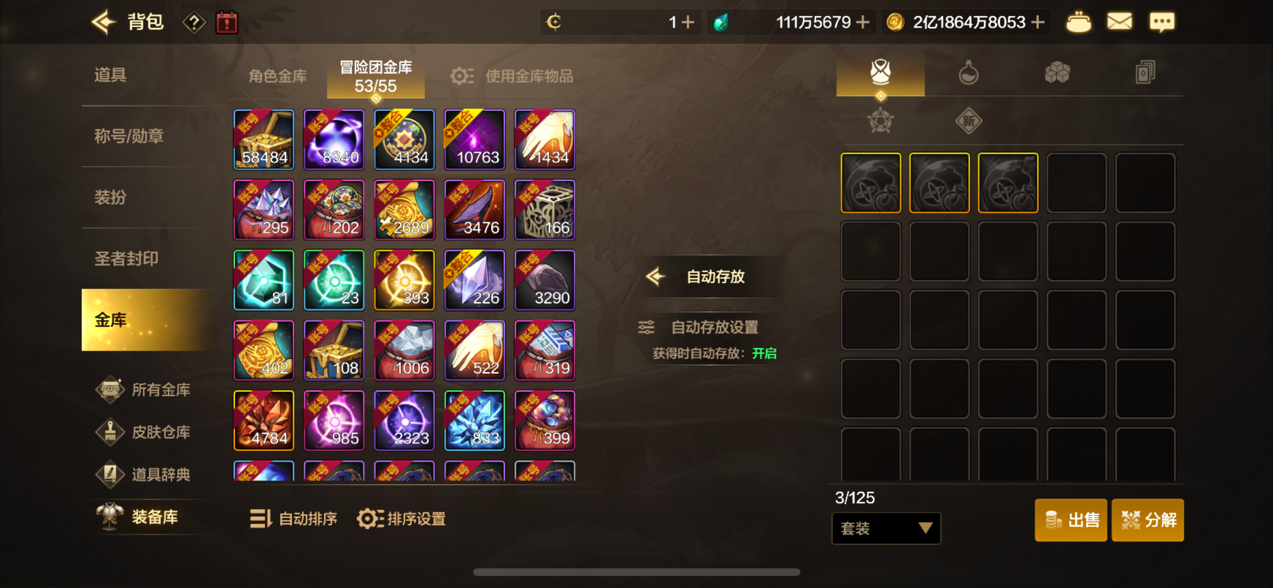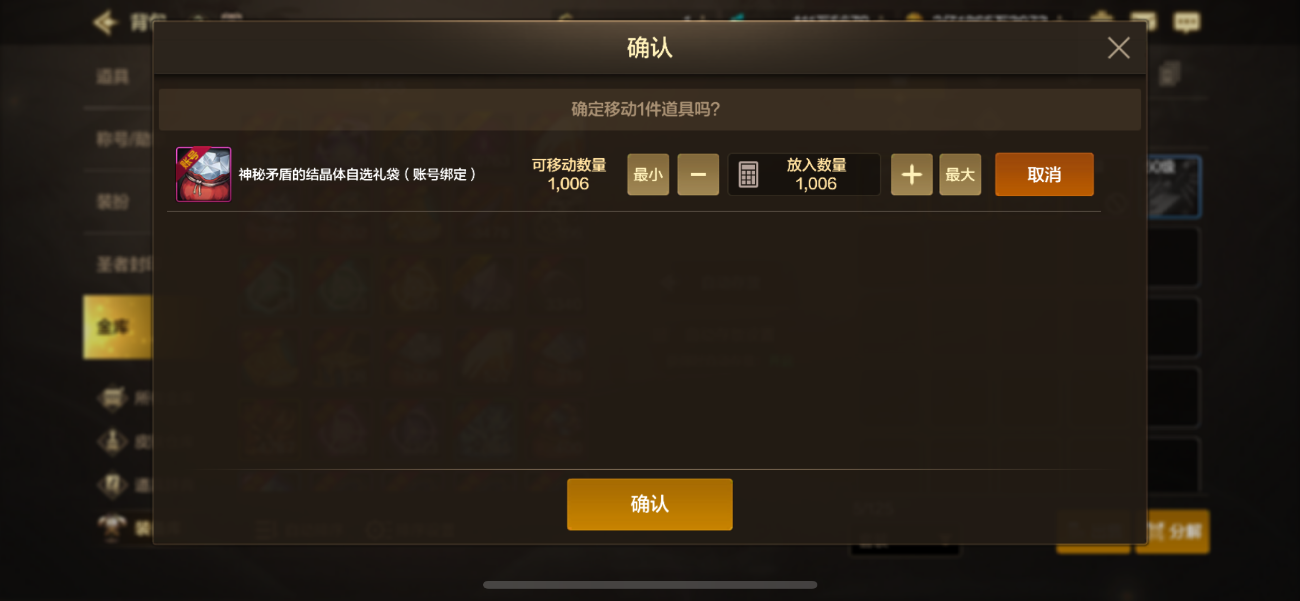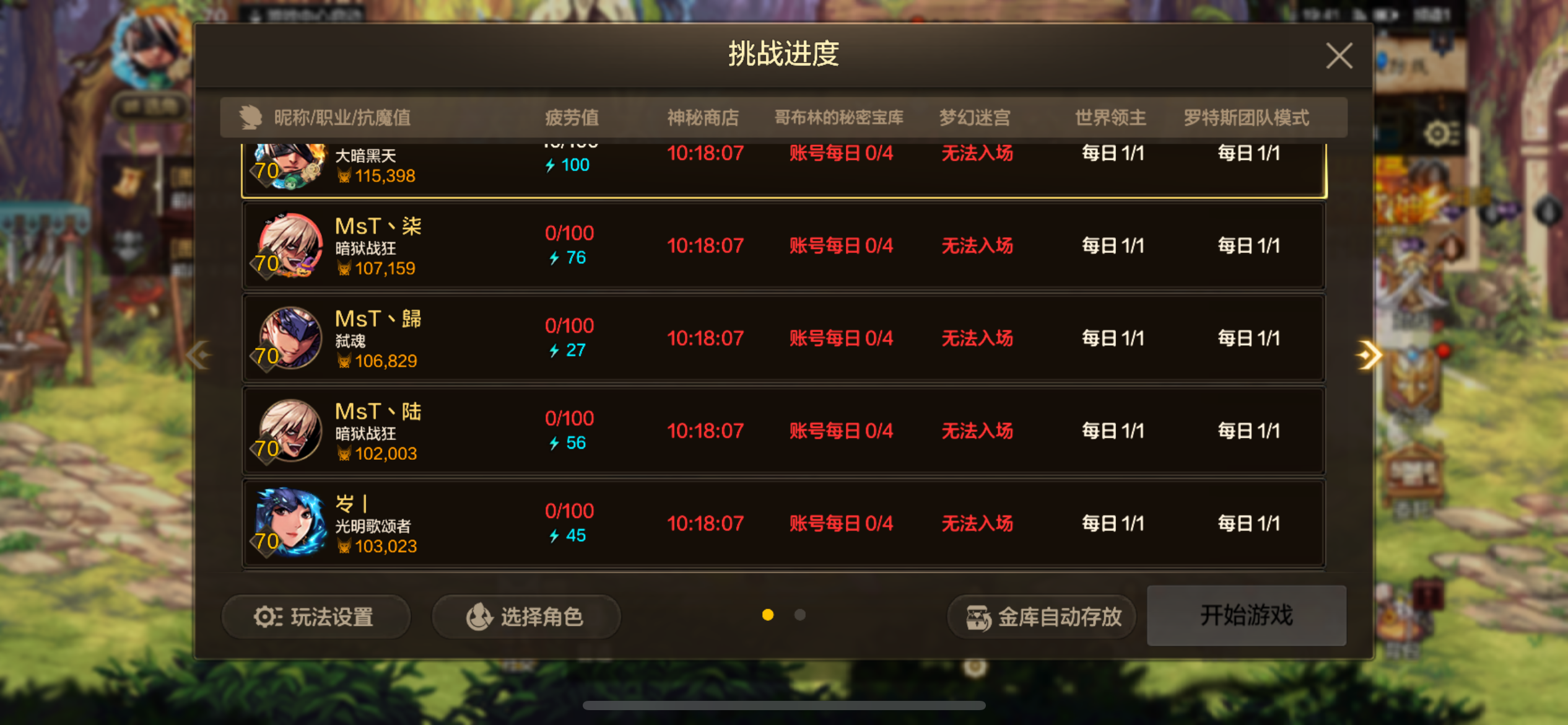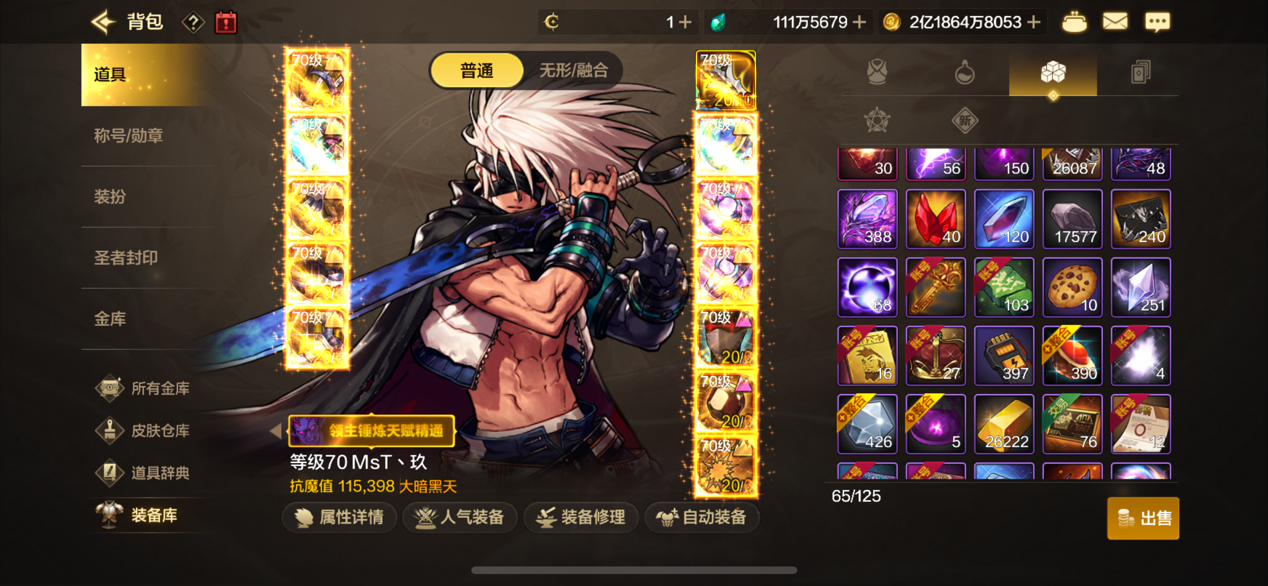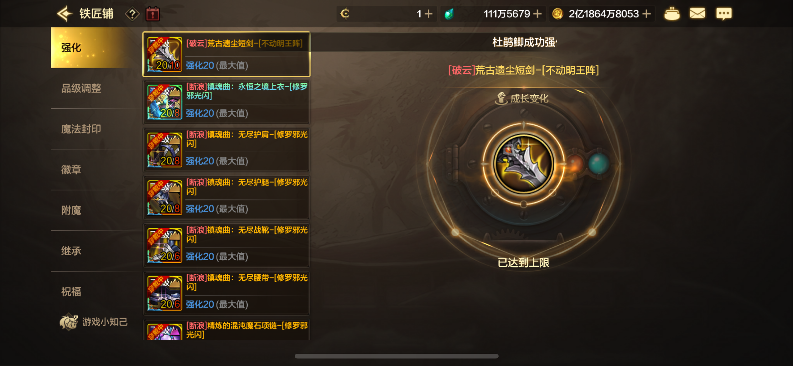 主修罗11.5。武器增幅10,3件8其它全6。小号都增幅7加5套。还有1000个矛盾袋子没开
