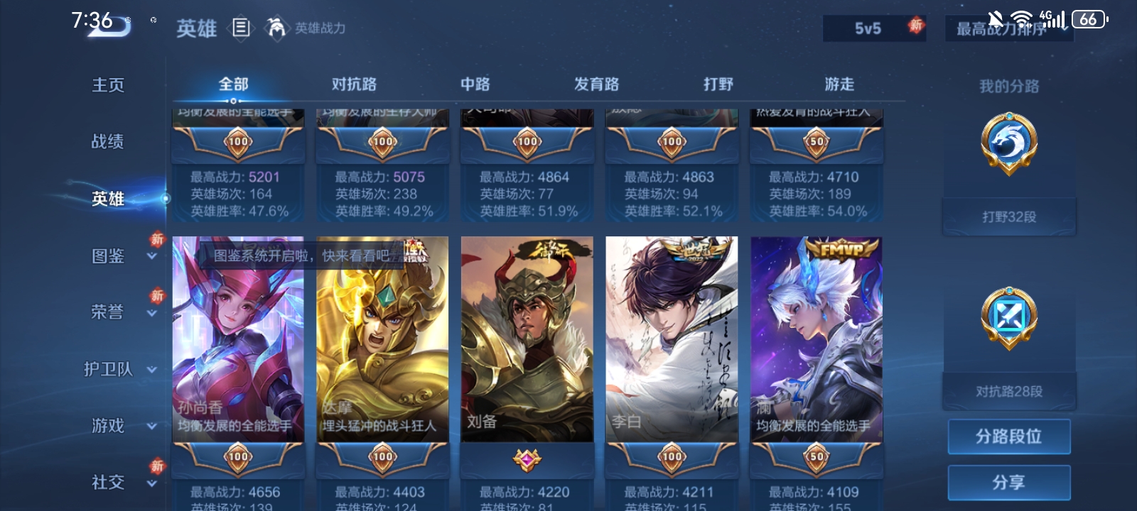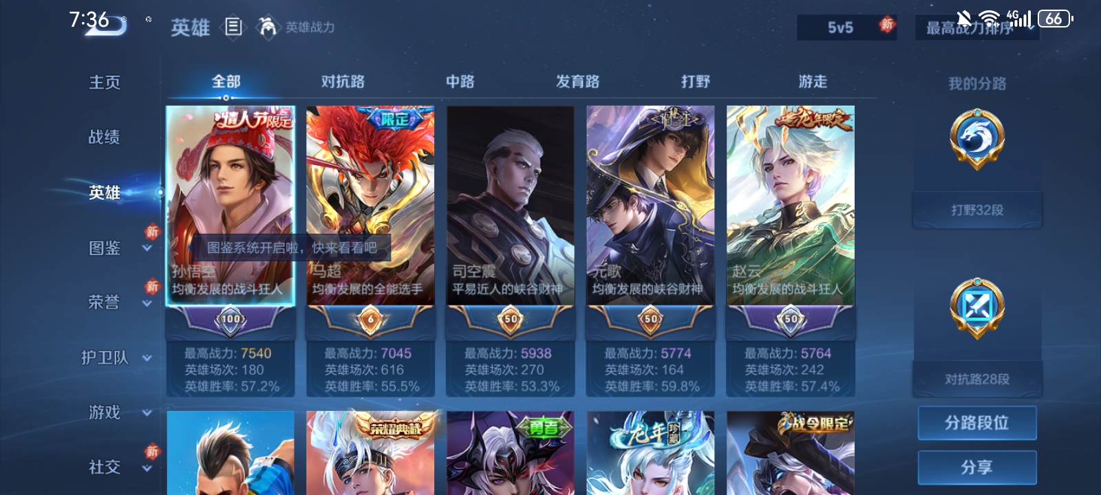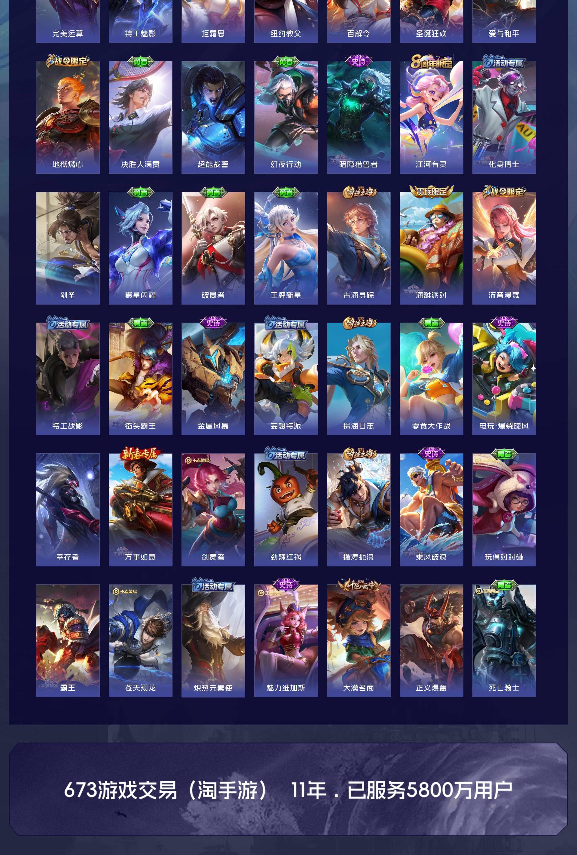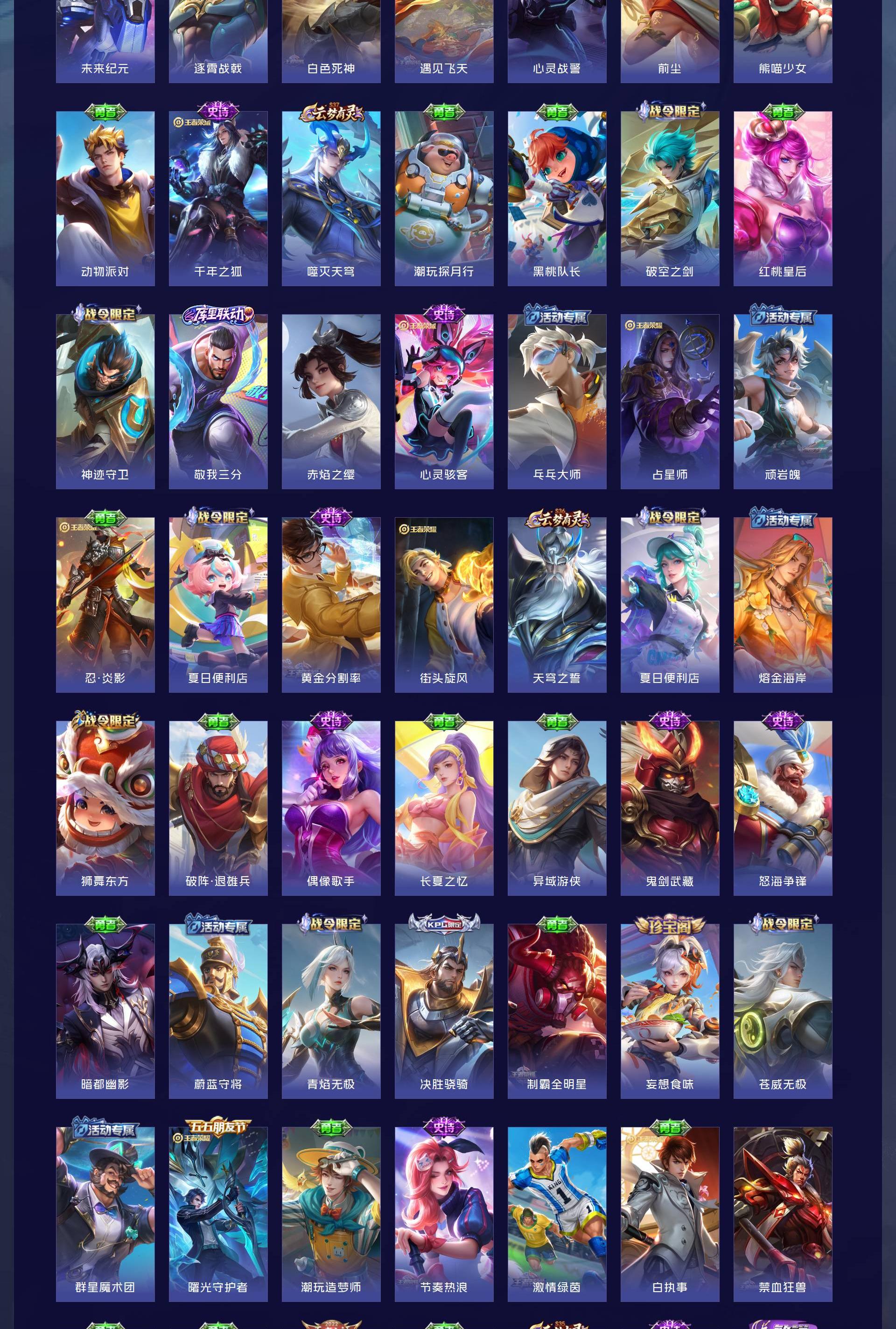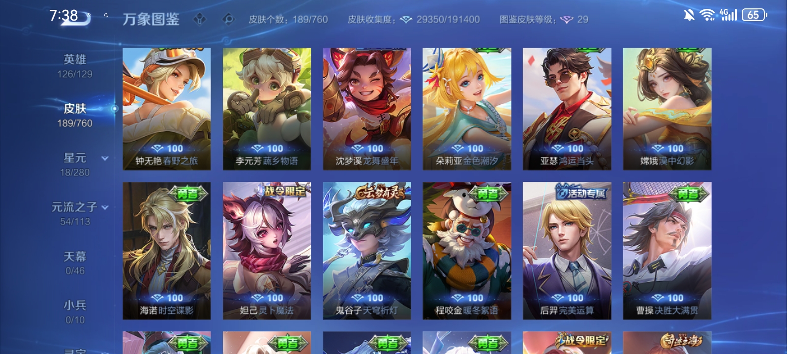 V7 皮肤189 英雄126 至尊星耀 荣耀典藏1 传说10 其他皮肤182