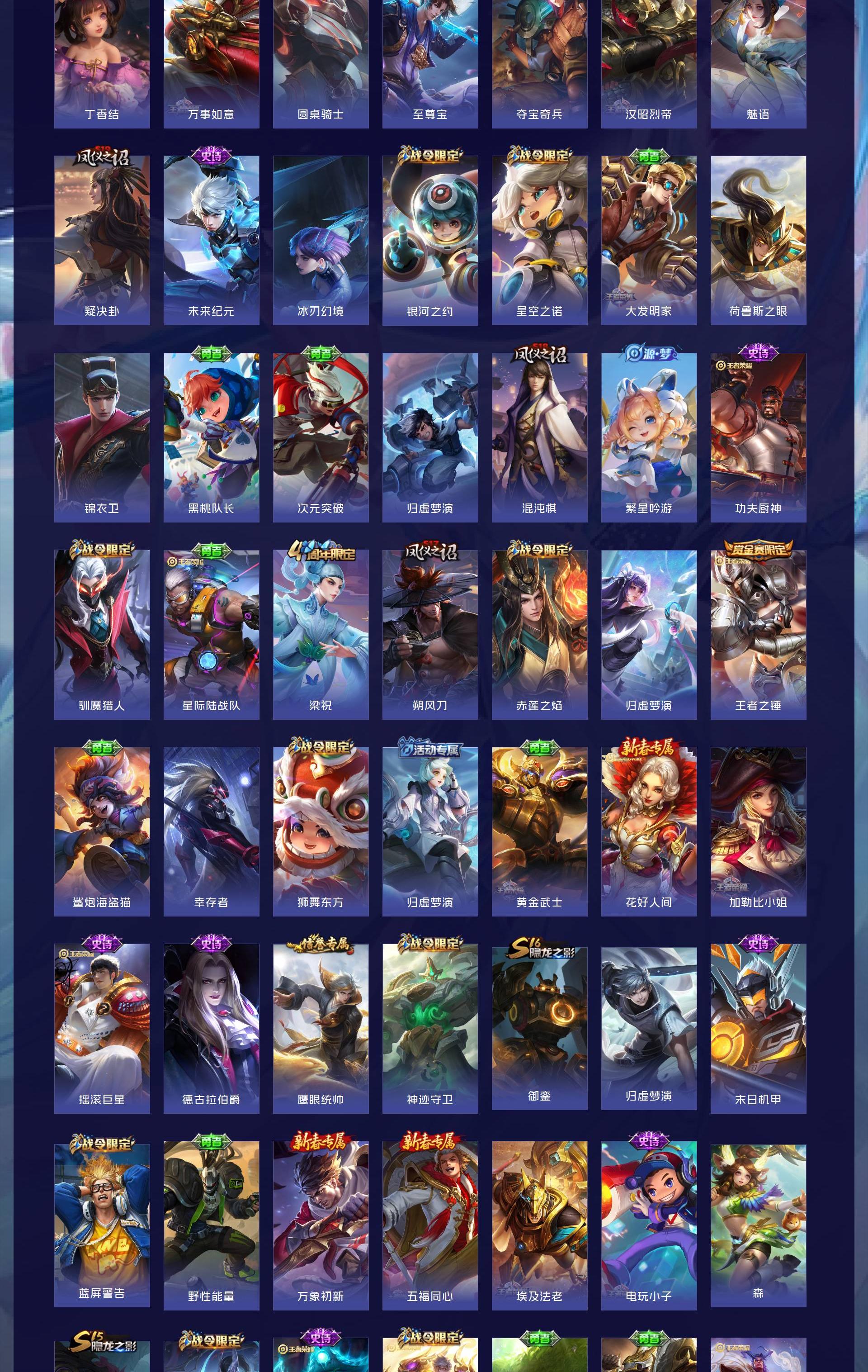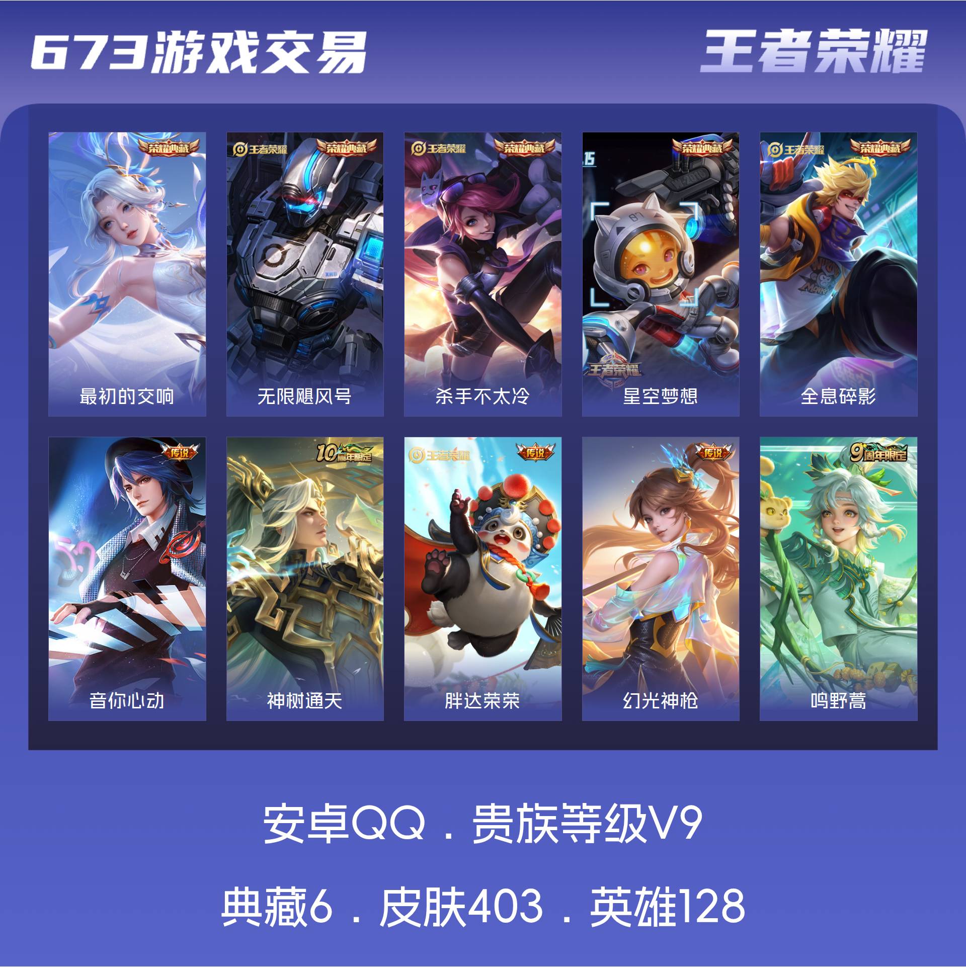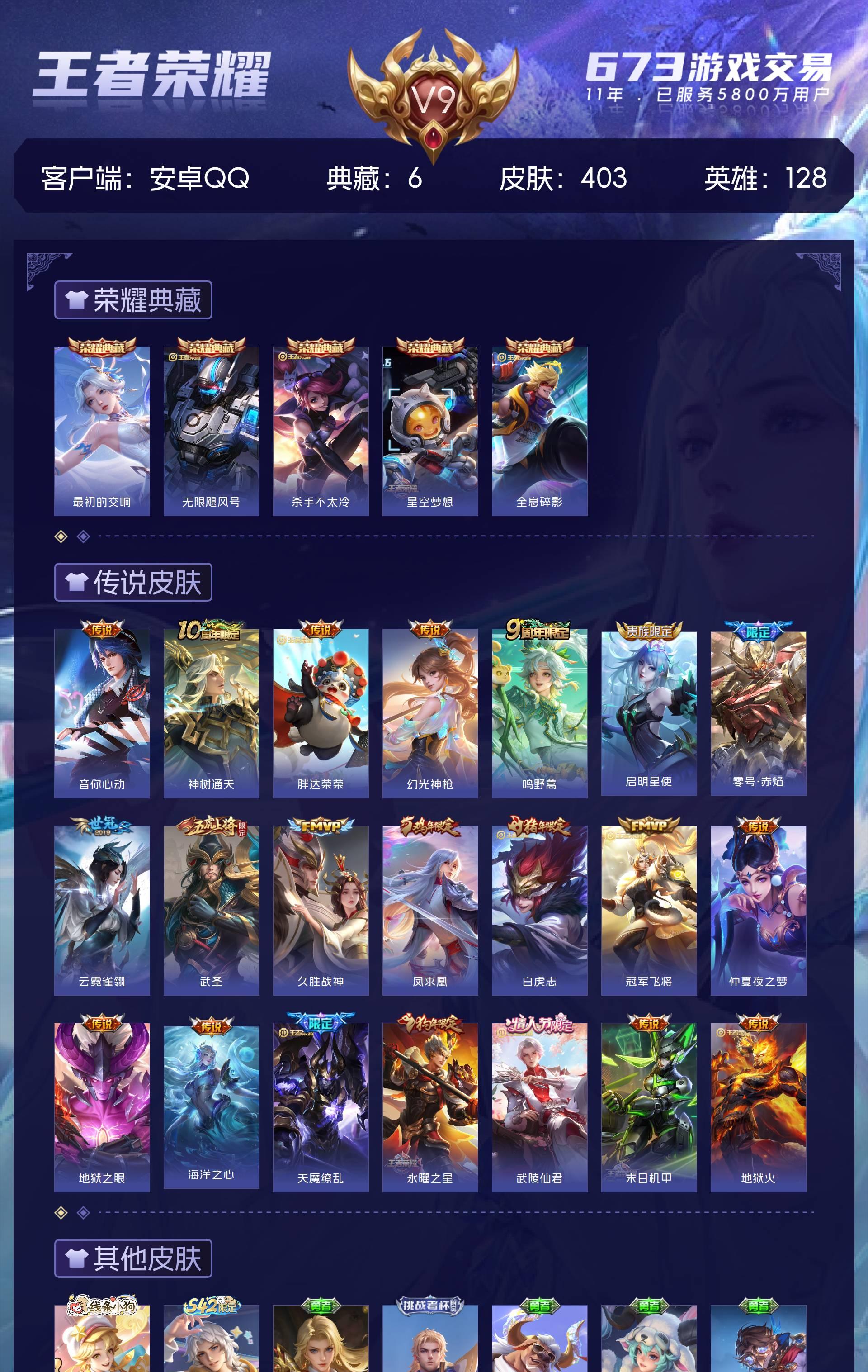 V9 皮肤403 英雄128 永恒钻石 荣耀典藏6 传说21 其他皮肤382