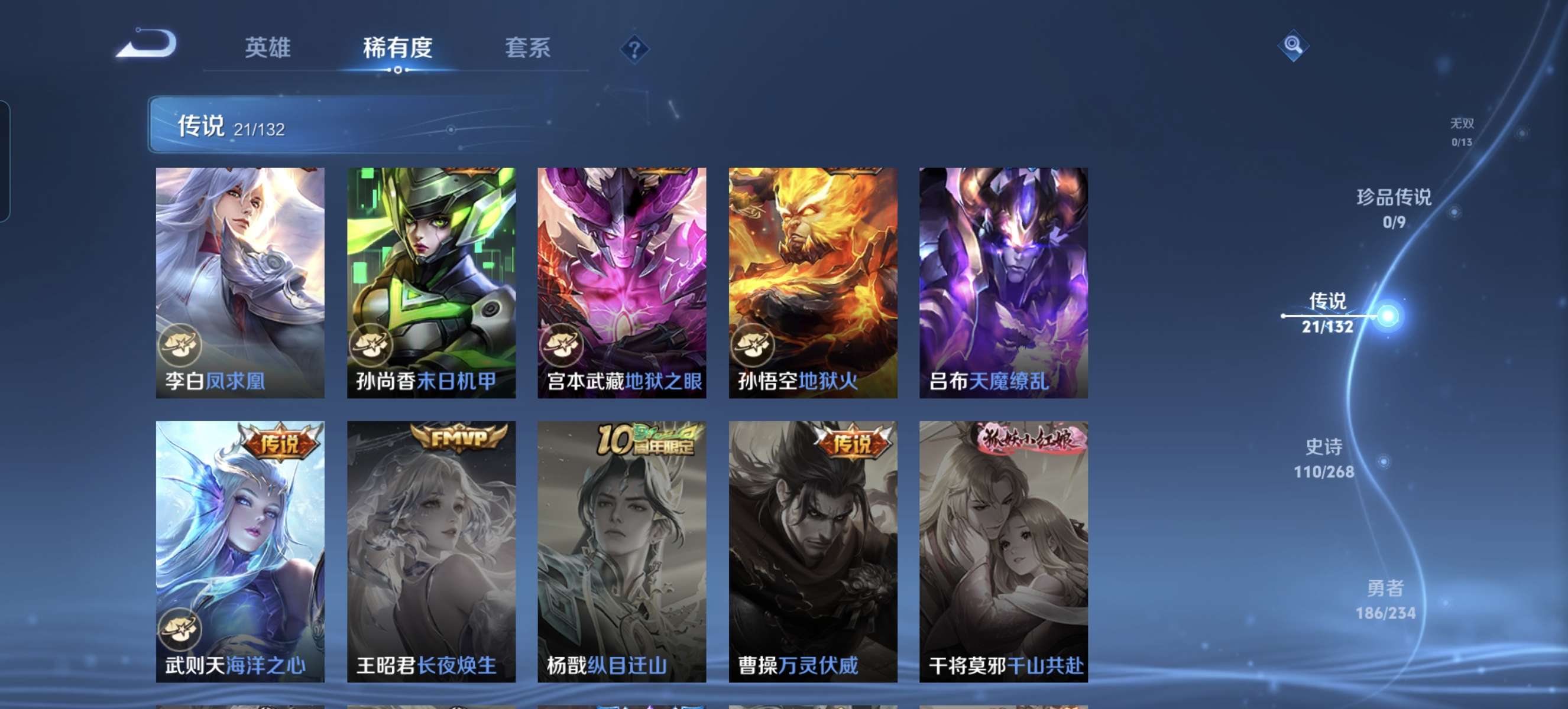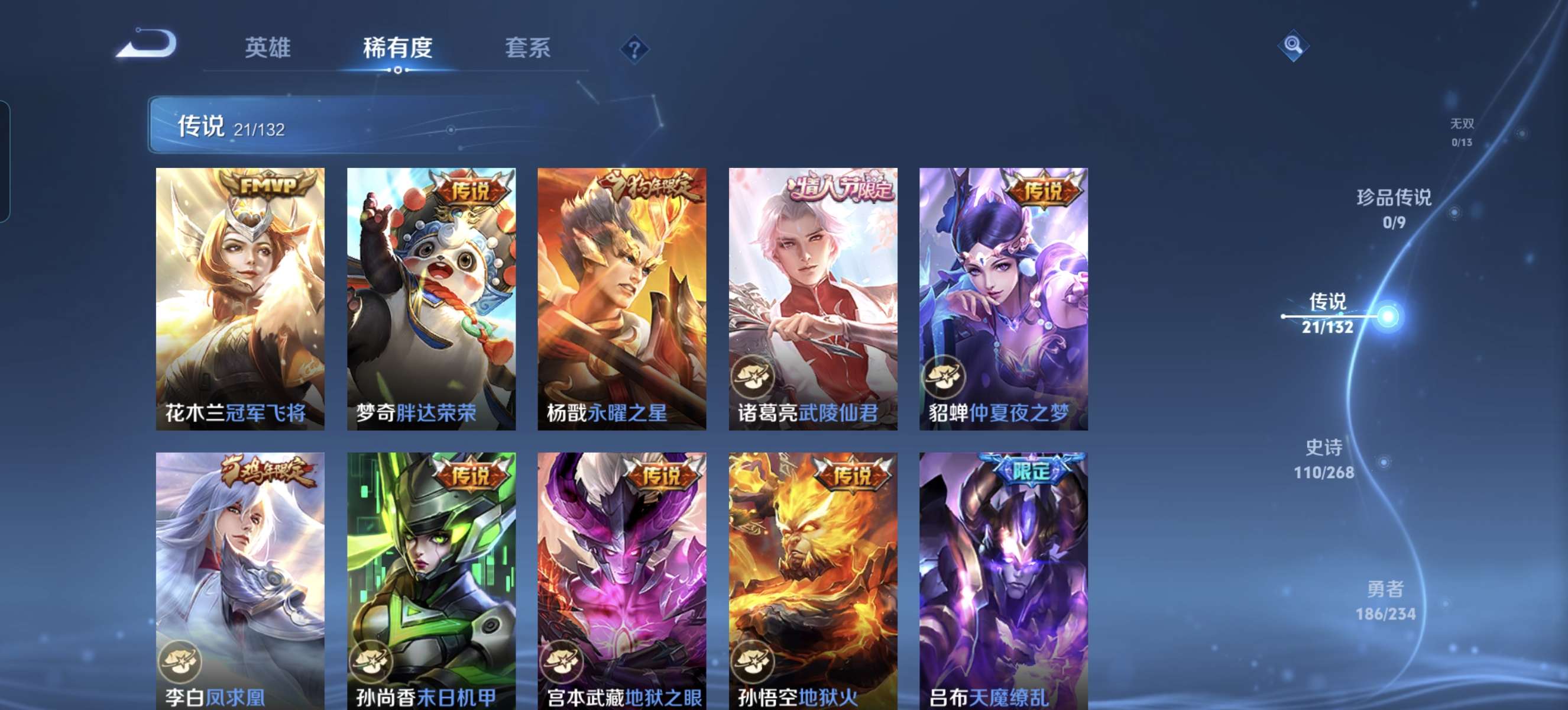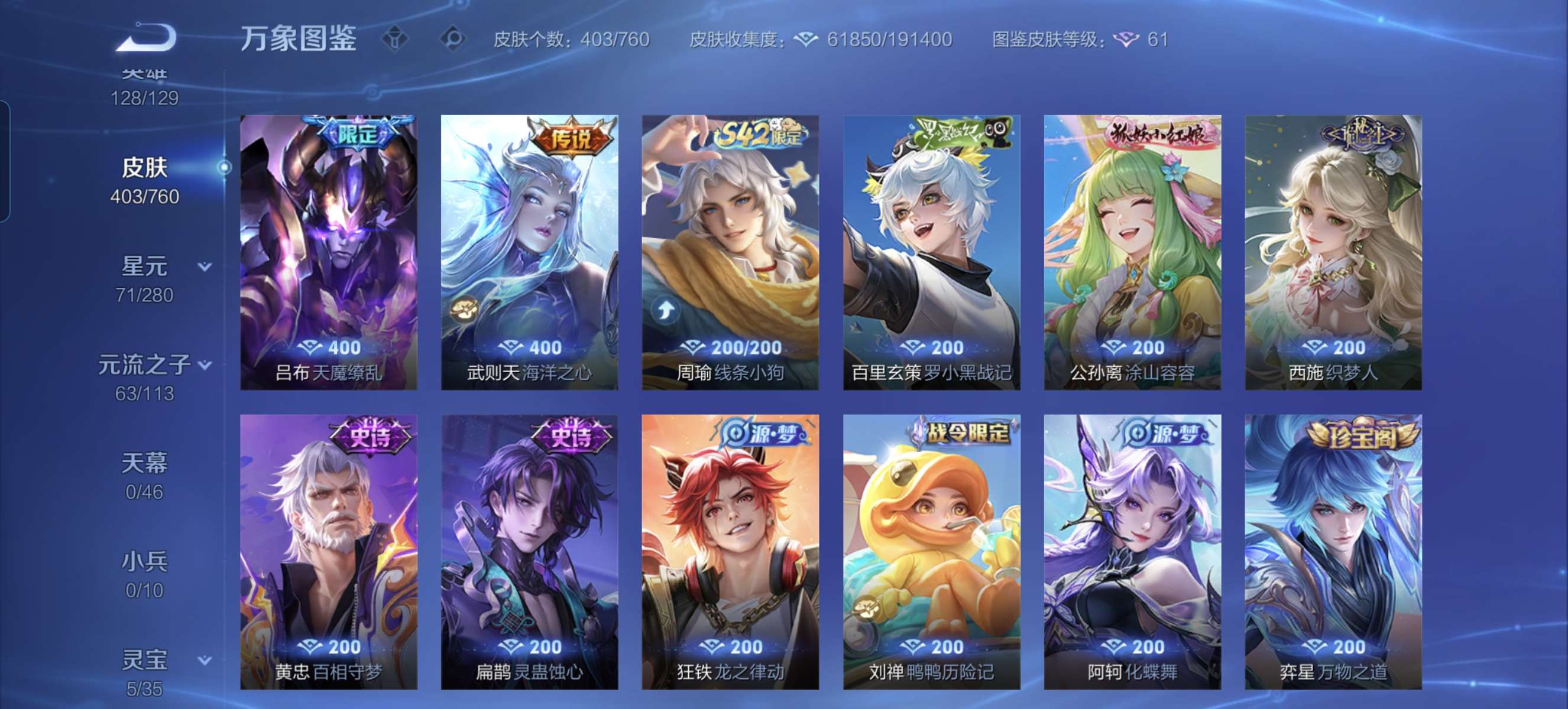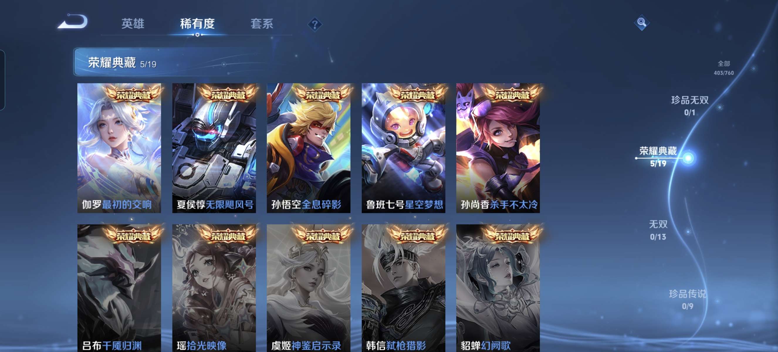 V9 皮肤403 英雄128 永恒钻石 荣耀典藏6 传说21 其他皮肤382