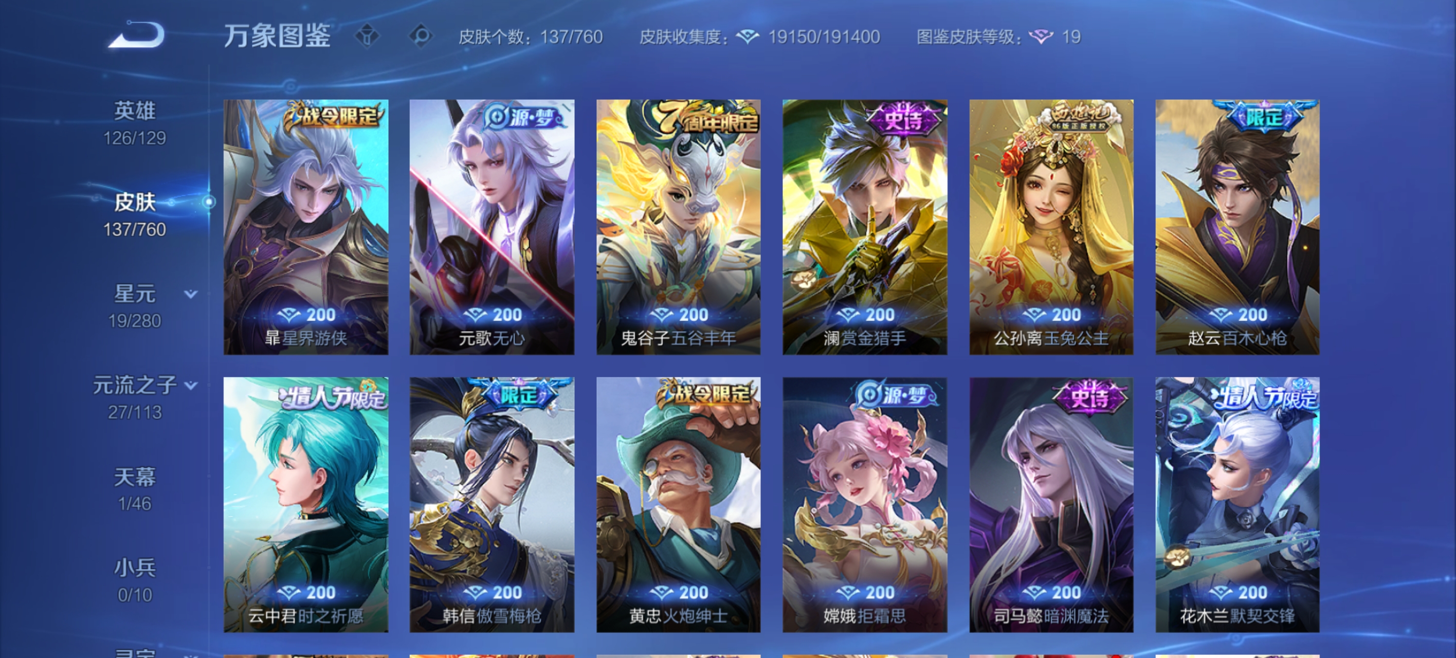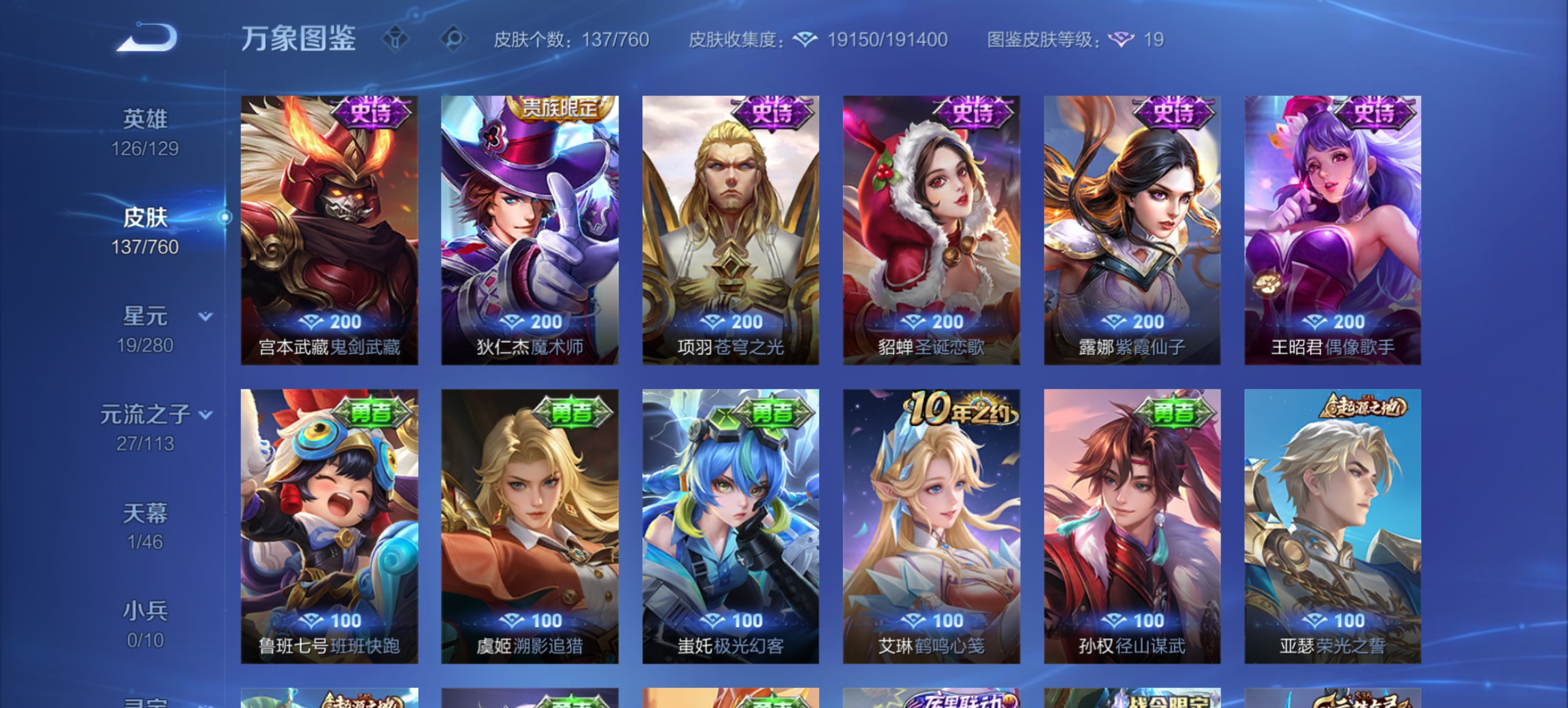 不想玩了露娜差一个fmvp皮肤,诸葛亮武陵,猴子零号赤焰,瑶传说限定