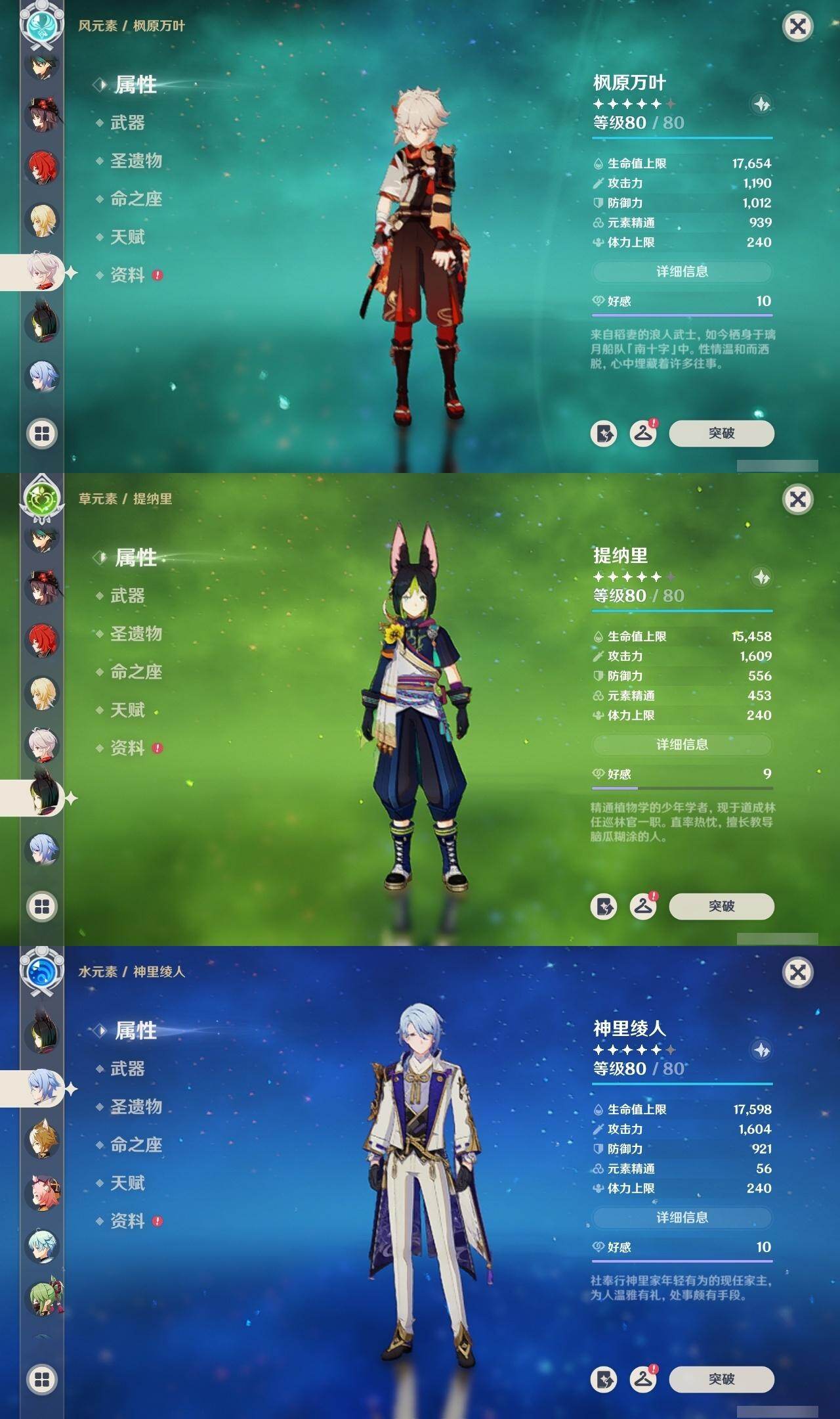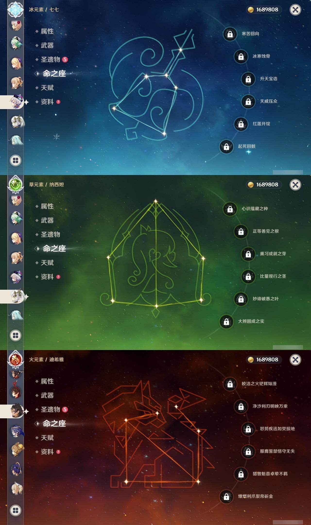 0命阿蕾奇诺,0命娜维娅,0命迪希雅,0命纳西妲,0命妮露,0命提纳里,0命神里绫人,0命荒泷一斗,0命枫原万叶,0命神里绫华,0命钟离,0命胡桃,0命魈,0命可莉,0命刻晴,0命七七,3命琴,0命莫娜,1命迪卢克,0命梦见月瑞希,精1飞雷之弦振,精1雾切之回光,精1和璞鸢,精1天空之脊,精1阿莫斯之弓,精1狼的末路