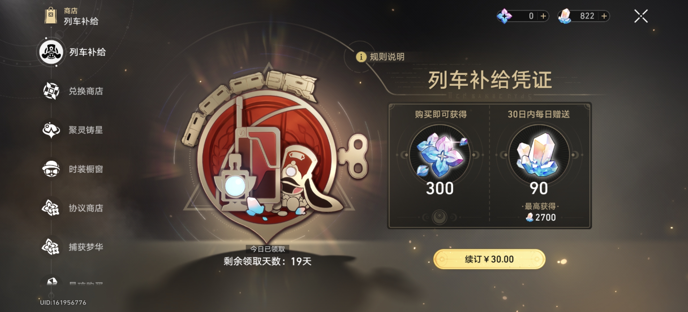 还有三十天月卡,赞了快一百抽了
