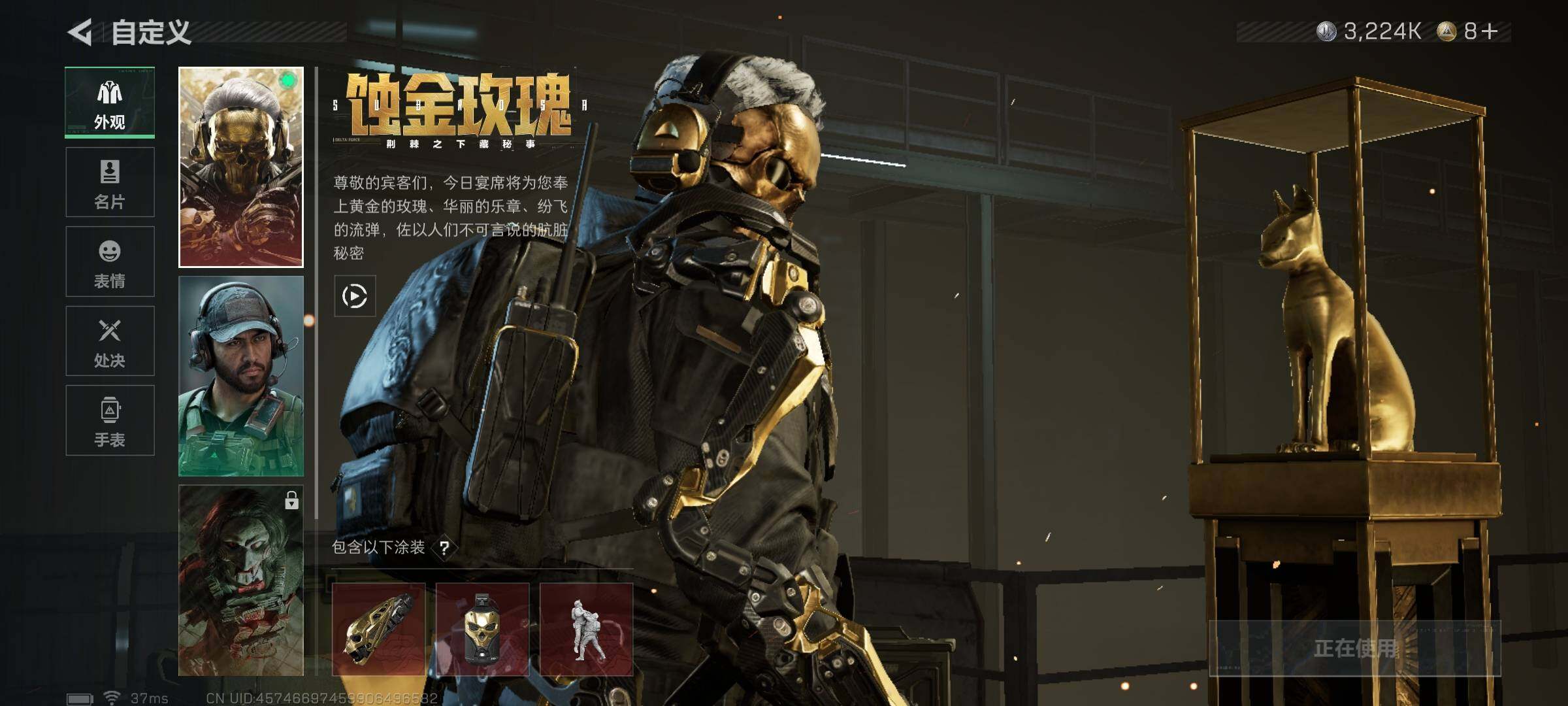 【SJZG3332】总资产(M):103M/哈夫币(K):3224K/哈夫币(K):3224K/传说枪皮数:5/全面战场等级:15_段位:列兵/烽火地带等级:60_段位:黑鹰/红狼-蚀金玫瑰/露娜-金牌射手/近战-怜悯/近战-影锋/近战-信条/近战-黑鹰/M7战斗步枪-棱镜攻势S2/M4A1突击步枪-蚀金玫瑰/SG552突击步枪-运动员/P90冲锋枪-信条/SR-25射手步枪-信条/PTR-32突击步枪-碎冰行动/M7战斗步枪-百步穿杨/G3战斗步枪-流沙送葬/AS Val突击步枪-百步穿杨/M