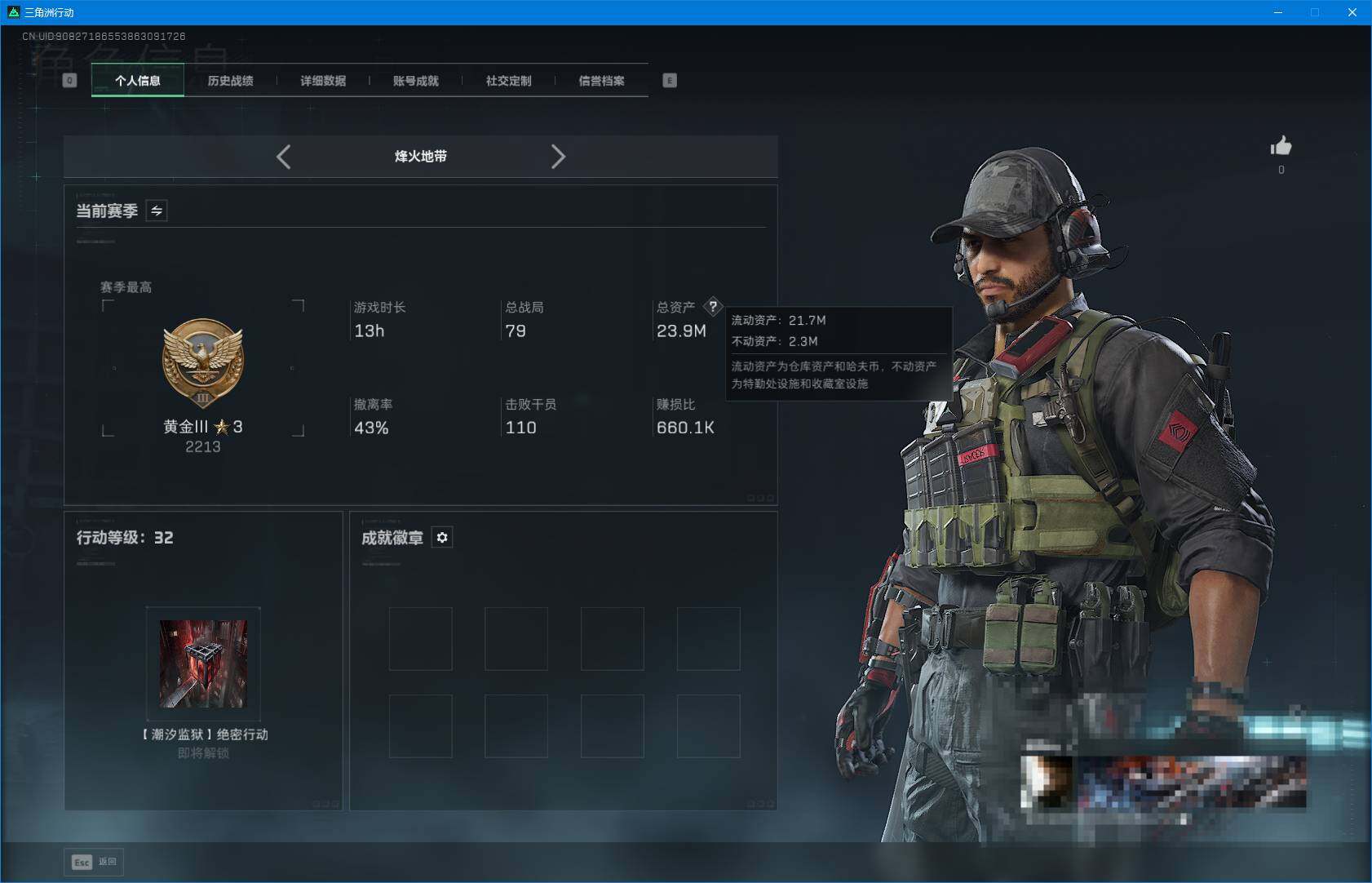 【SJ7281】总资产(M):23M/哈夫币(K):12173K/哈夫币(K):12173K/传说枪皮数:2/全面战场等级:17_段位:列兵/烽火地带等级:32_段位:黄金/近战-信条/近战-黑鹰/P90冲锋枪-信条/SR-25射手步枪-信条/腾龙突击步枪-猎鳄行动/M14射手步枪-工业狂潮/M700狙击步枪-竞技风/AKM突击步枪-肃杀/M7战斗步枪-前沿科技/MP5冲锋枪-弄臣/Vector冲锋枪-先锋/勇士冲锋枪-冰天雪地/M1014霰弹枪-幻影结构/Mini-14射手步枪-荣耀列队/SK