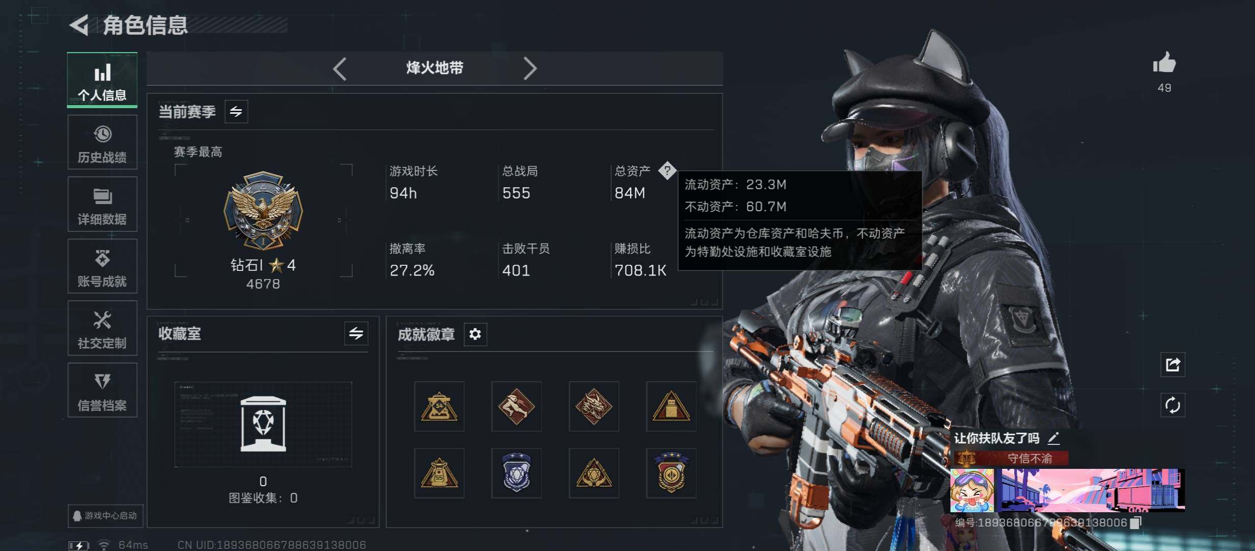 【裸黑天际线.资产83M】【Q区三端互通】【无二次协助处理】YXz7594-特勤处:仓库9级/靶场7级/训练中心7级-总资产83m-哈夫币5w-烽火等级:60级