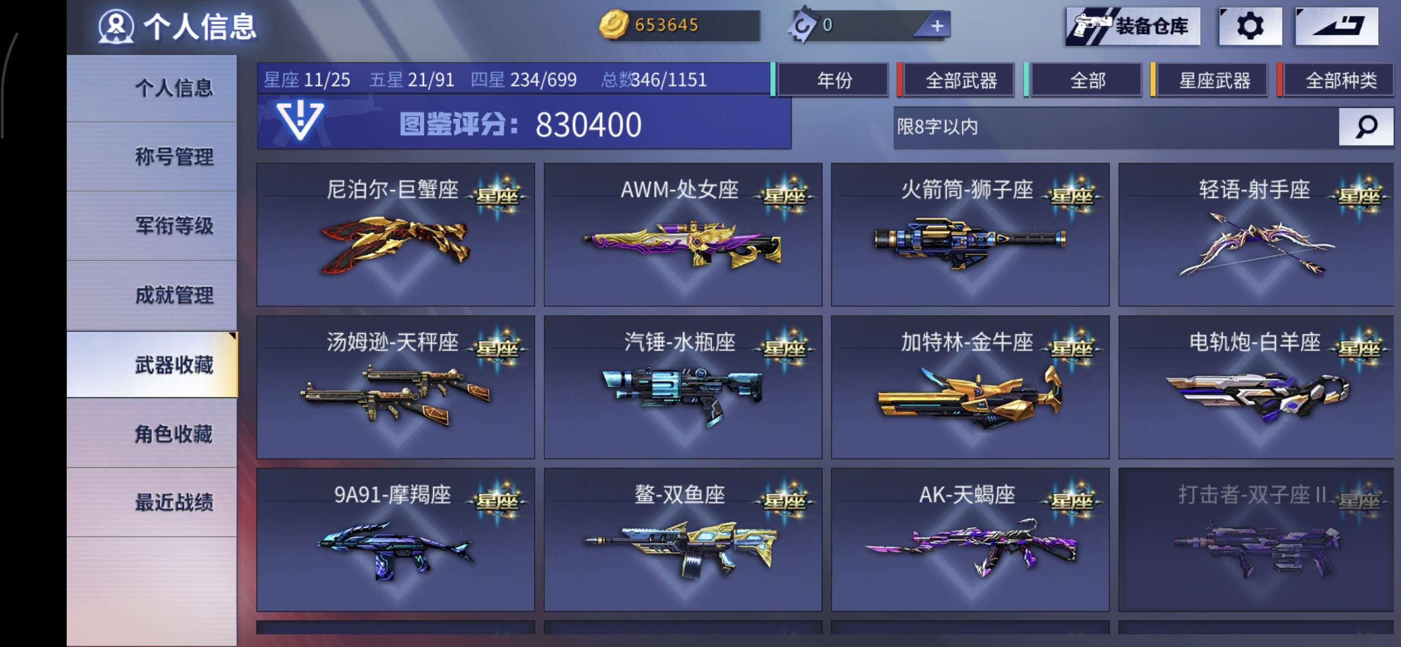 星座武器数量:
