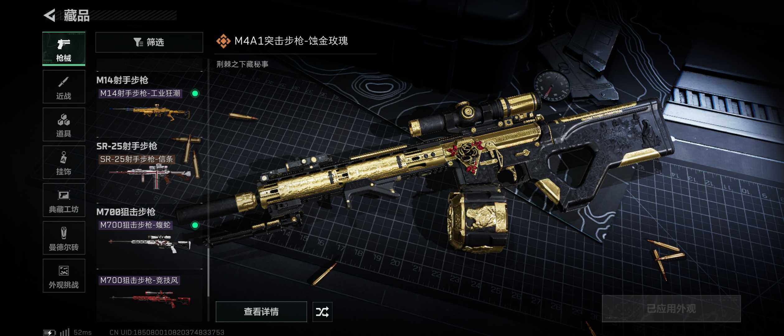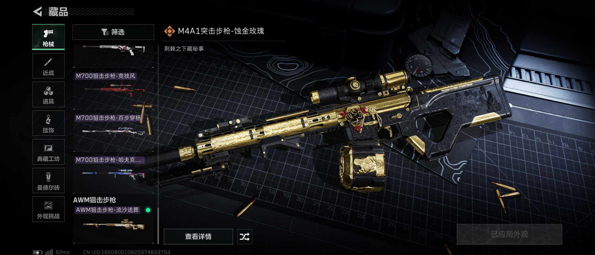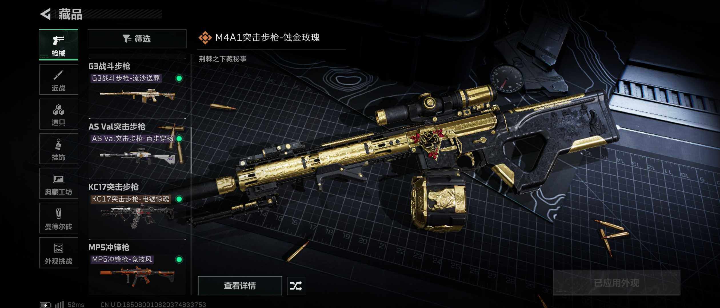 【传说外观】:M4A1突击步枪-蚀金玫瑰,SG552突击步枪-运动员,SCAR-H战斗步枪-启航,KC17突击步枪-电锯惊魂,P90冲锋枪-信条,SR-25射手步枪-信条