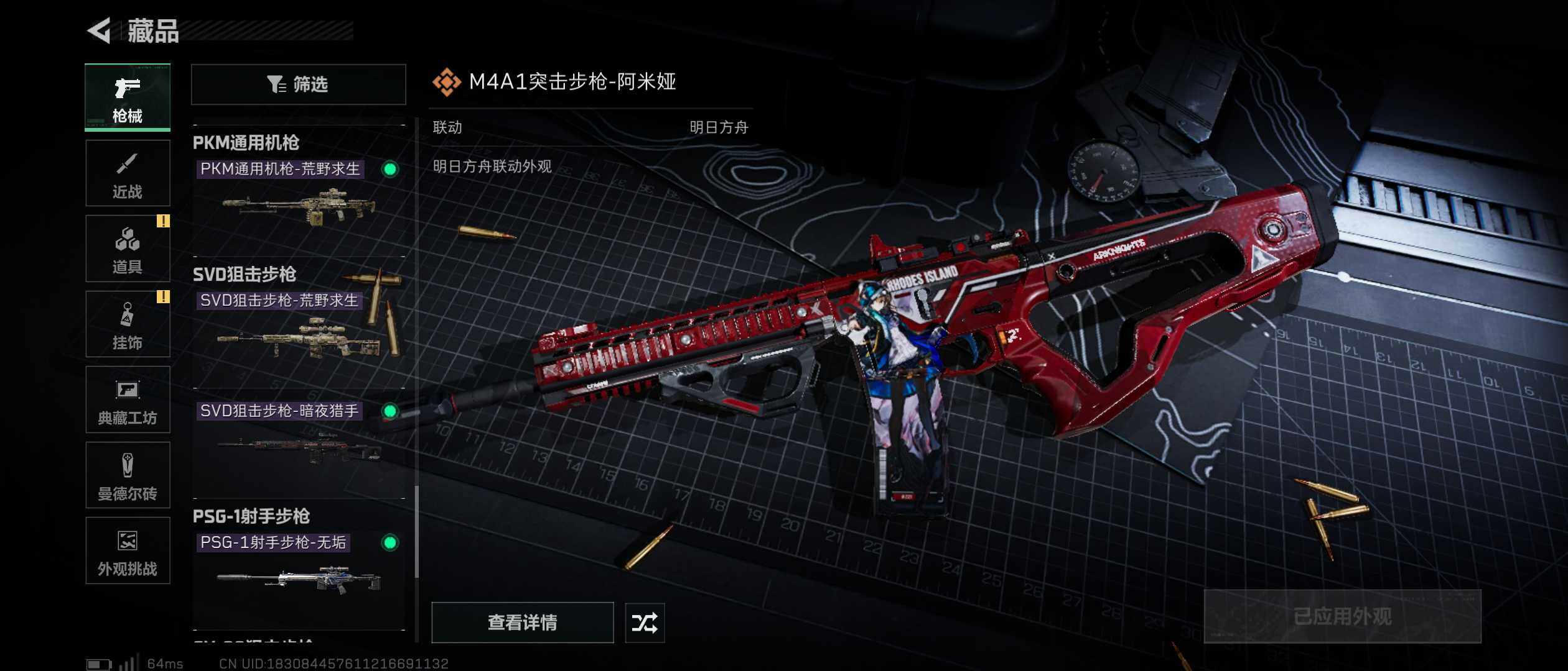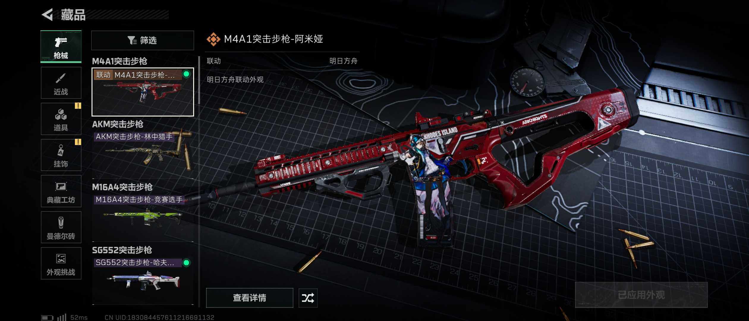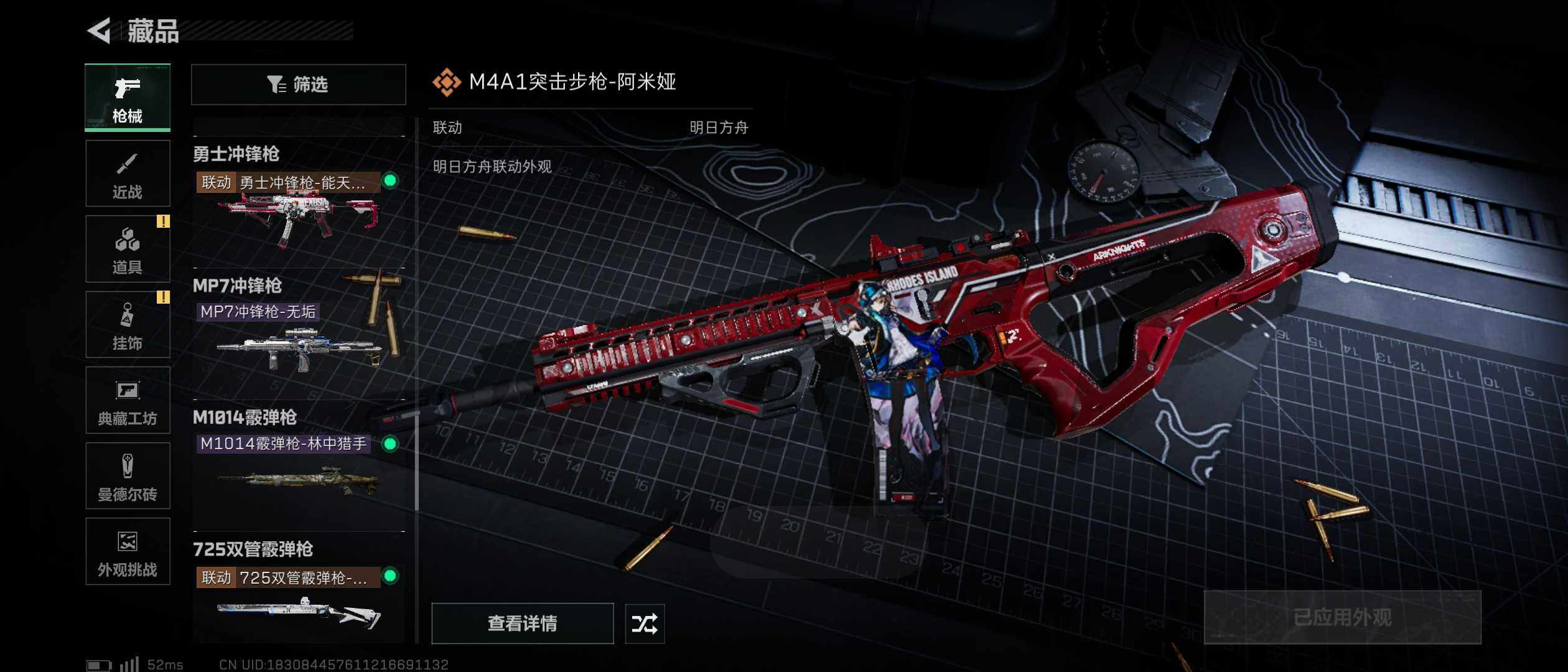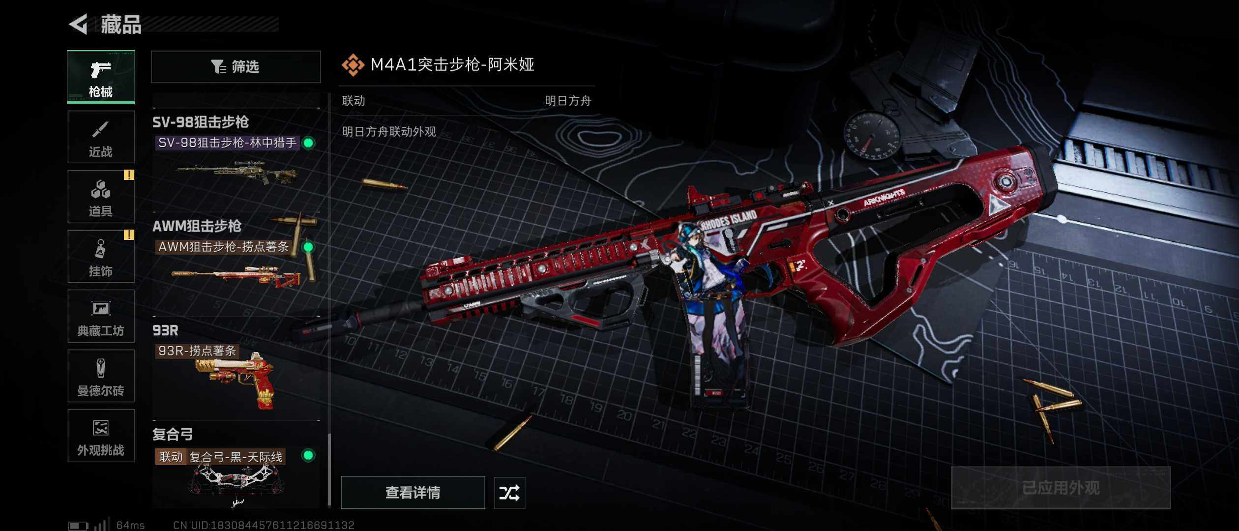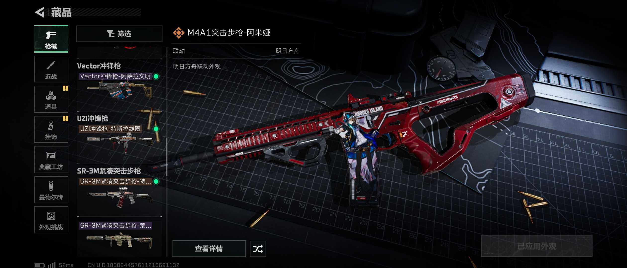 【传说外观】:M4A1突击步枪-阿米娅,AK-12突击步枪-特斯拉线圈,SCAR-H战斗步枪-启航,CAR-15突击步枪-阿米娅,腾龙突击步枪-捞点薯条,UZI冲锋枪-特斯拉线圈,SR-3M紧凑突击步枪-特斯拉线圈,勇士冲锋枪-能天使-午夜邮差