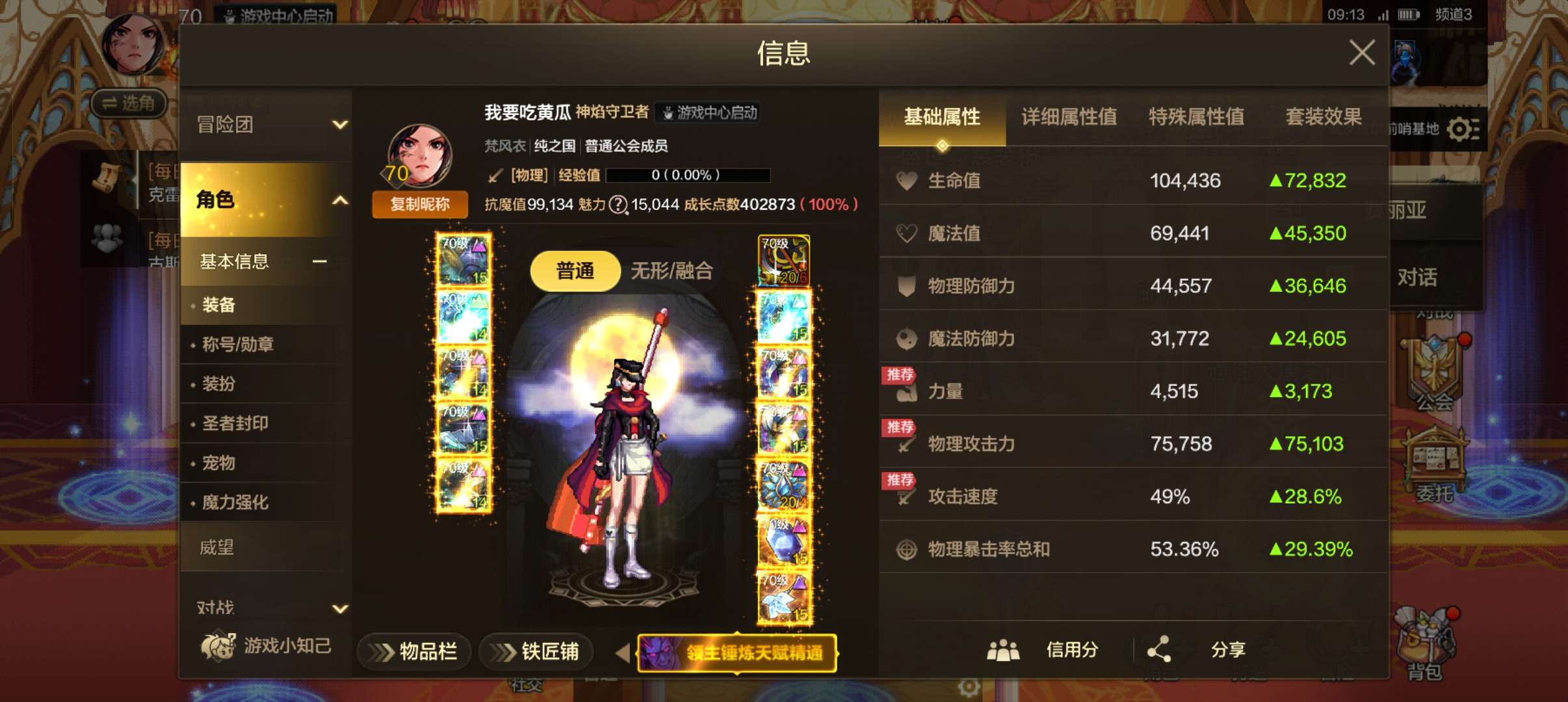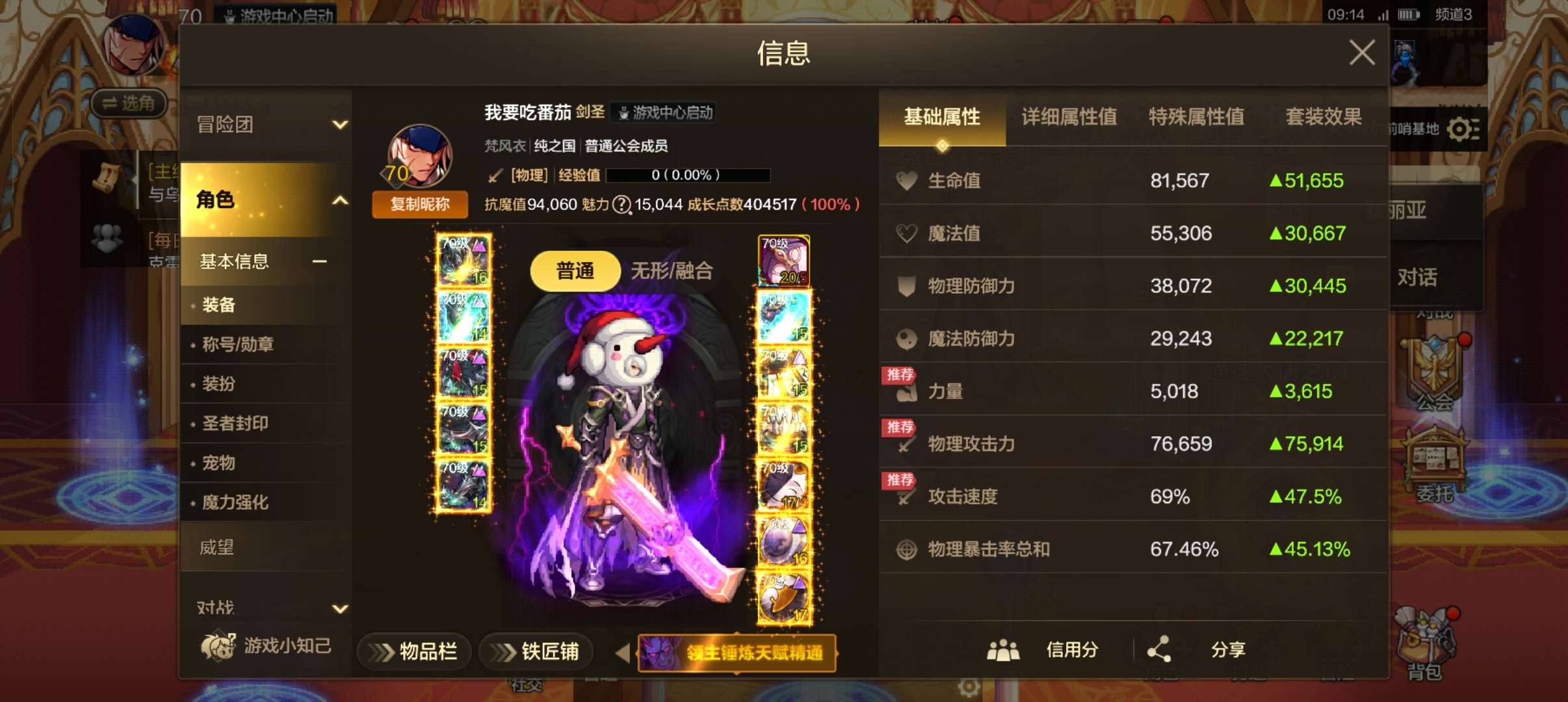 大号全身20冰323。3个9.9副c。8个9万多小号。基本武器20加本甲毕业。可小刀