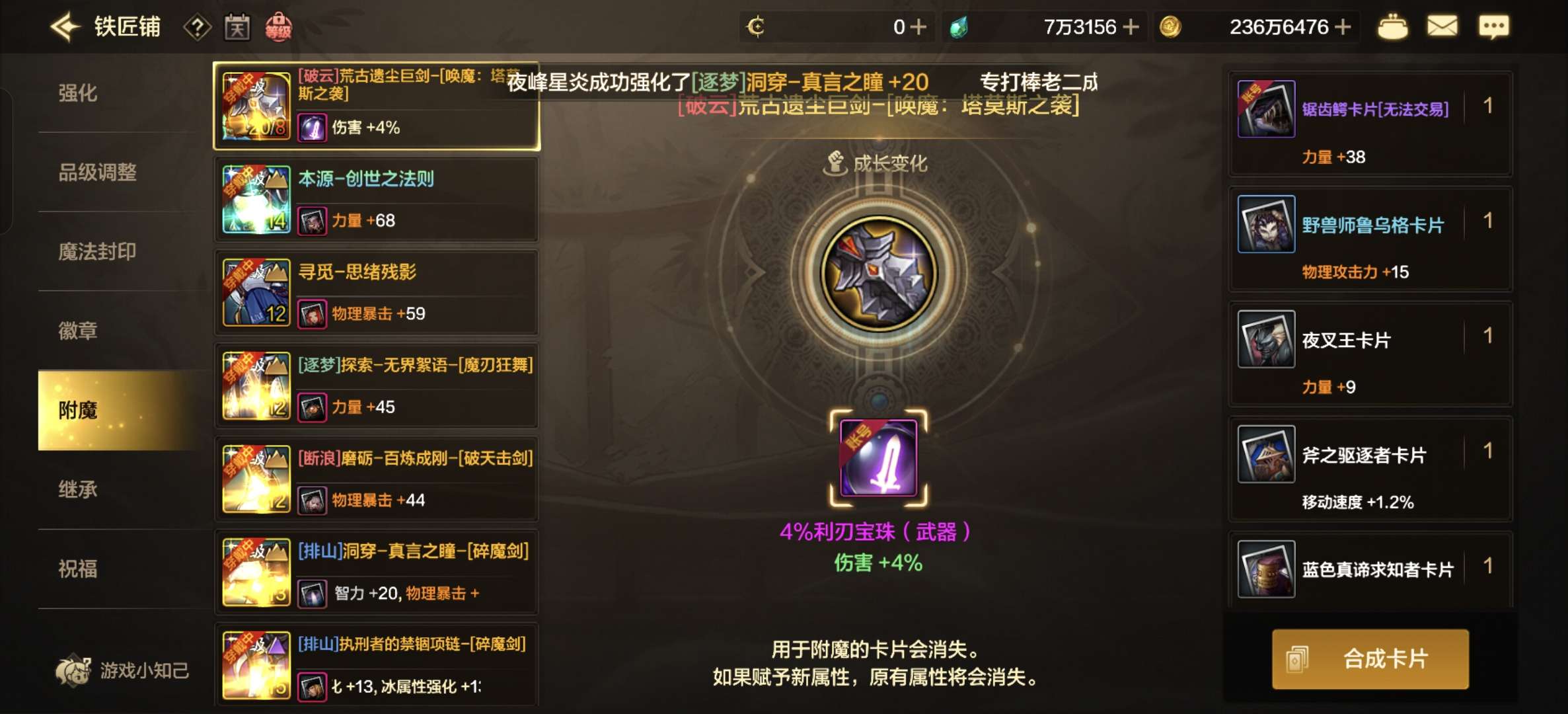 荒古巨剑强化20,增幅8