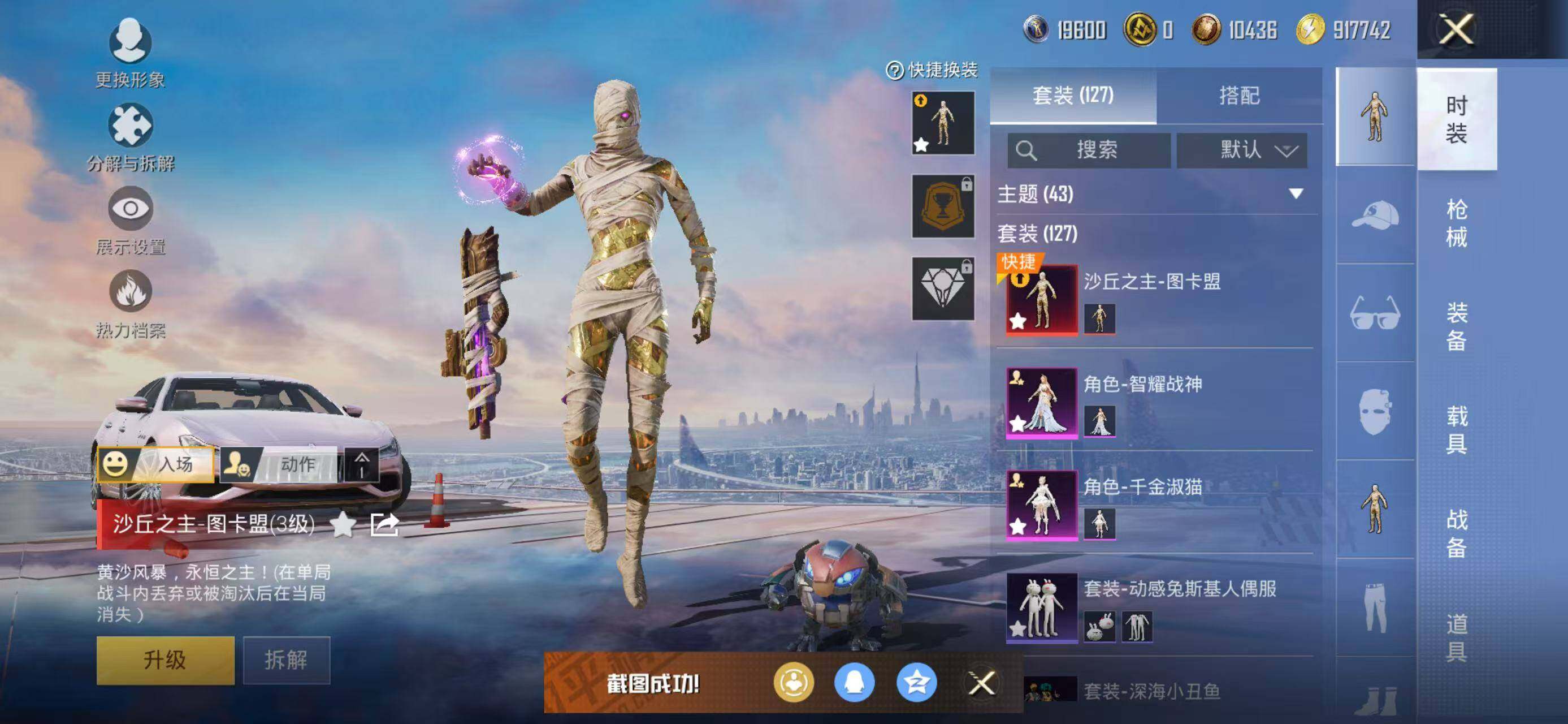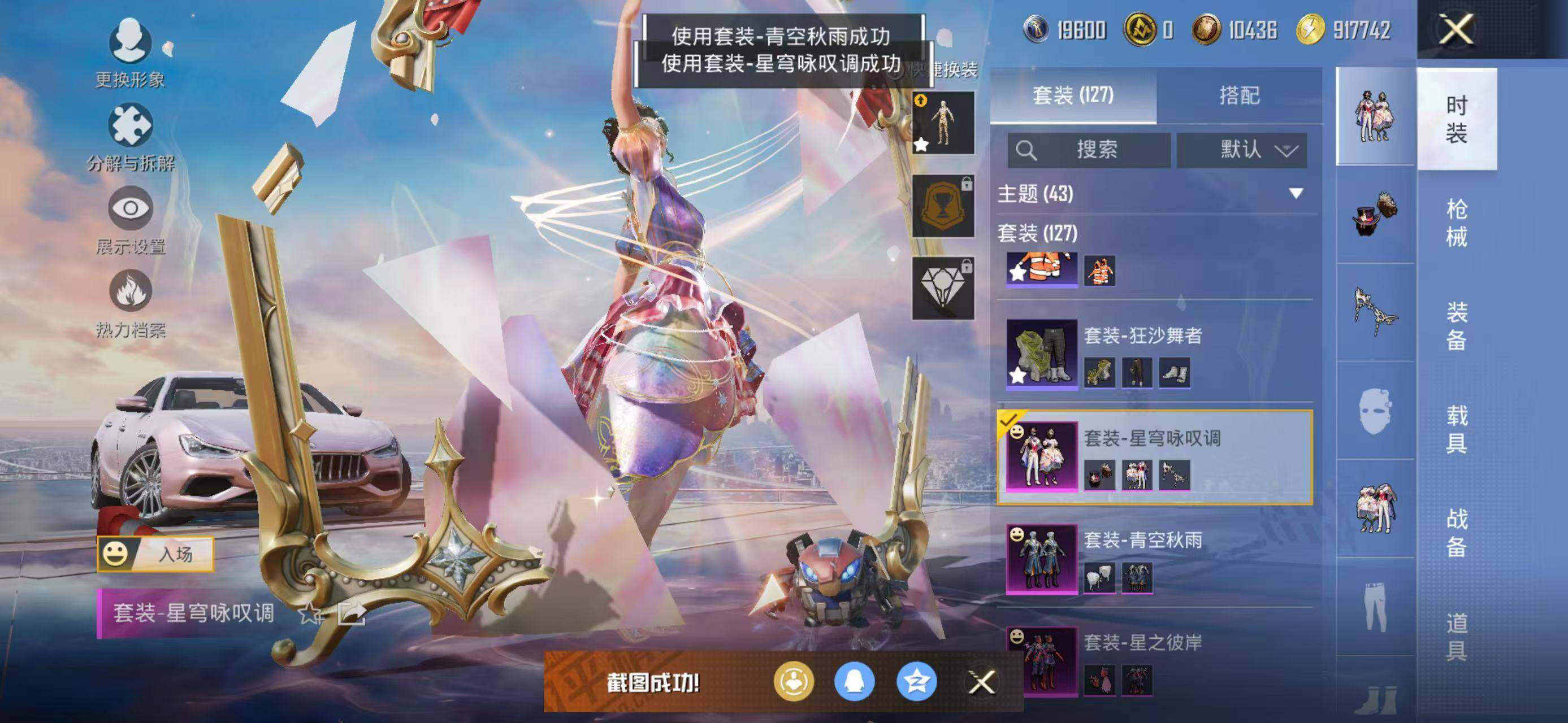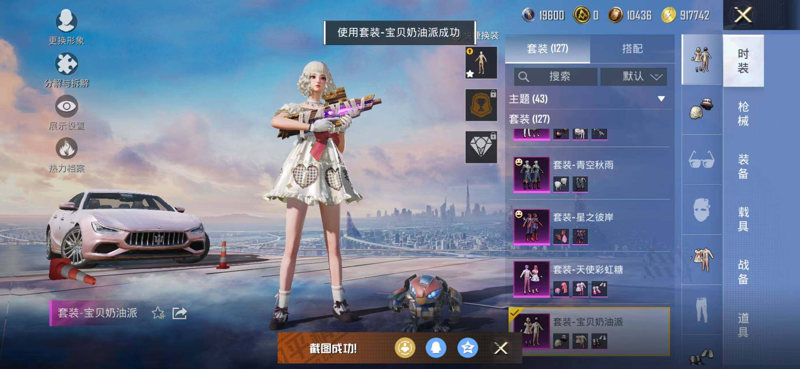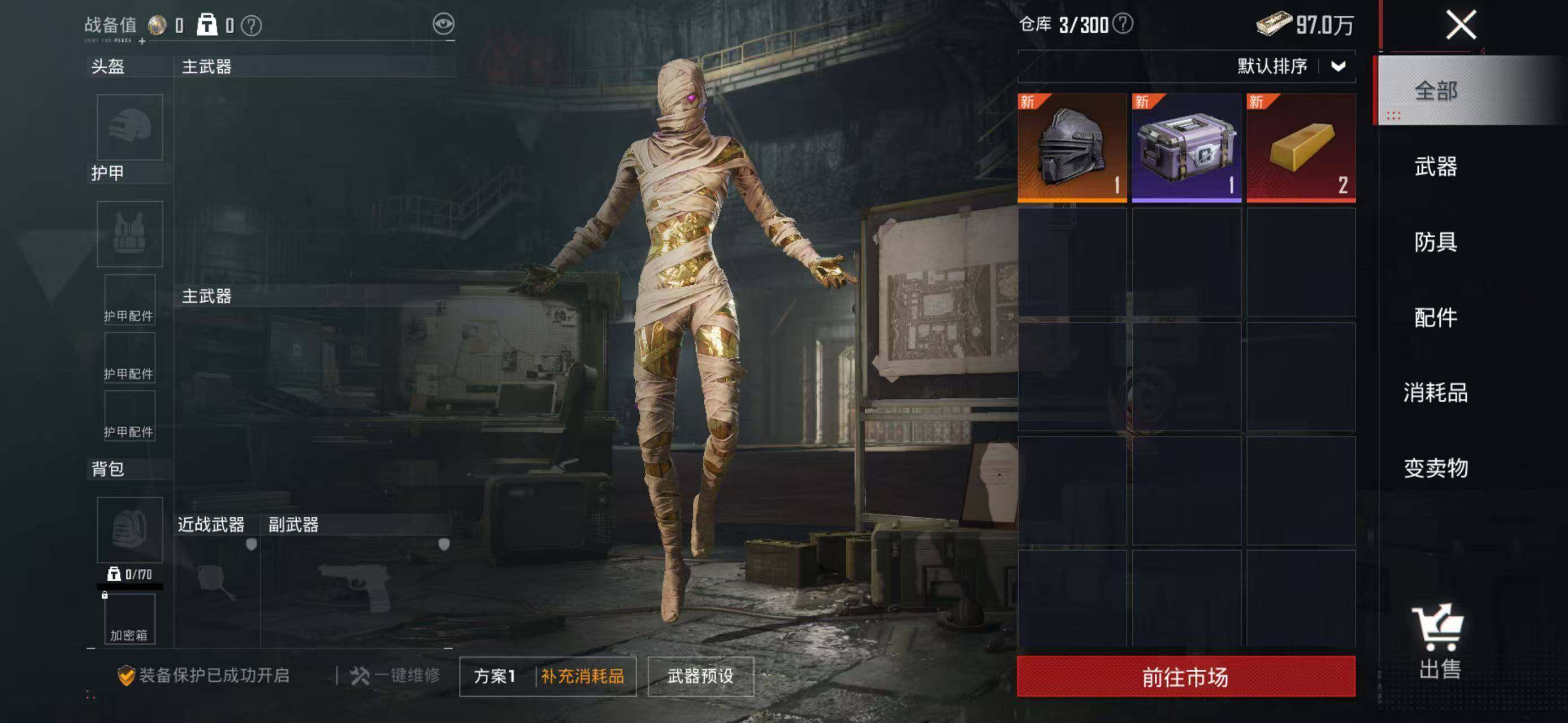 127套装/枪械14/装备249/载具1/战备122/王牌印记9/热力值68815/五级AKM-梦之光华/一级M16A4-垂柳戏鸭/五级SCAR-L-梦幻火箭/三级M416-五爪金龙/五级M416-心之恋语/三级M416-墨龙九天/五级GROZA-镜光银凌/五级UMP45-相思残雪/三级P90-沙丘之主/五级Kar98K-巳巳如意/五级Mk14-精灵梦叶罗丽/五级AMR-智耀战神/五级DP-28