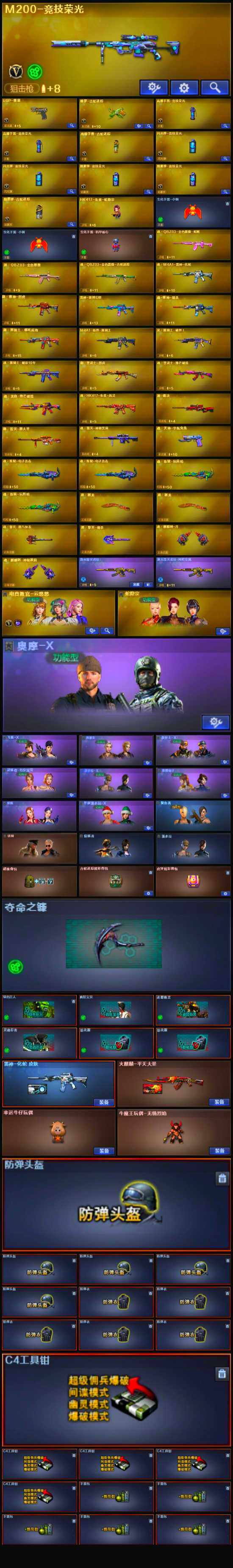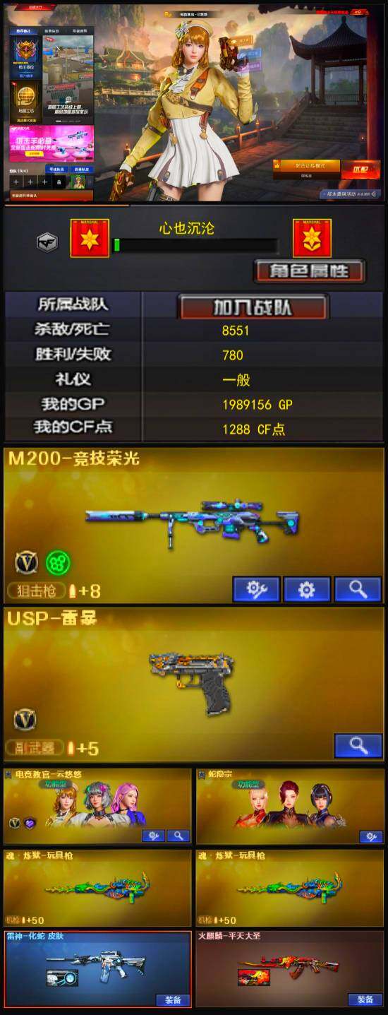 【英雄级武器】:M200-竞技荣光,高爆手雷-竞技荣光*2,烟雾弹-竞技荣光*2,闪光弹-竞技荣光*2,USP-雷暴,修罗-古蛇迷踪