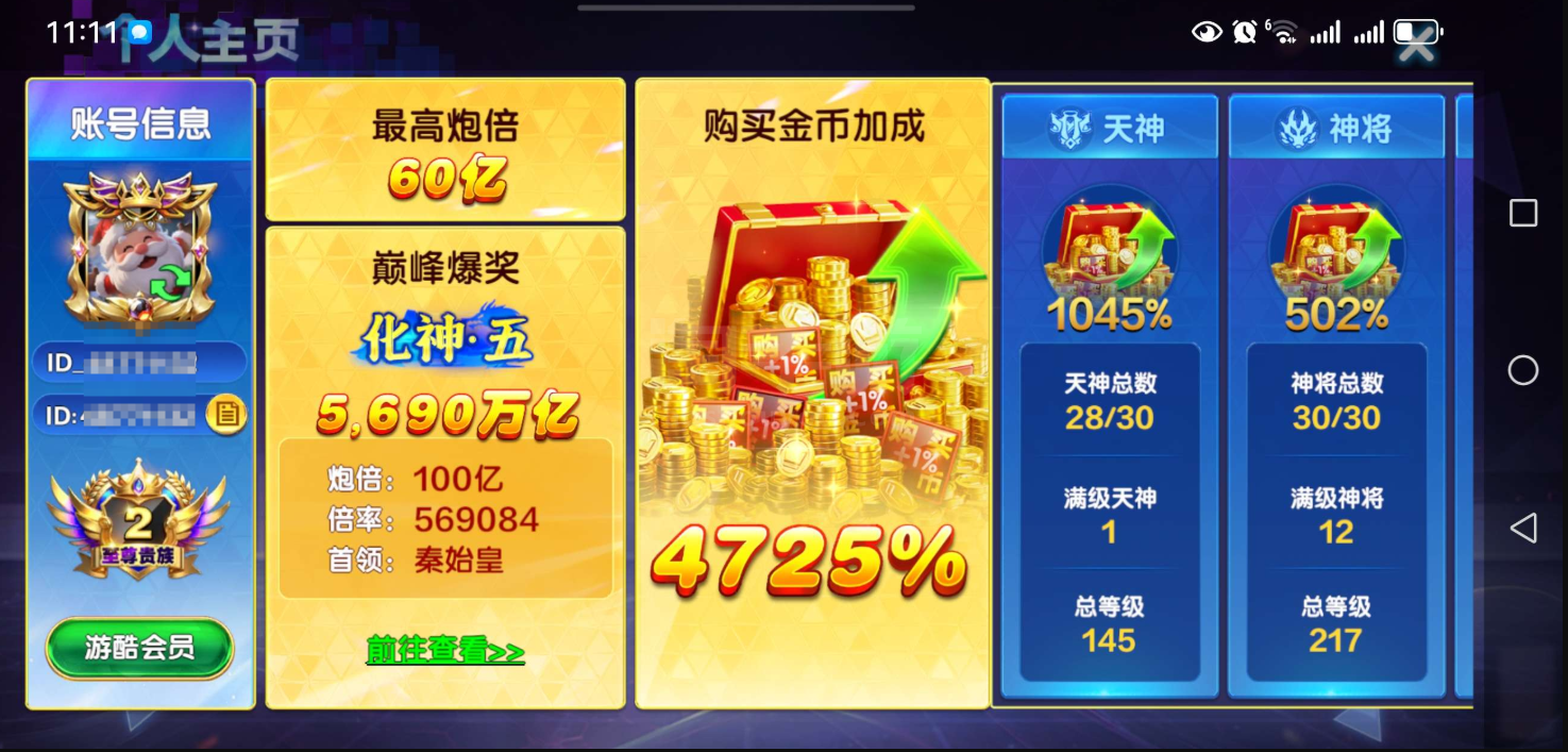不带授权 不想玩了,至尊2,加成4725,最新天神那些都有,还未开通游酷会员,买到就是赚到!月卡还有两个多月