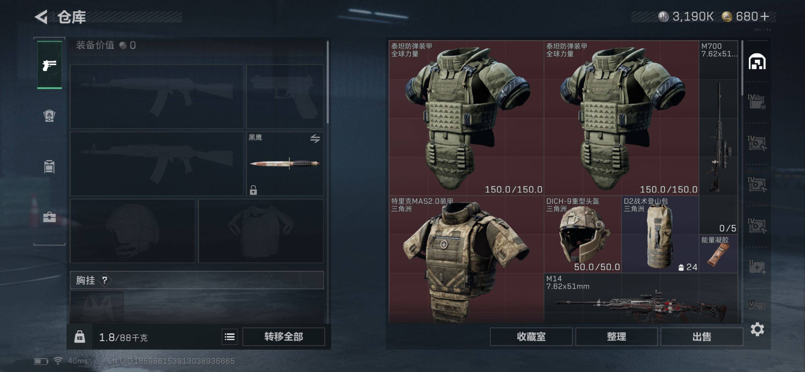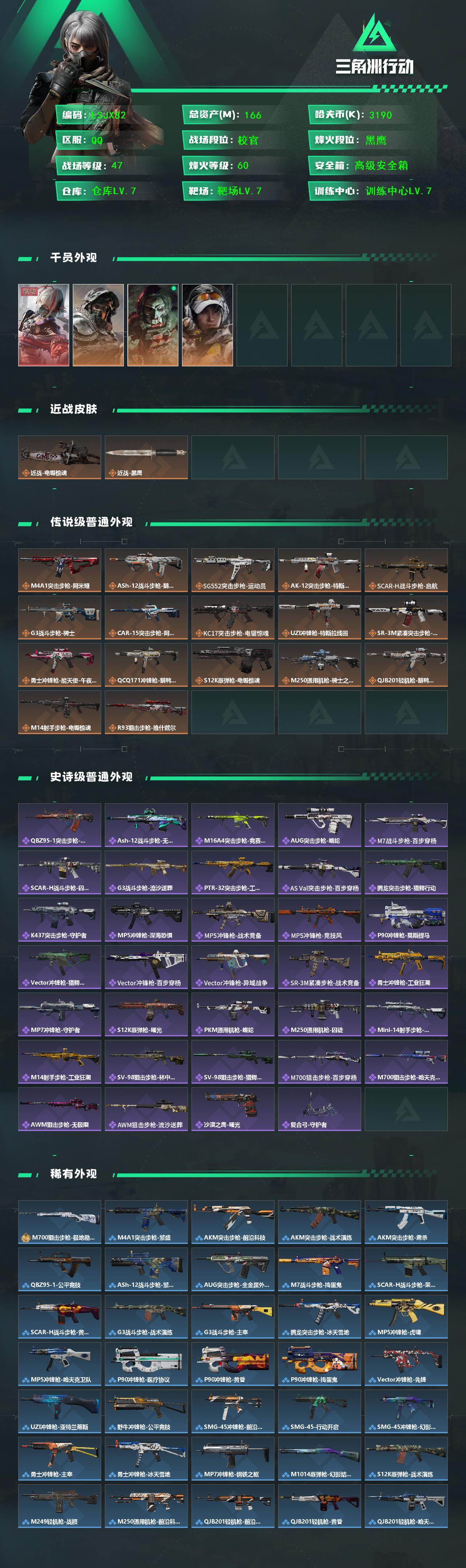 【特价出售/店主推荐】166m总资产-3190k哈伏币-60烽火等级-黑鹰-47战场等级-校官