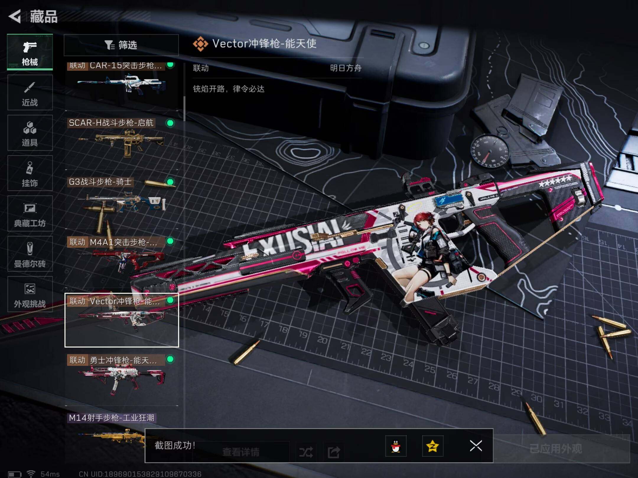 【传说外观】:M4A1突击步枪-阿米娅,ASh-12战斗步枪-鹅鸭杀,SG552突击步枪-运动员,SCAR-H战斗步枪-启航,G3战斗步枪-骑士,CAR-15突击步枪-阿米娅,腾龙突击步枪-捞点薯条,