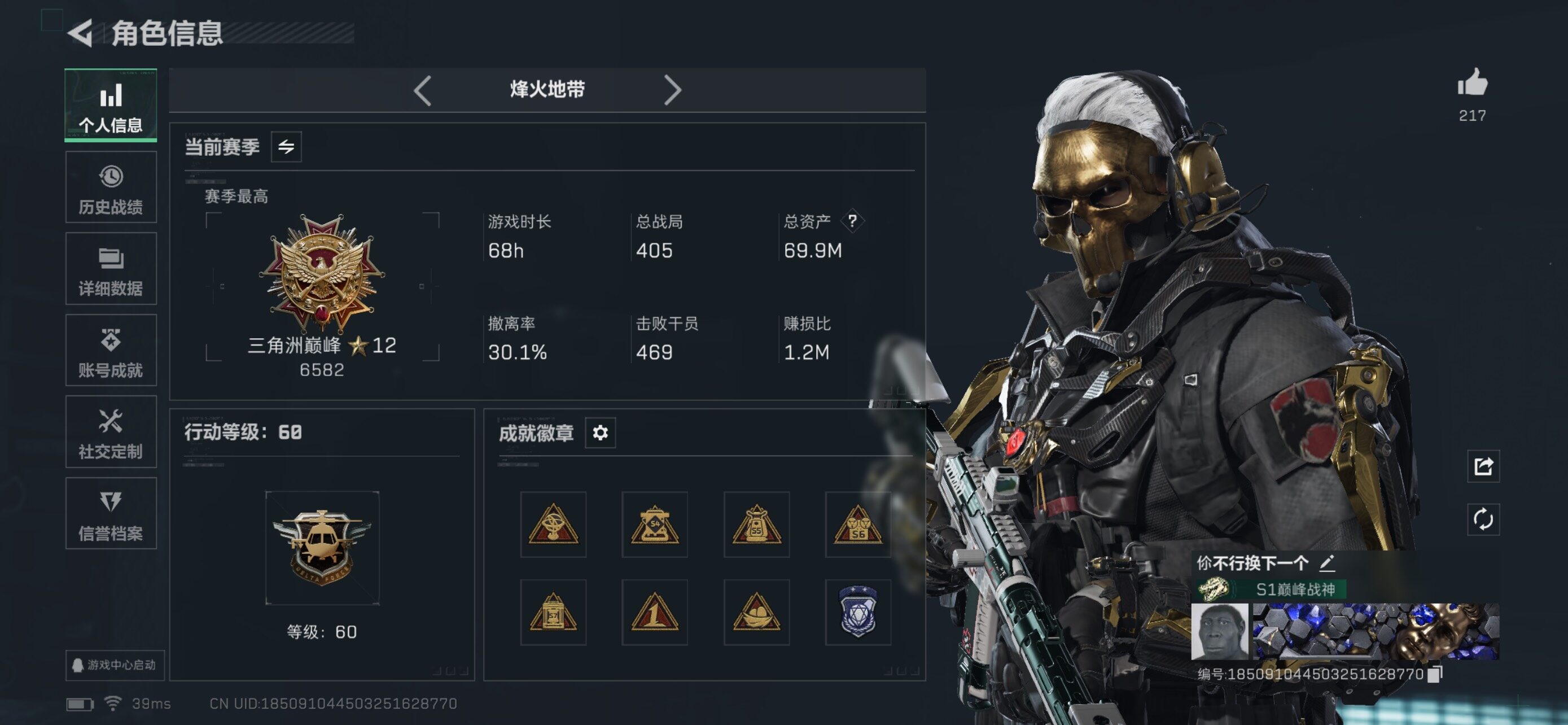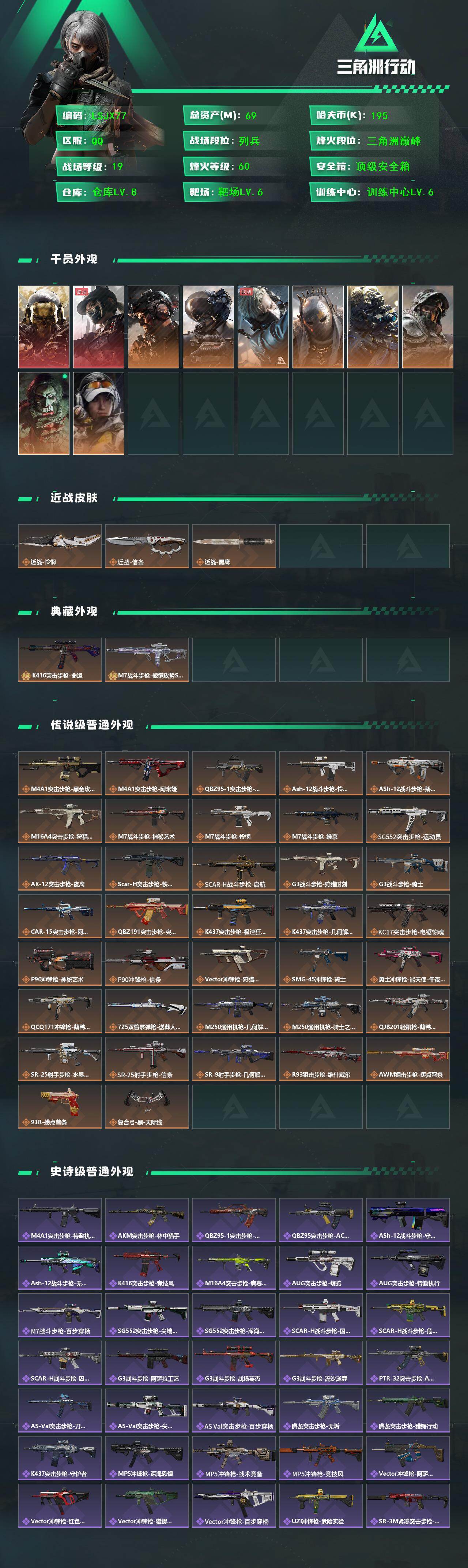 2典藏砖皮优品A 【特价出售/店主推荐】69m总资产-195k哈伏币-60烽火等级-三角洲巅峰-19战场等级-列兵