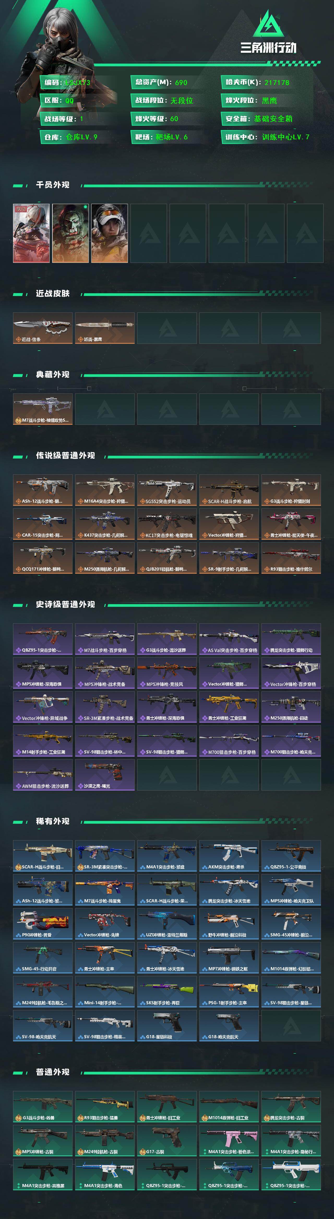 1典藏枪皮M7优品炫彩【特价出售/店主推荐】690m总资产-217178k哈伏币-60烽火等级-黑鹰-1战场等级-无军衔
