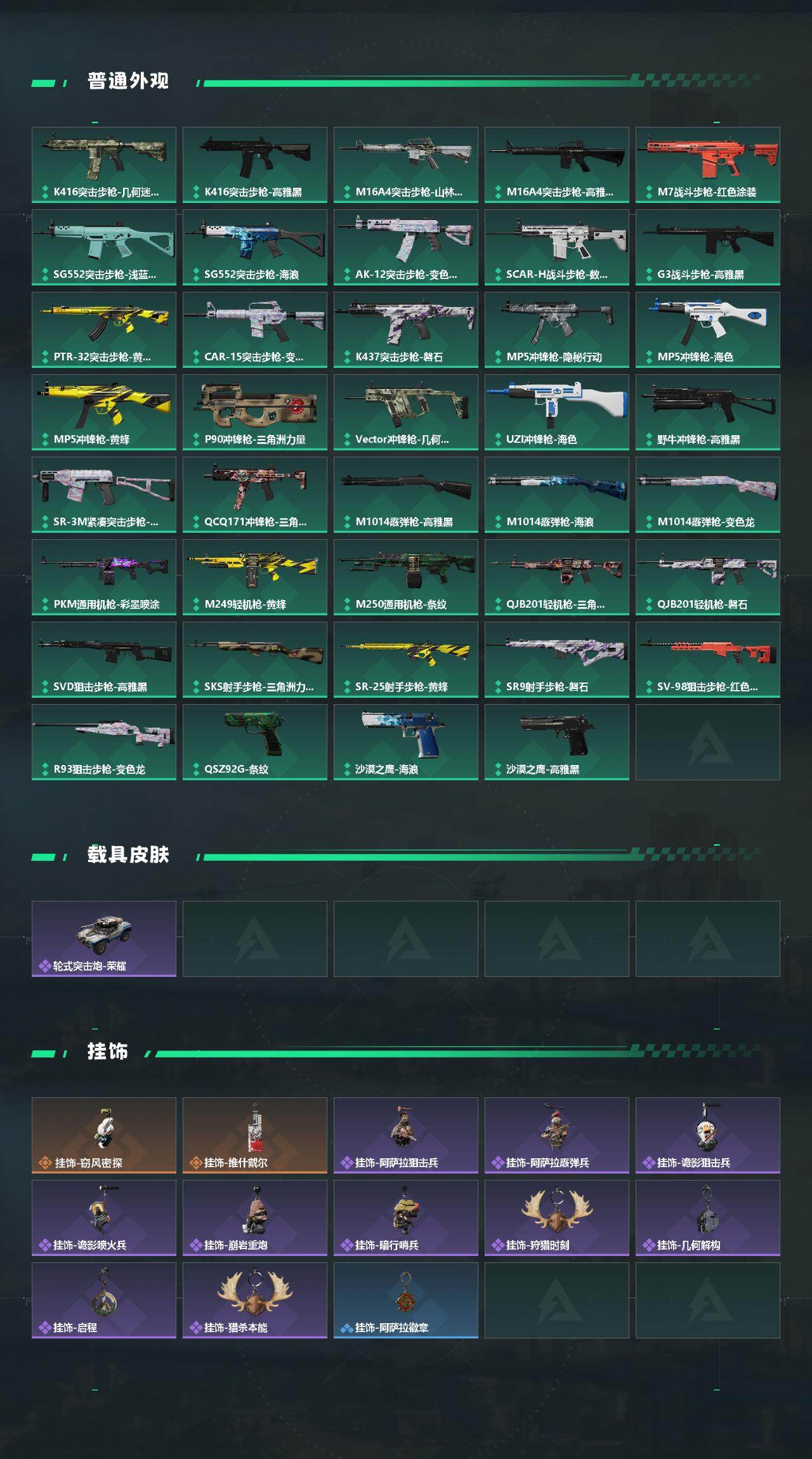 【传说外观】:ASh-12战斗步枪-鹅鸭杀,M16A4突击步枪-狩猎时刻,SG552突击步枪-运动员,SCAR-H战斗步枪-启航,G3