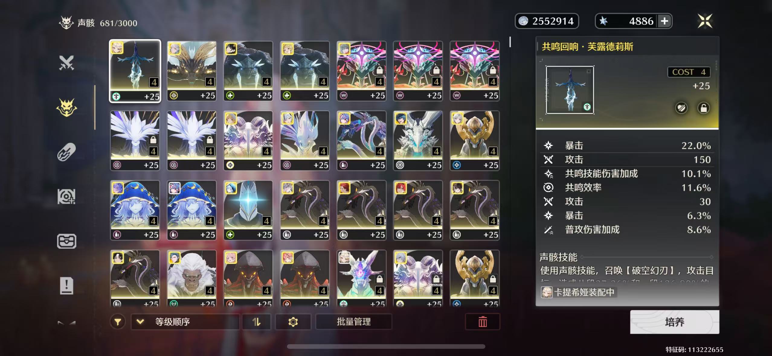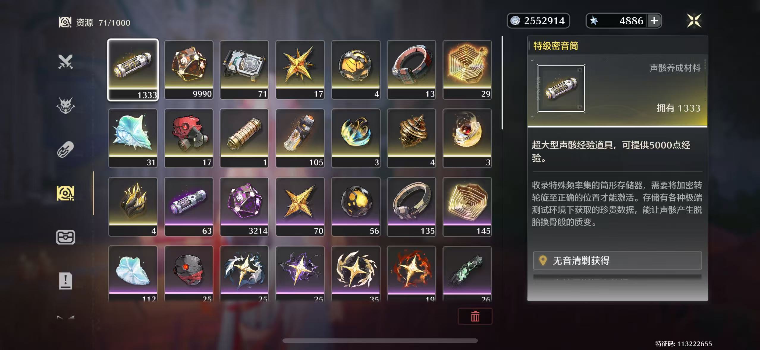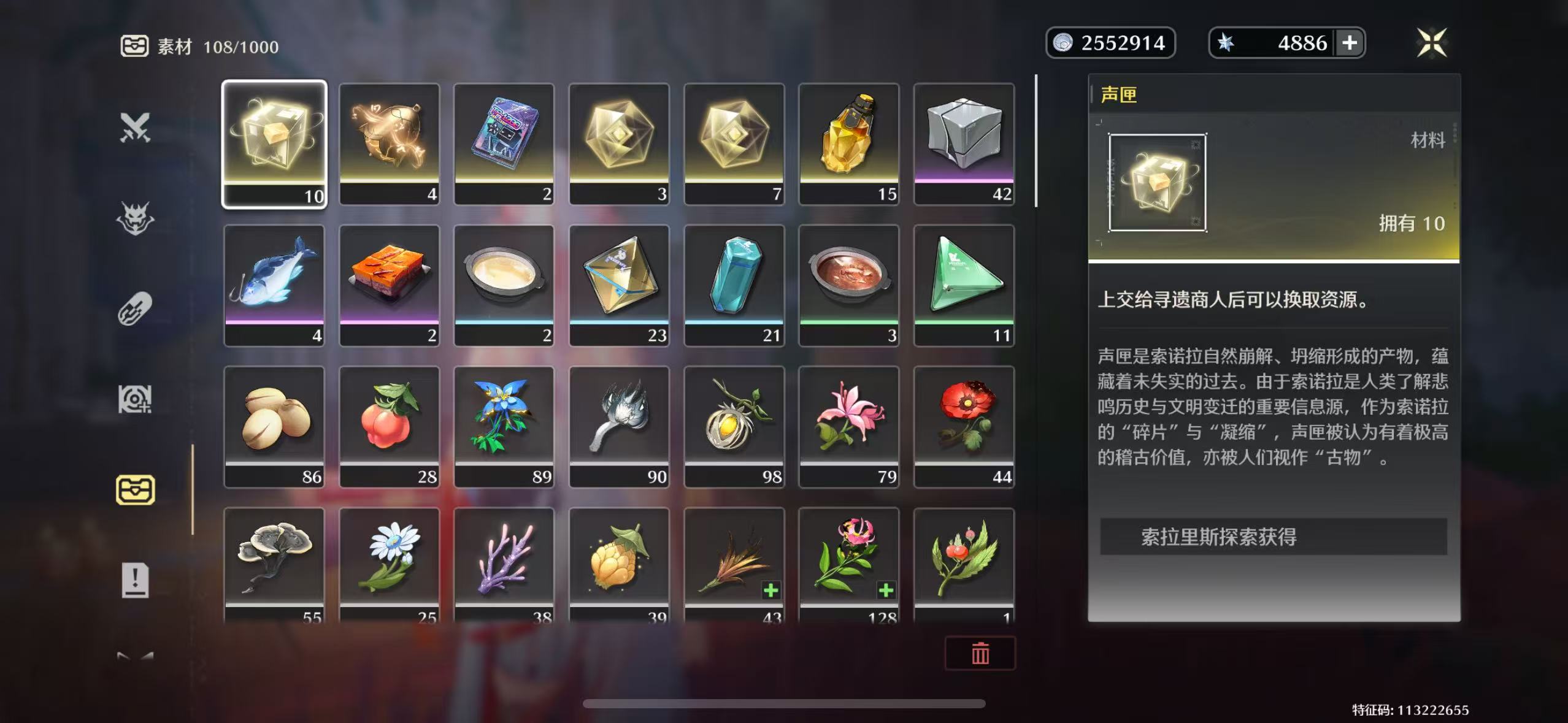 80级 共43黄 五星角色21个 五星武器12个 80联觉 8索拉 4886星声 6详情看图与描述