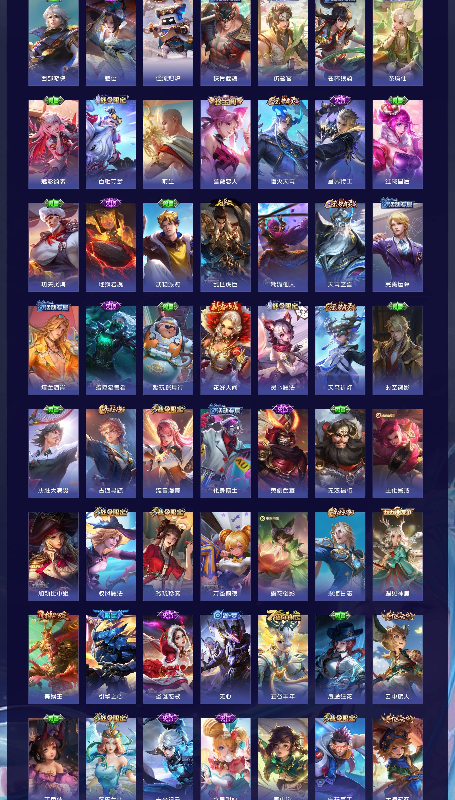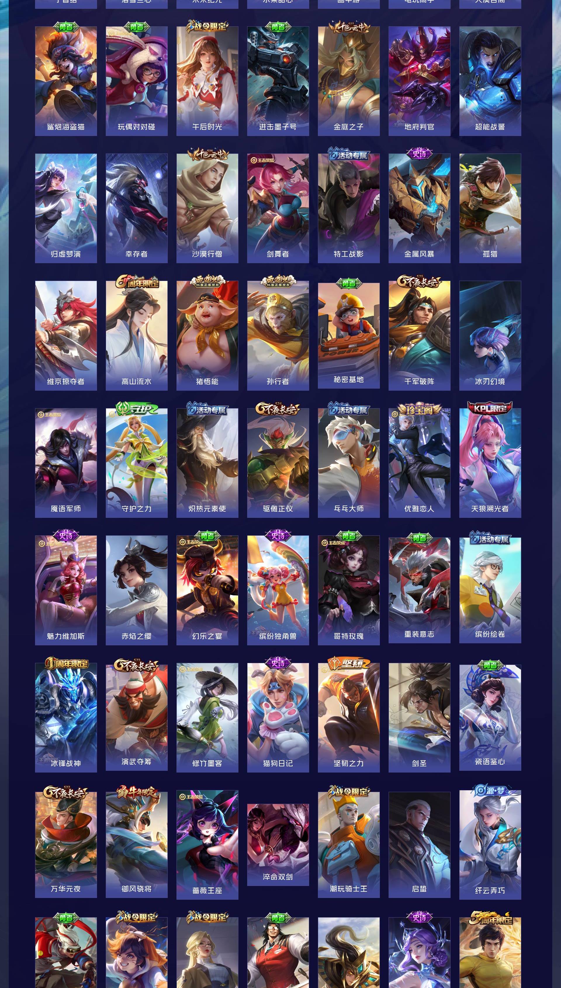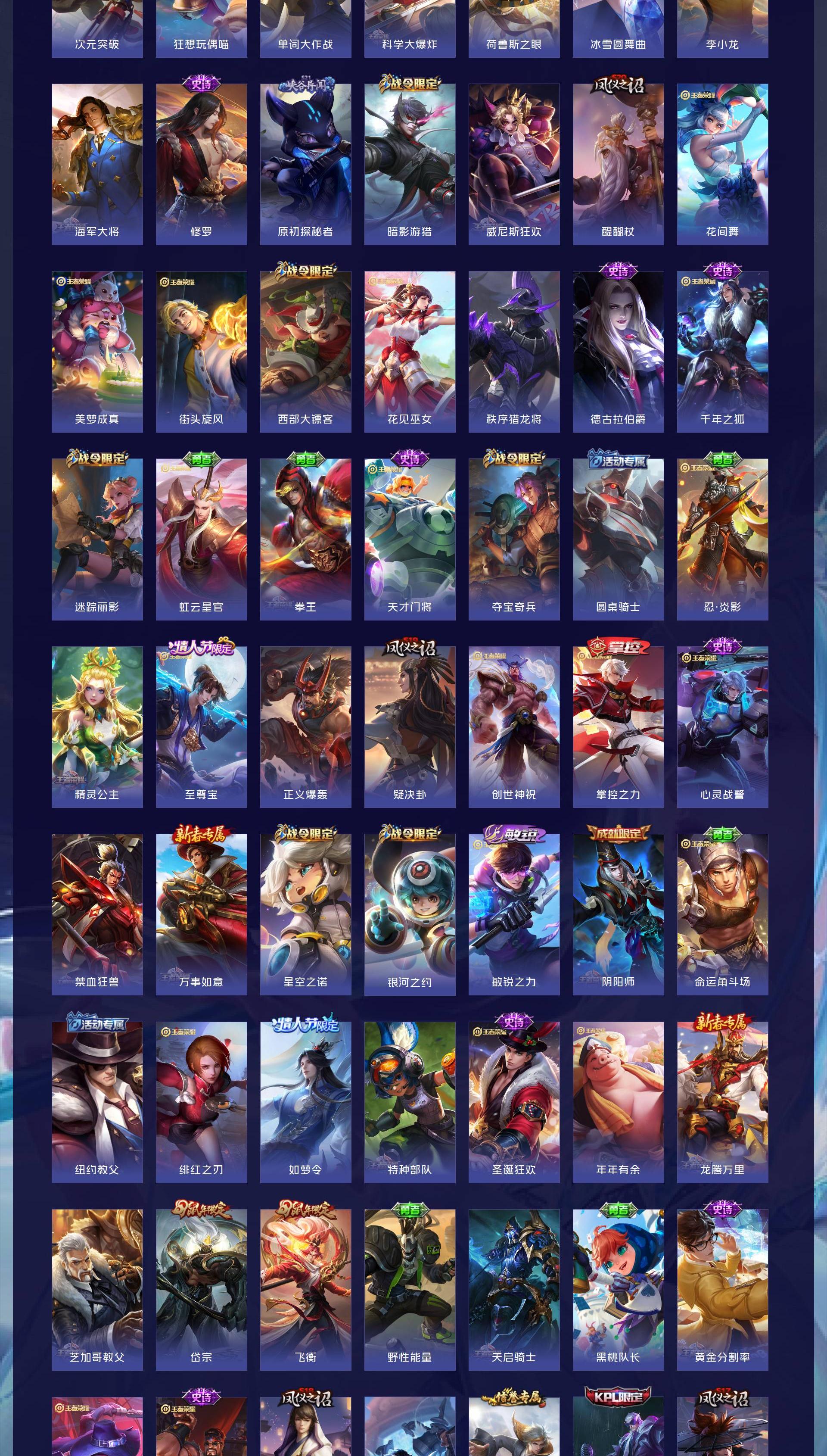 V8 皮肤265 英雄127 至尊星耀 荣耀典藏1 无双皮肤1 珍品传说1 传说17 其他皮肤251