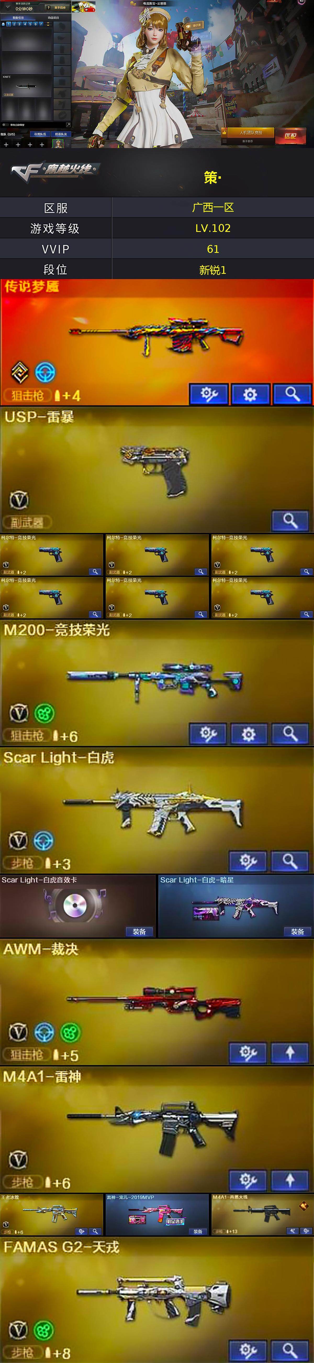 【热门武器】:传说梦魇,Scar Light-白虎,M200-竞技荣光,M4A1-黑骑士,毁灭-孙三炮,USP-雷暴
