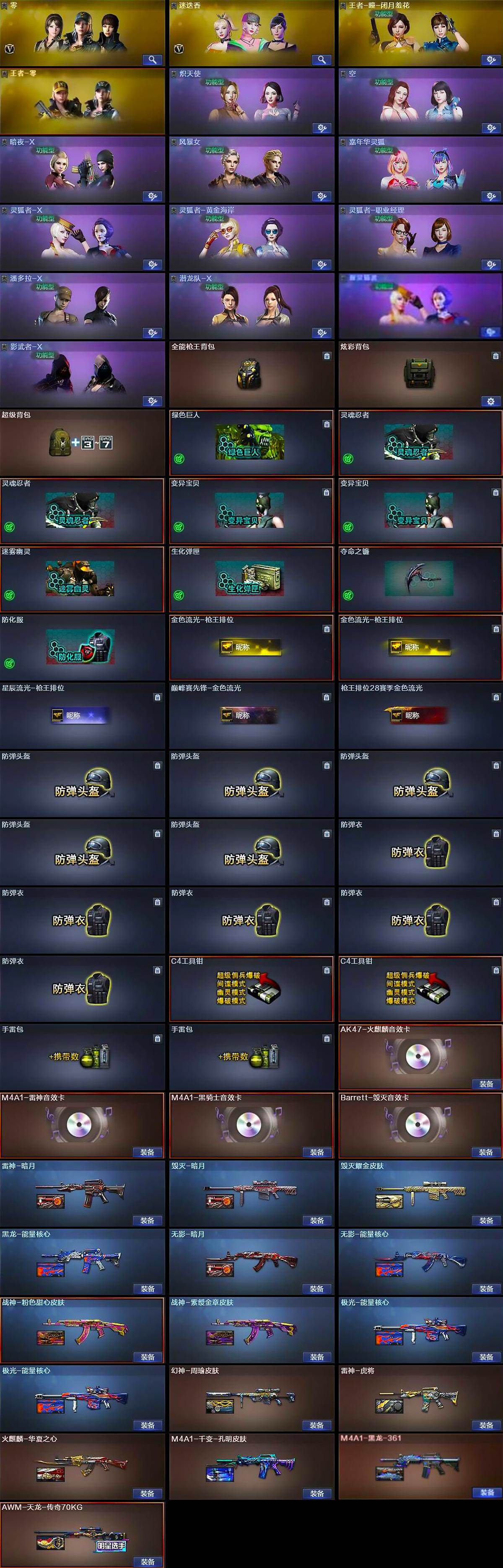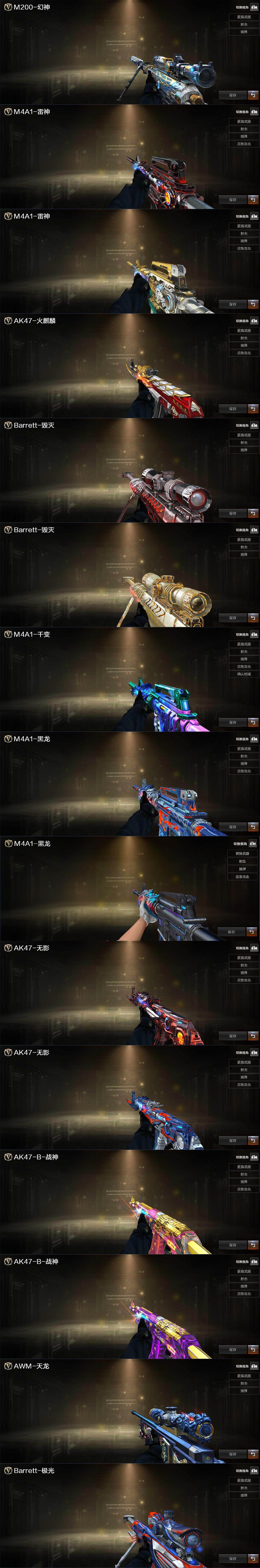 【热门武器】:传说圣灵,QBZ03-金色蔷薇,Scar Light-白虎,HK417-朱雀,M200-幻神,荣耀世冠-火麒麟,荣耀世冠-柯尔特,毒蜂,M4A1-黑骑士,汤姆逊-烈龙*6,RPK-盘龙*5,羊驼玩偶,COP-堕天神,沙鹰-修罗*2