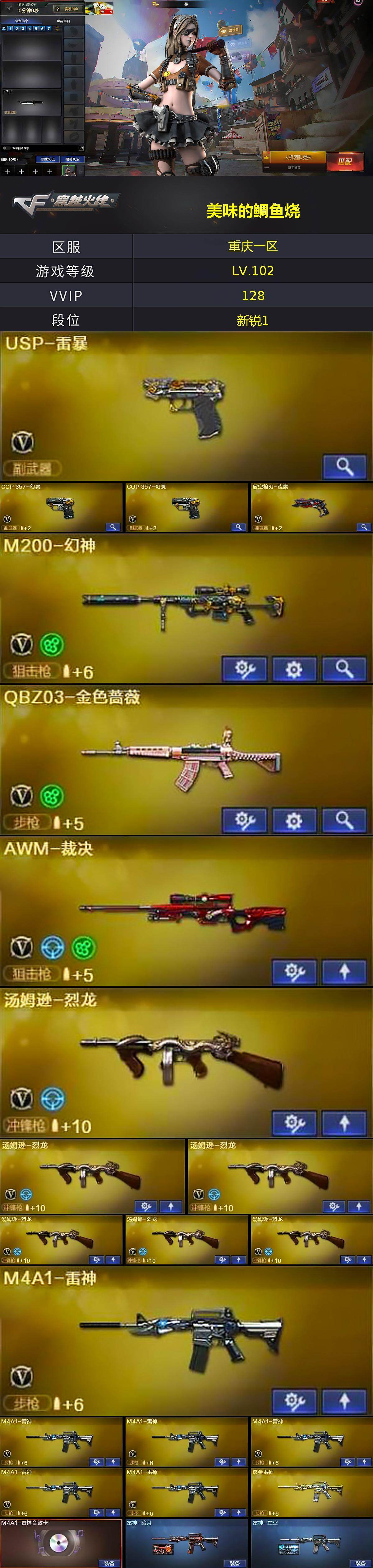 重庆一区-129V-9王者-4炫金【热门武器】:QBZ03-金色蔷薇,M20