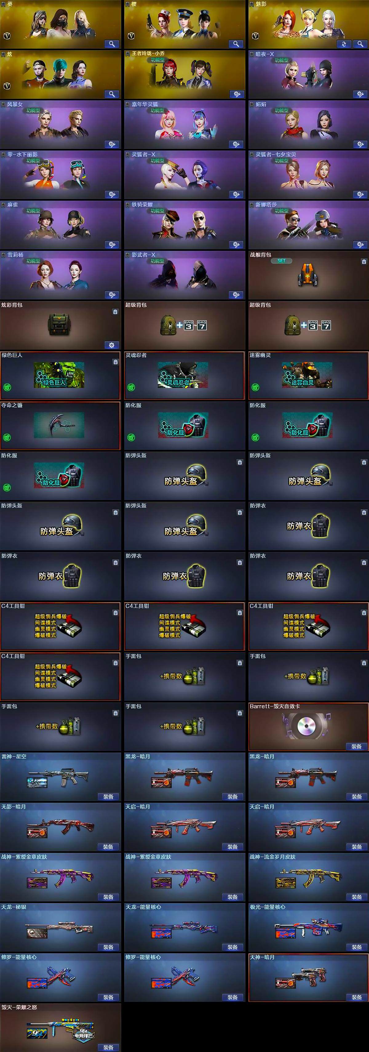 【皮肤】:雷神-星空,毁灭-荣耀之怒,毁灭-英雄计划 皮肤,黑龙-暗月*2,无影-暗月,天启-暗月*2,战神-紫绶金章皮肤*2,战神-流金岁月皮肤,AK47-B-常胜将军-曹操*2,AK47-B-常胜将军-刘备,AK47-B-常胜将军