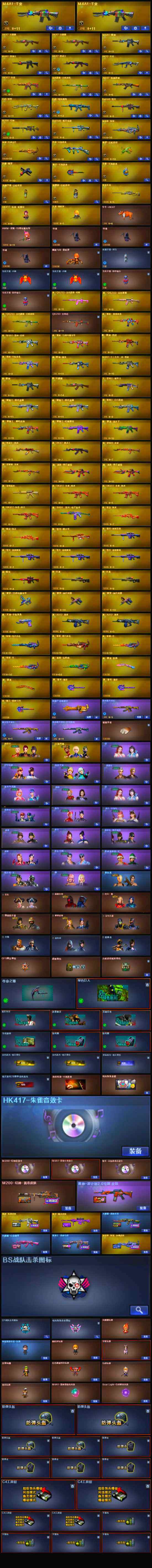 【热门武器】:HK417-朱雀,M200-幻神,金色蔷薇-古蛇迷踪,修罗-古蛇迷踪,白虎-电玩蓝兔,牛牛-AK47,M4A1-黑骑士,加特林-炼狱,羊驼玩偶,沙鹰-修罗