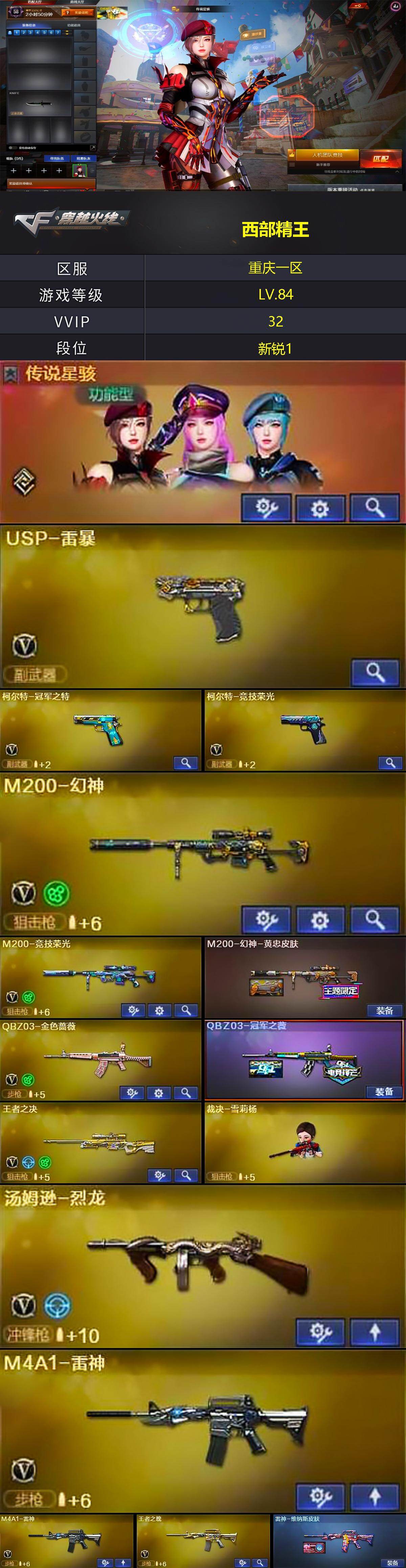 重庆一区-31V-3王者-2炫金【传说角色】:传说星骇【热门武器】:QBZ