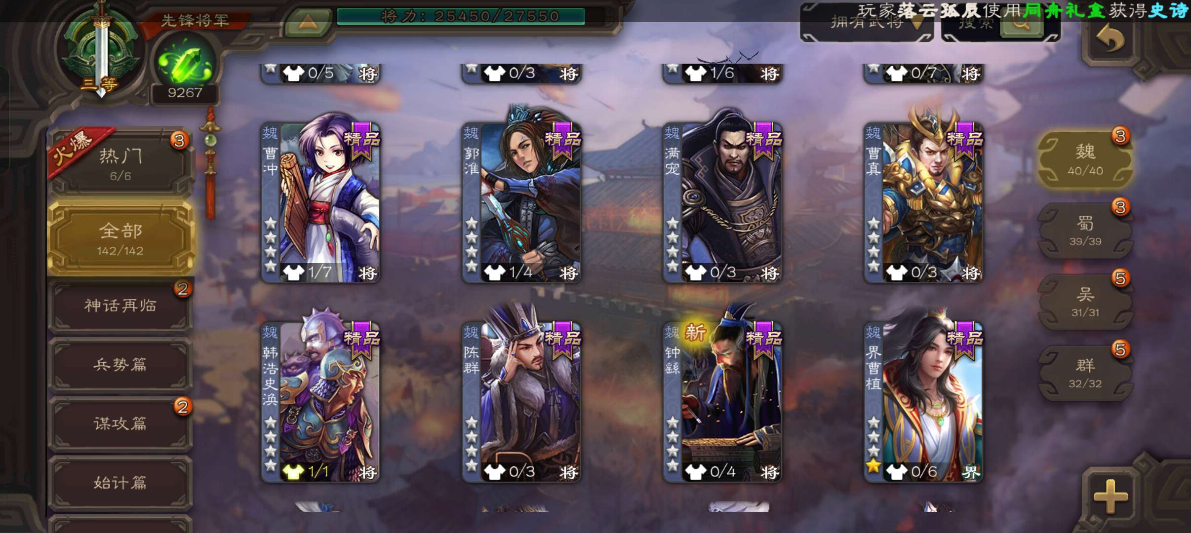 9200魂近8万羽毛,大宝界徐盛带皮沮授双史诗先锋,甘夫人谋卢植谋小乔势陈到动态界小乔142将