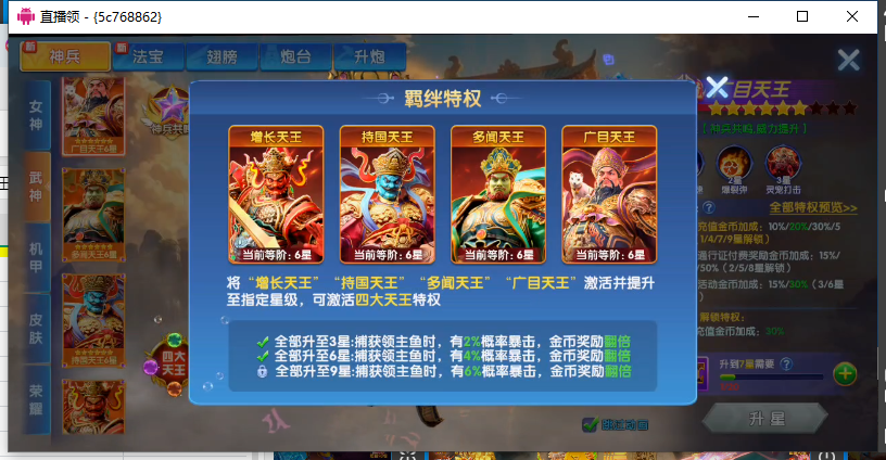 乐乐捕鱼V6 18.9万亿 四大天王6阶|女神联盟6阶|四圣之力3阶
