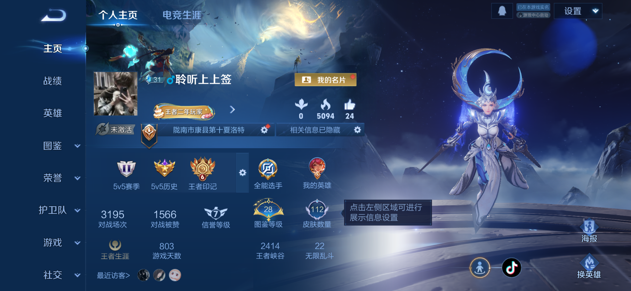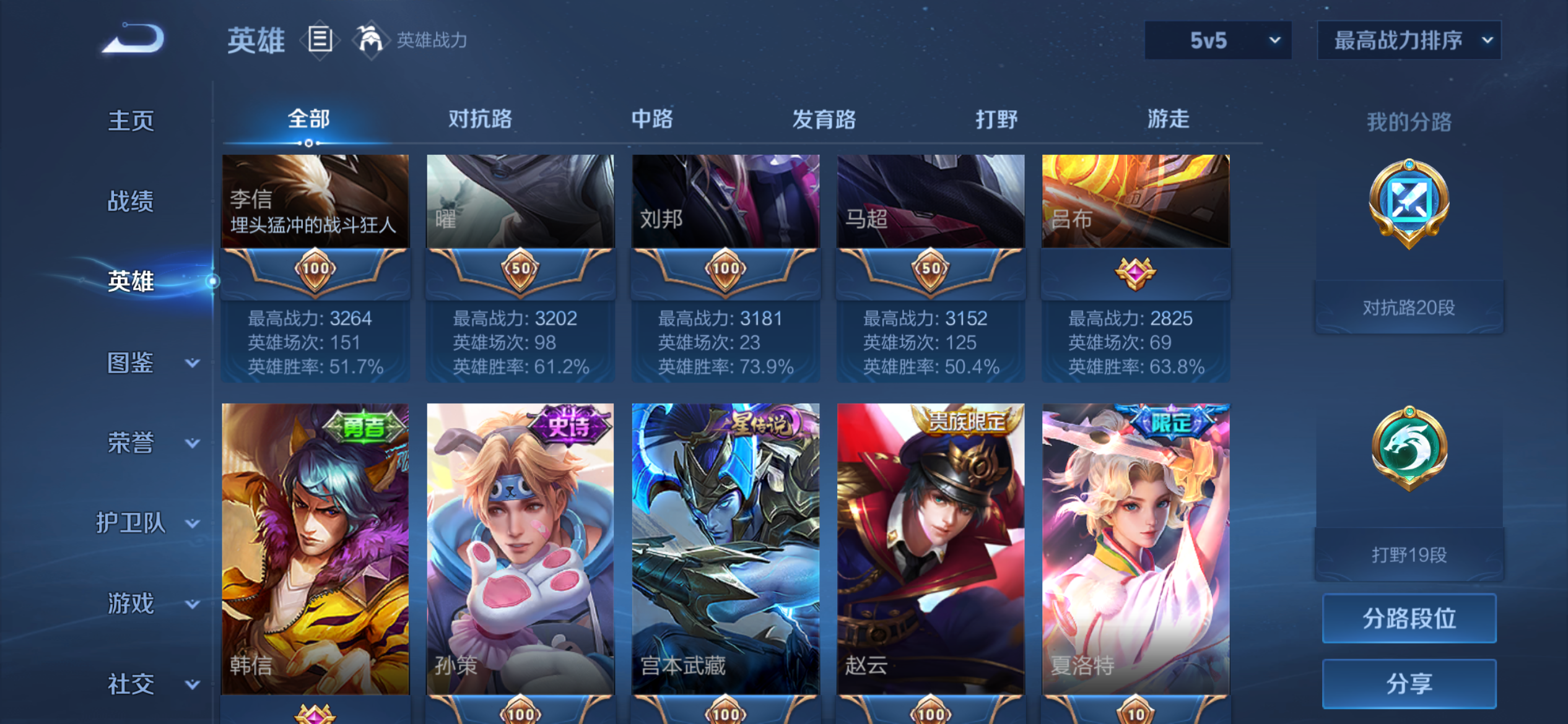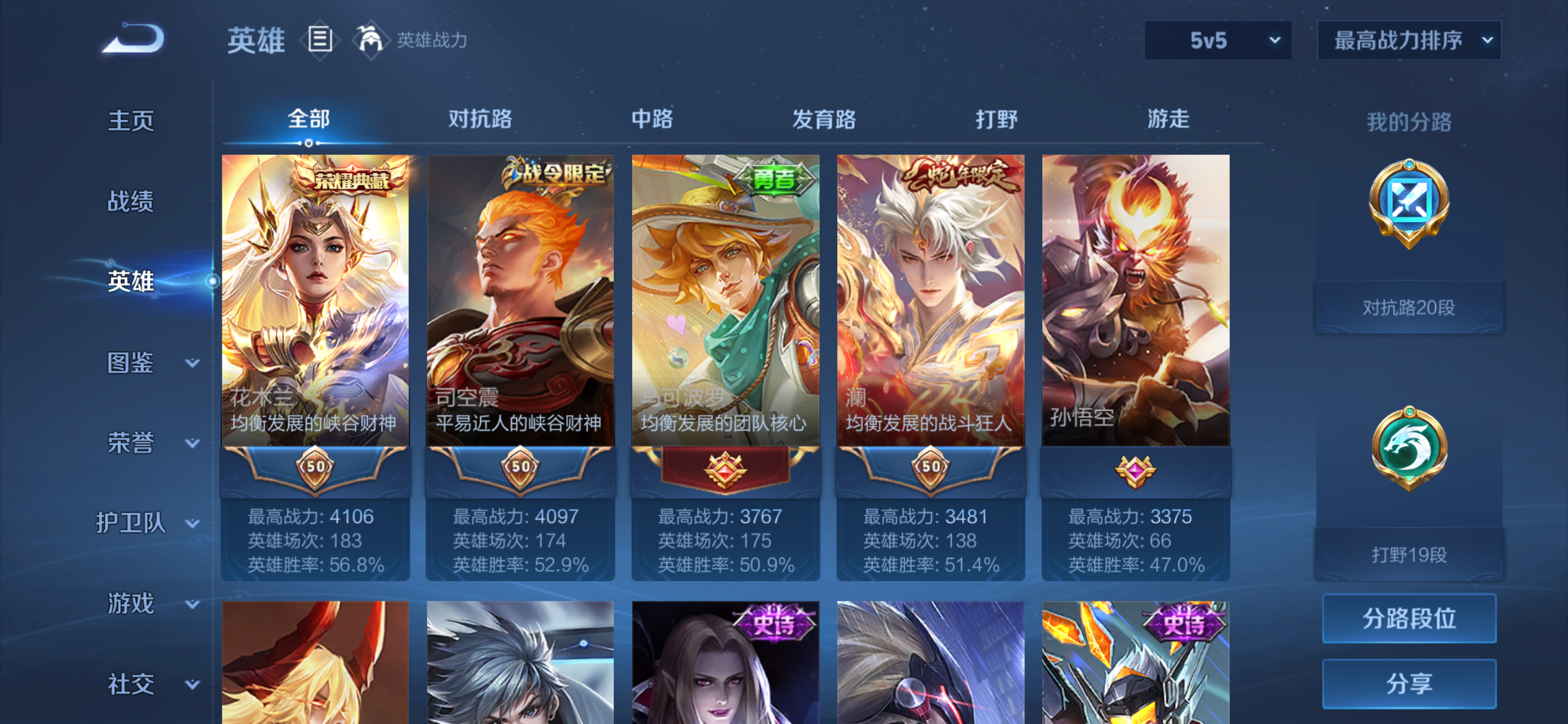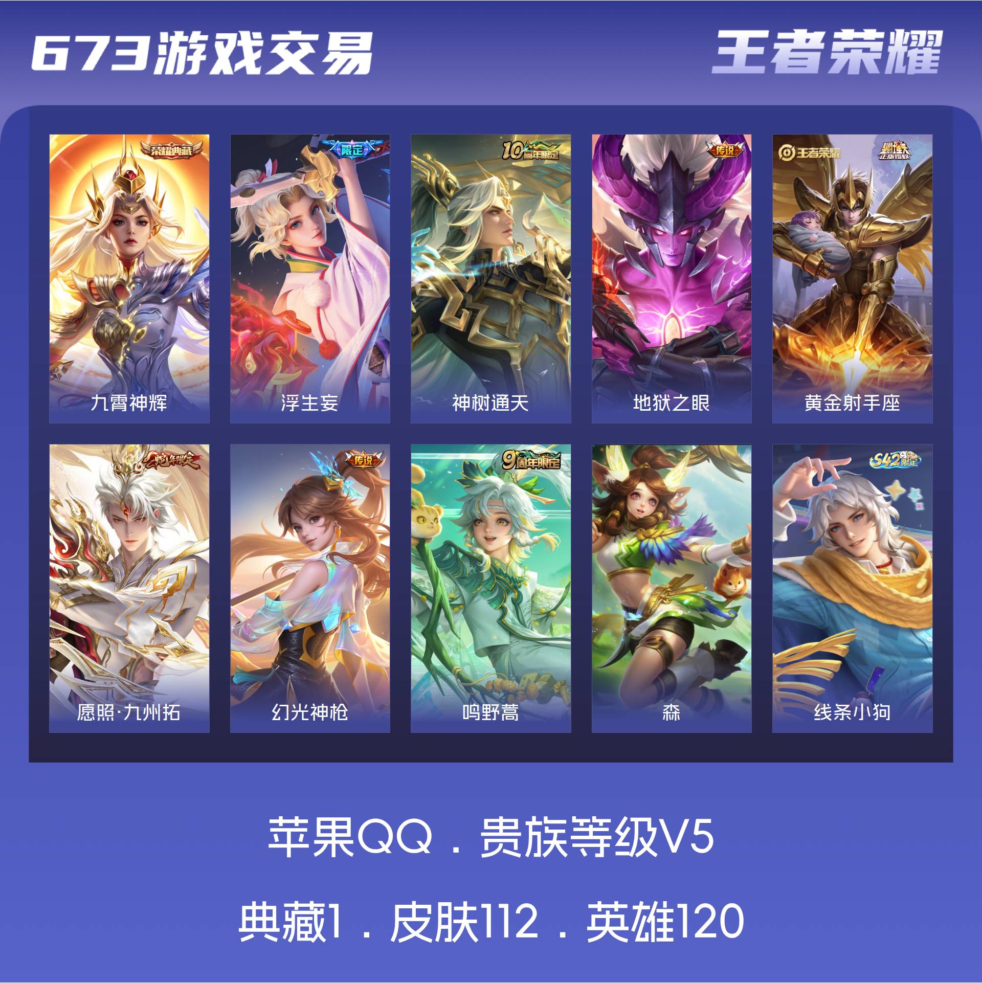 V5 皮肤112 英雄120 永恒钻石 荣耀典藏1 星传说1 传说7 其他皮肤109